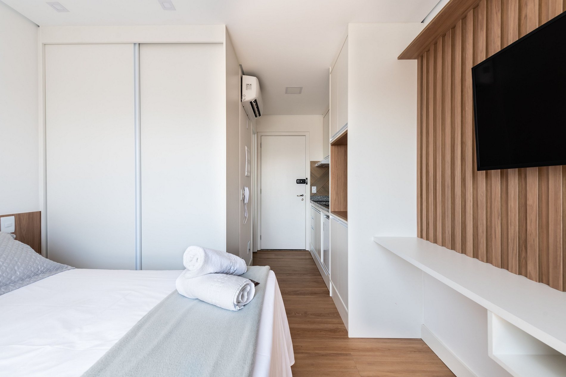 Desfrute de uma boa estadia em nosso studio, ideal para acomodar até 3 pessoas. Equipado com o básico necessário, incluindo uma cama de casal, um colchão de solteiro, cozinha funcional e banheiro moderno. Perfeito para quem busca praticidade e conforto em um ambiente acolhedor.