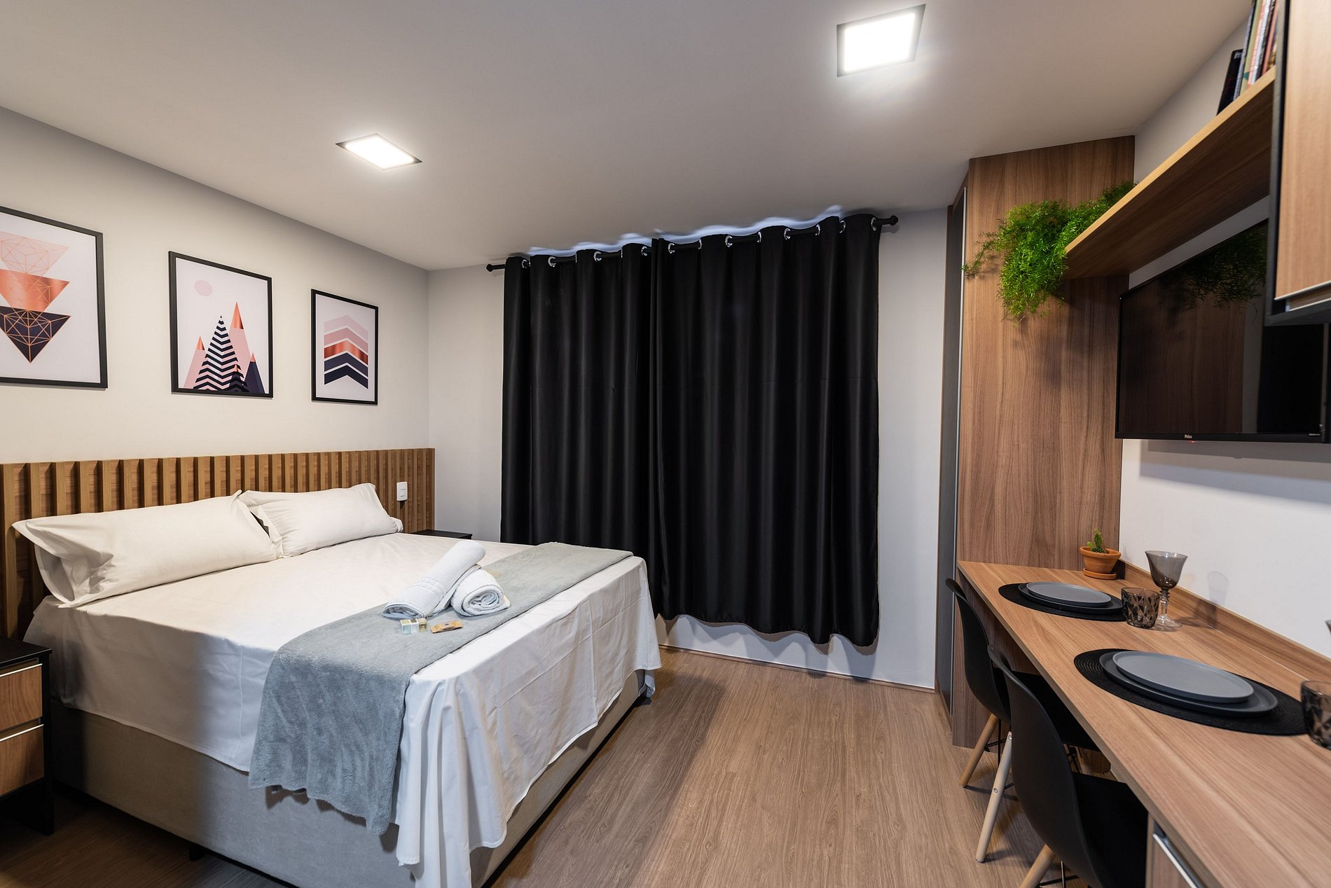 Este studio completo, com o básico para uma boa estadia, é ideal para quem busca conforto e praticidade. Oferece um espaço aconchegante com cama, cozinha funcional e banheiro moderno, proporcionando todas as comodidades essenciais para você se sentir em casa. Perfeito para uma experiência agradável e conveniente.