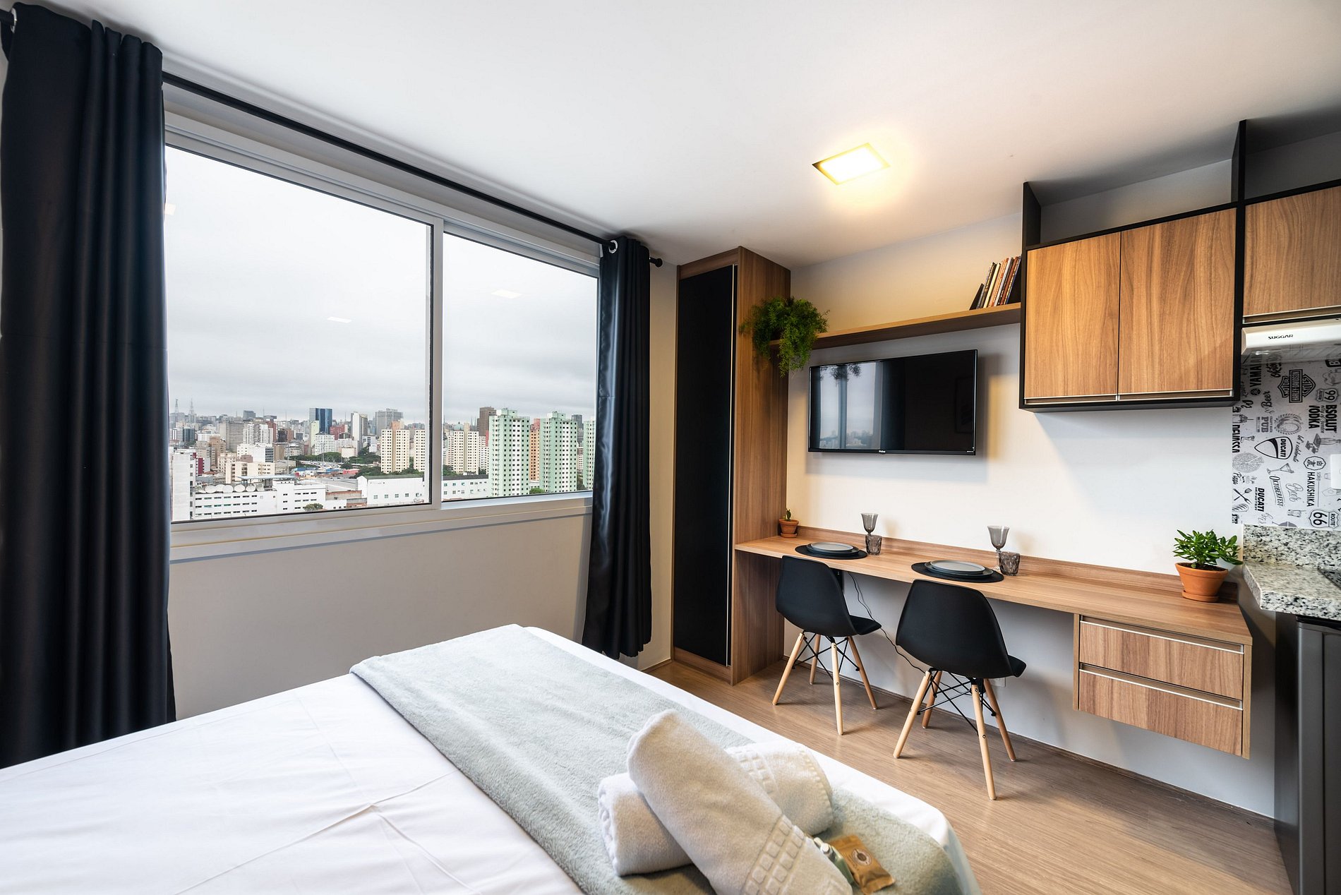 Este studio completo, com o básico para uma boa estadia, é ideal para quem busca conforto e praticidade. Oferece um espaço aconchegante com cama, cozinha funcional e banheiro moderno, proporcionando todas as comodidades essenciais para você se sentir em casa. Perfeito para uma experiência agradável e conveniente.