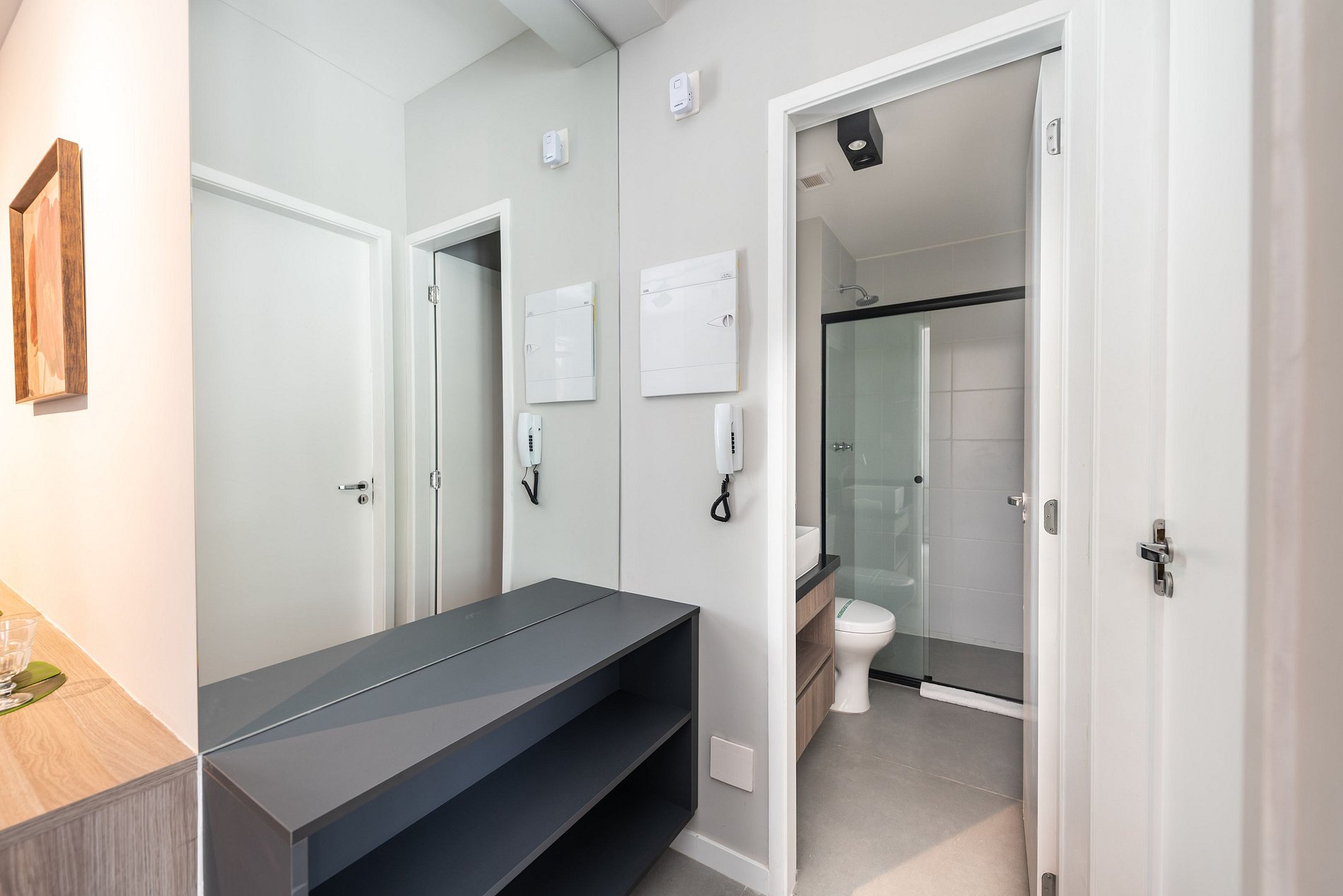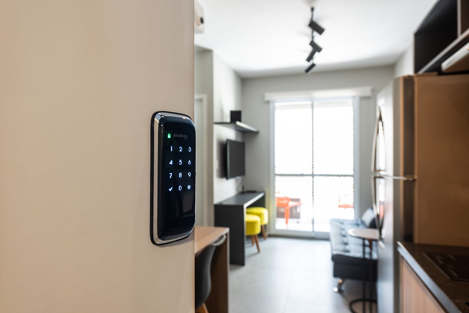 A entrada é realizada através de uma fechadura eletrônica, garantindo acesso total tanto ao apartamento quanto às comodidades do prédio.