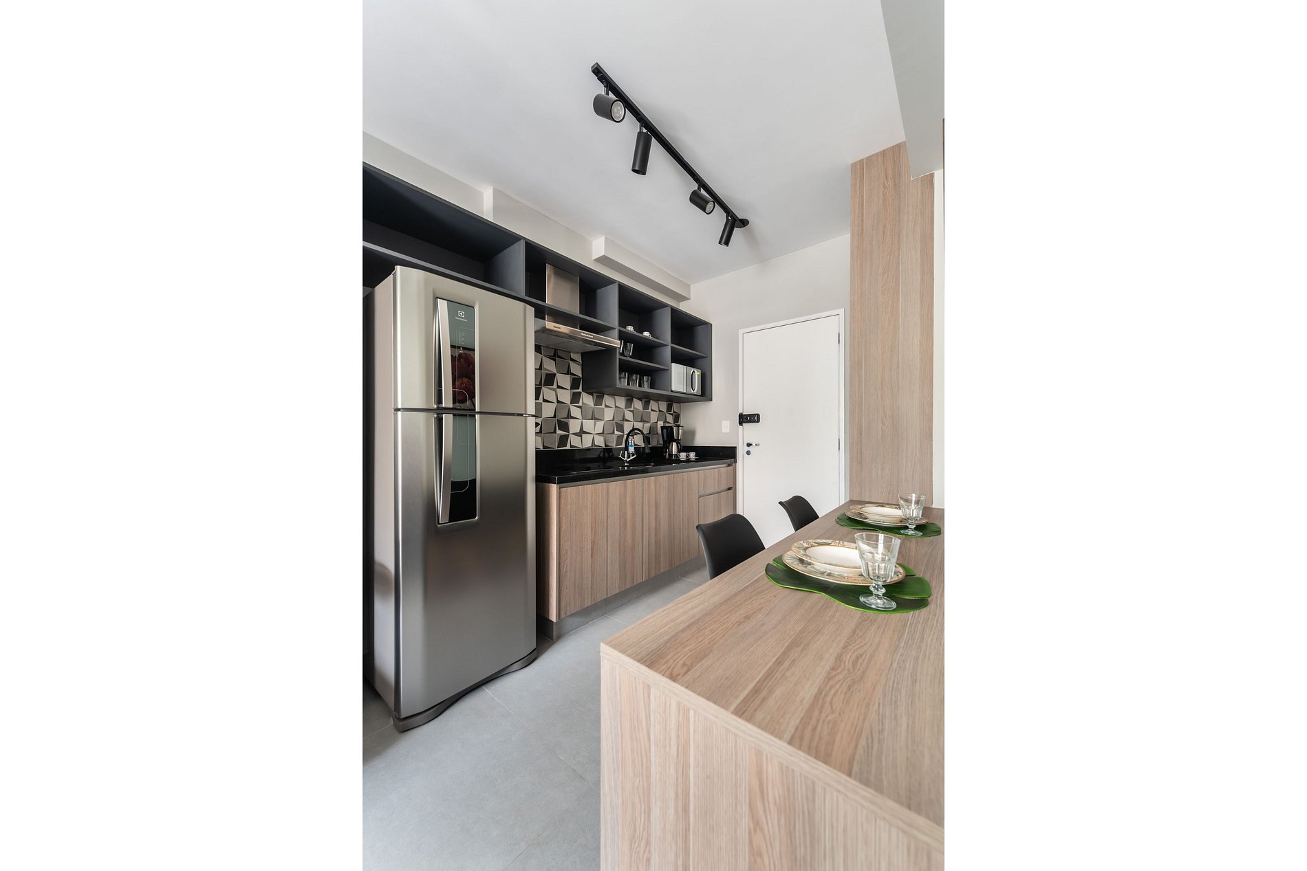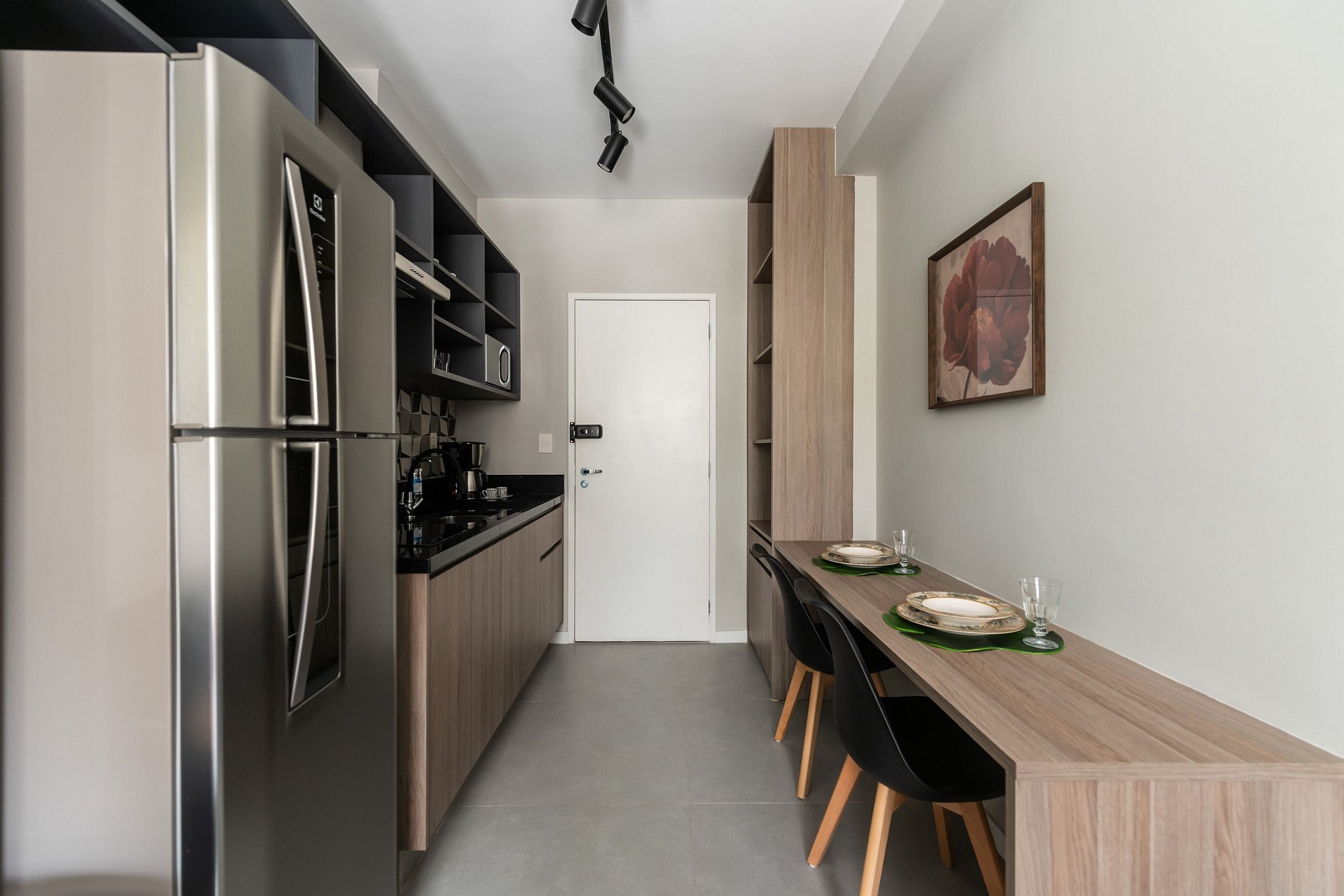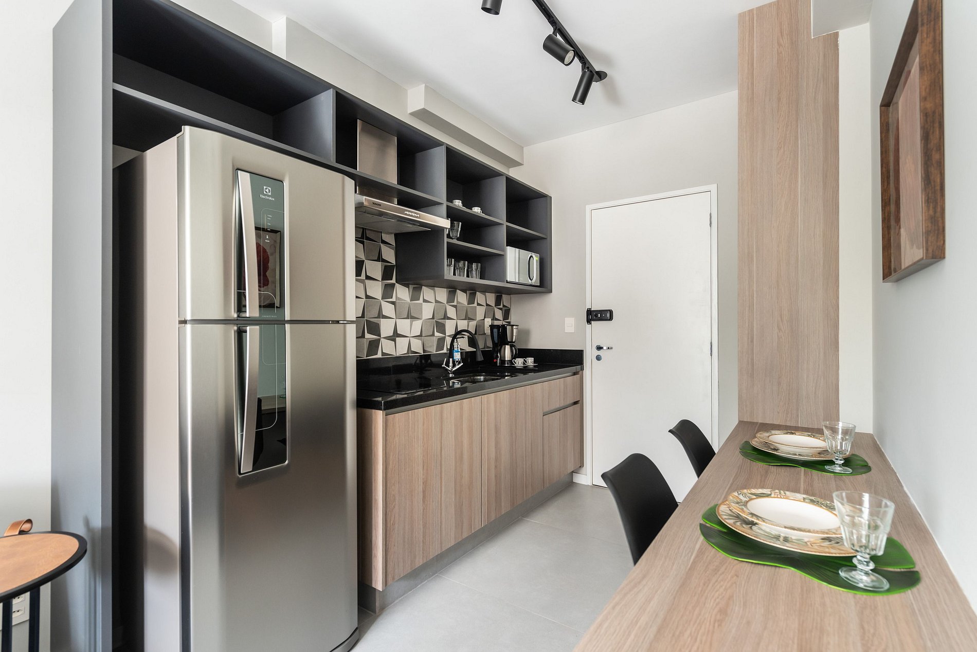 ・Cozinha completa: equipada com geladeira, fogão, micro-ondas etc.
