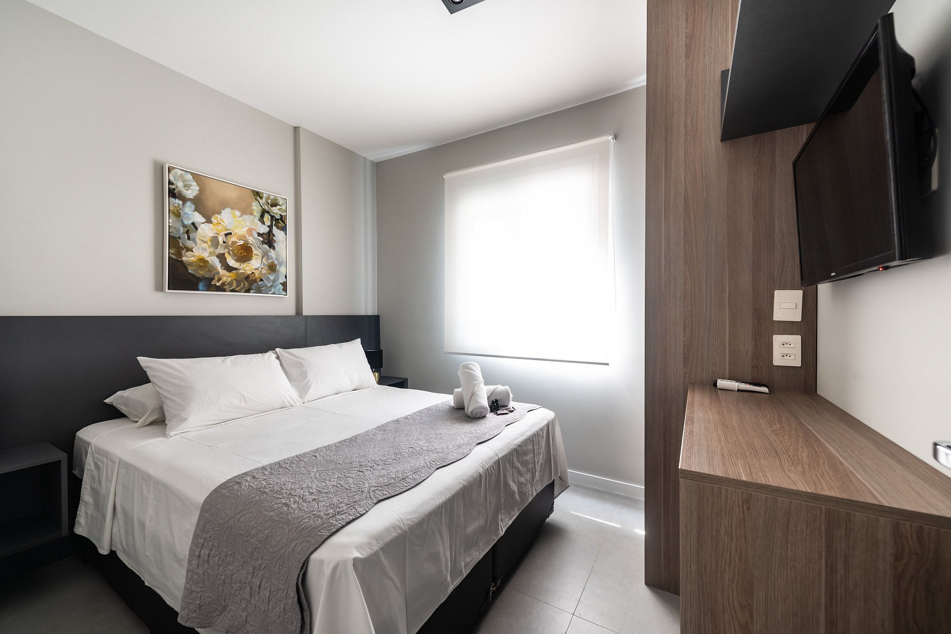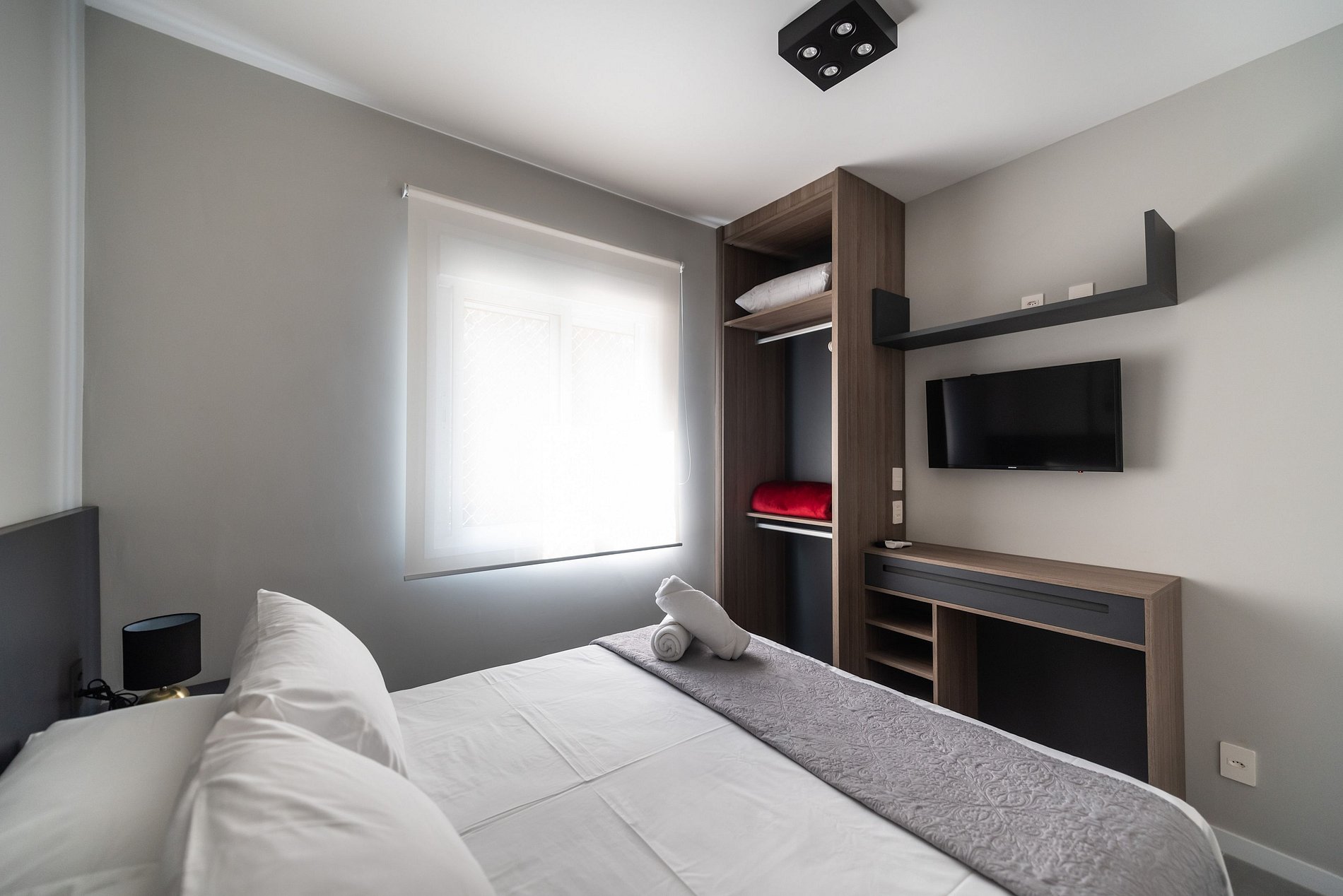 Desfrute de uma estadia confortável em nosso studio projetado para até três pessoas. Equipado com tudo o que você precisa para uma experiência agradável, incluindo camas confortáveis, cozinha funcional, área de estar aconchegante e um banheiro moderno. Ideal para famílias pequenas ou grupos de amigos que buscam praticidade e conforto durante sua estadia.
