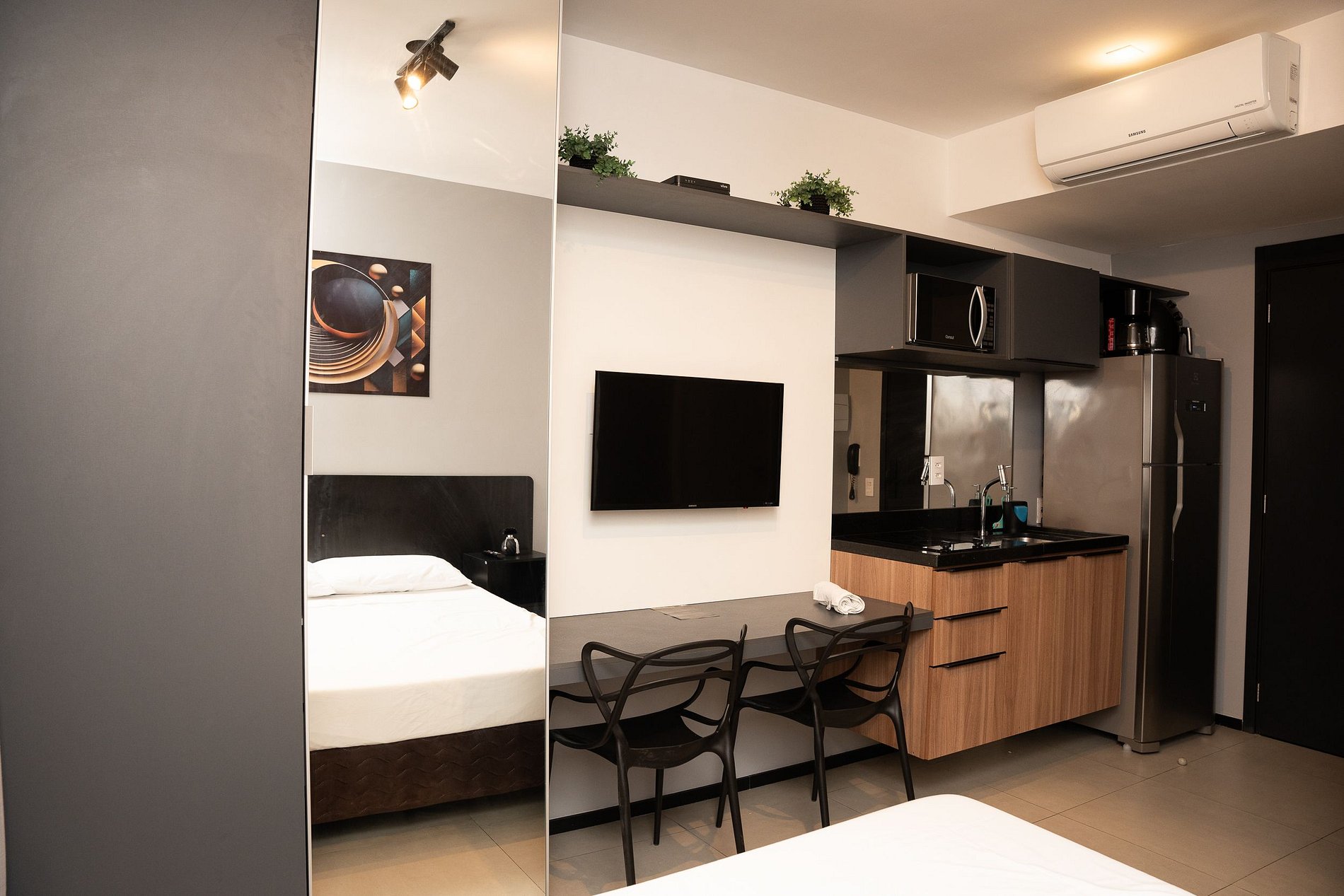 Descubra nosso estúdio aconchegante que acomoda até 3 pessoas. Com um design inteligente e funcional, este espaço único oferece conforto sem abrir mão da praticidade. Ideal para casais ou pequenos grupos que buscam uma estadia confortável e descomplicada. Localizado em uma região conveniente, próximo a diversas opções de restaurantes e lojas.