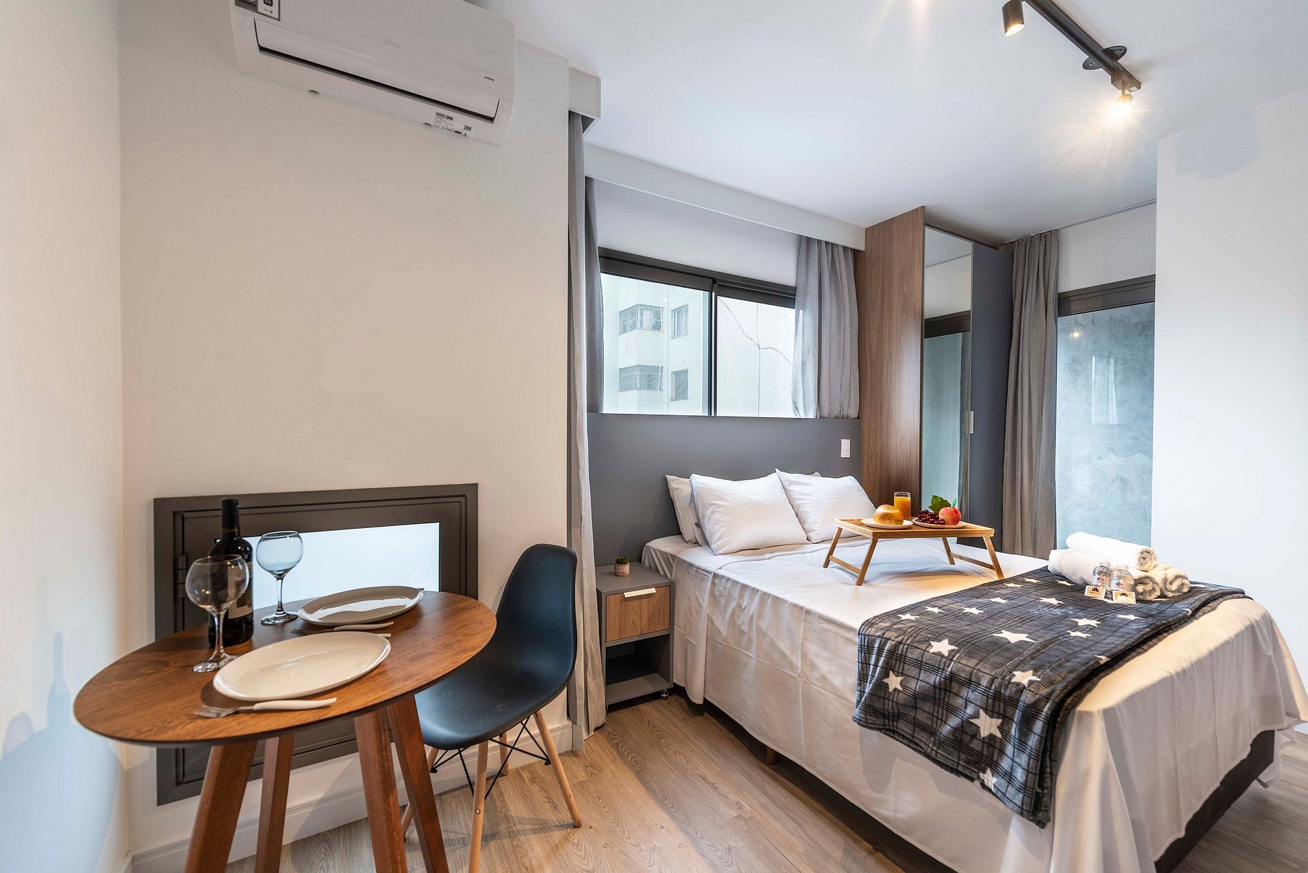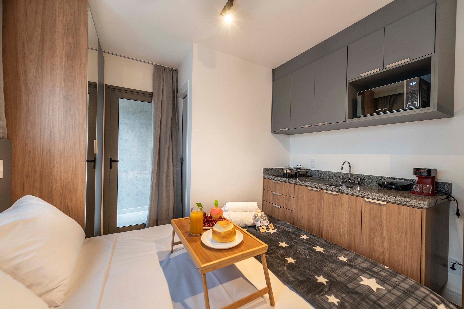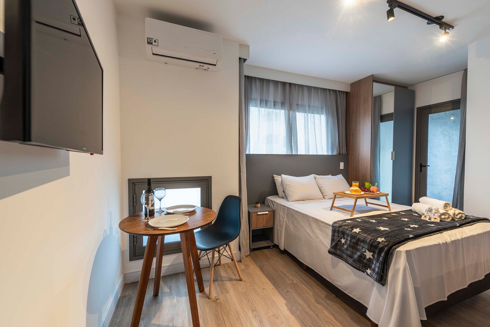 Este estúdio é um verdadeiro lar doce lar para duas pessoas. Com uma cama de casal confortável, uma cozinha prática equipada com tudo o que você precisa, e um banheiro privativo com chuveiro quente, é o lugar perfeito para relaxar e se sentir em casa. Simples e acolhedor, garante uma estadia tranquila e especial.