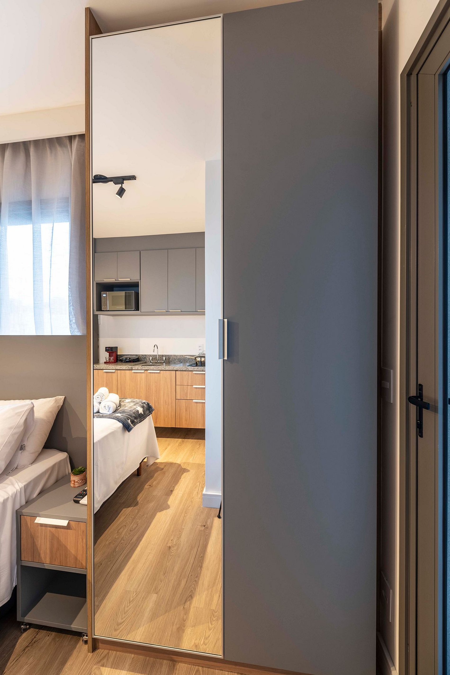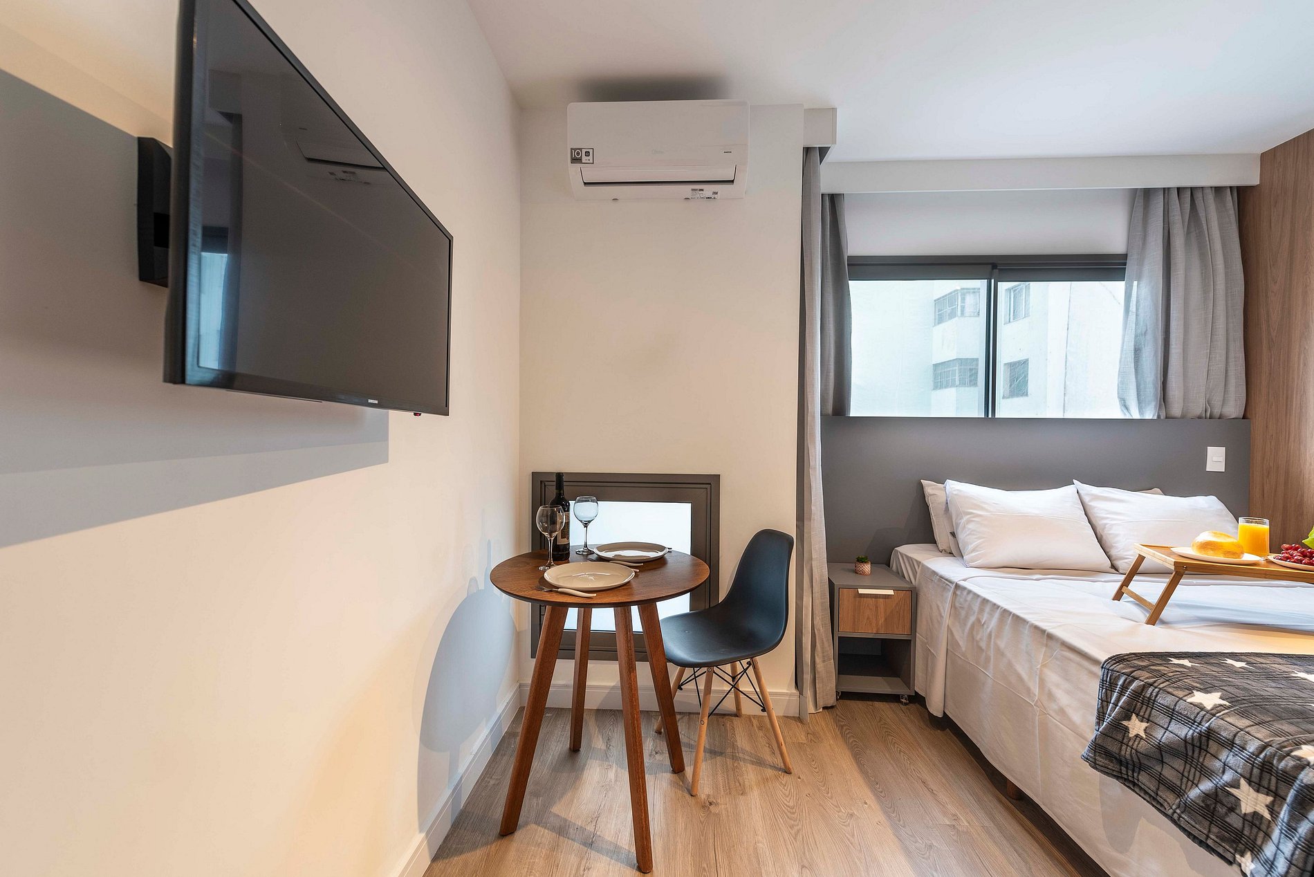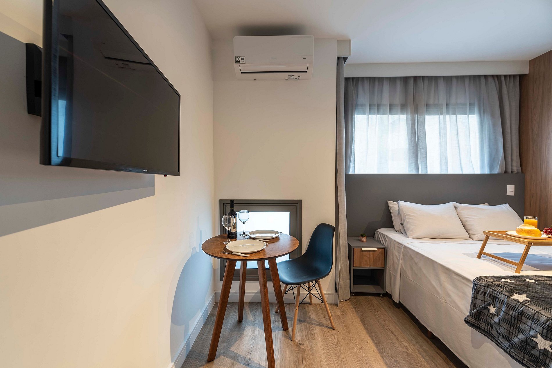 Este estúdio é um verdadeiro lar doce lar para duas pessoas. Com uma cama de casal confortável, uma cozinha prática equipada com tudo o que você precisa, e um banheiro privativo com chuveiro quente, é o lugar perfeito para relaxar e se sentir em casa. Simples e acolhedor, garante uma estadia tranquila e especial.