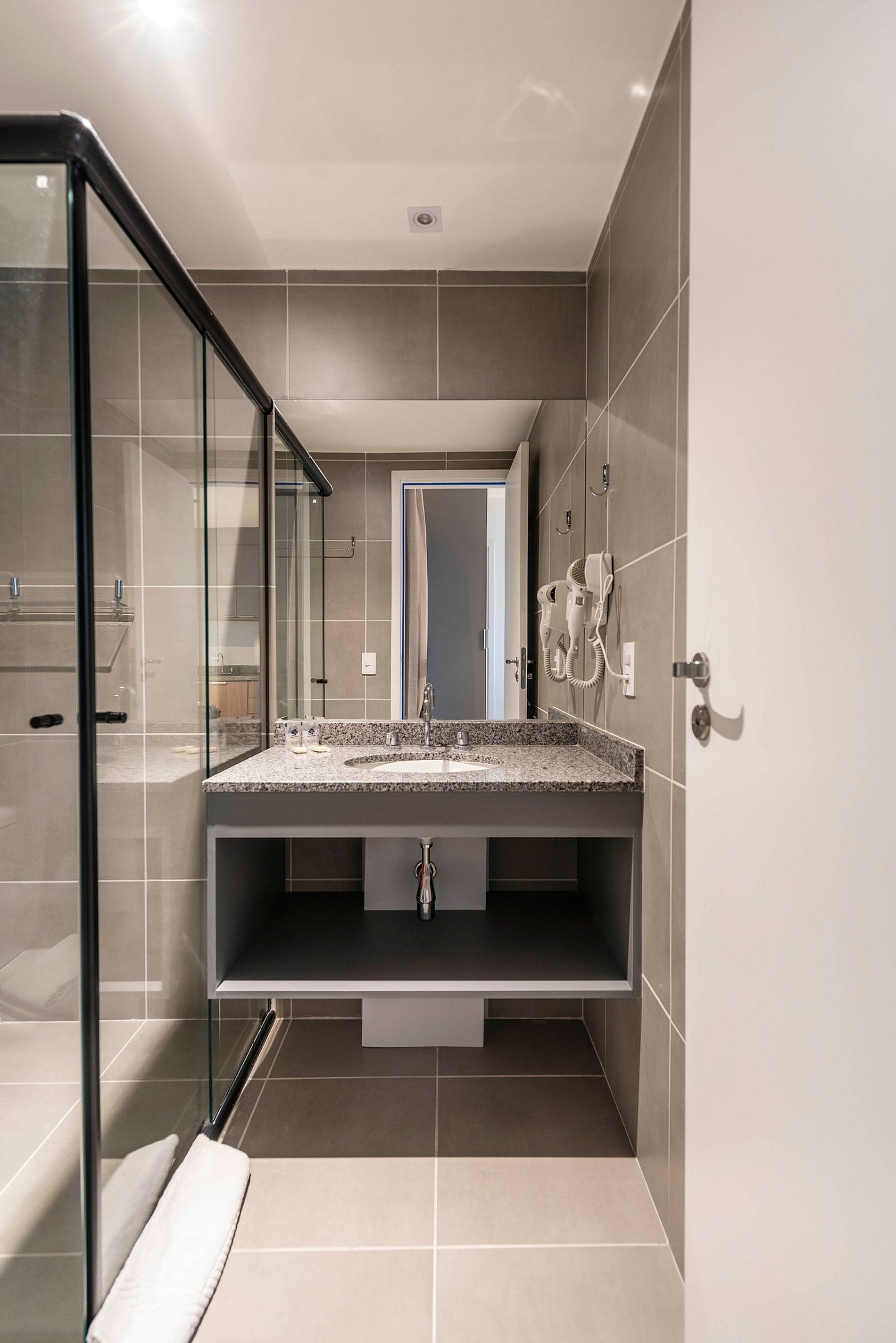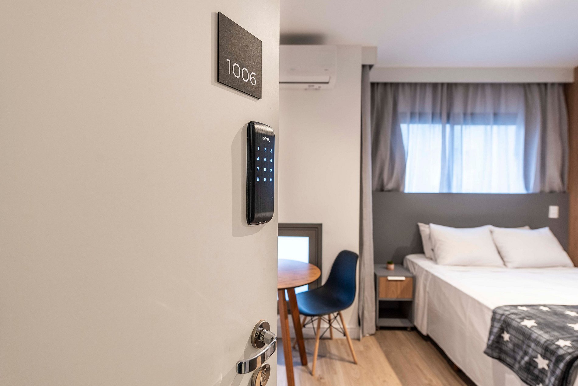 A entrada é realizada através de uma fechadura eletrônica, garantindo acesso total tanto ao apartamento quanto às comodidades do prédio.