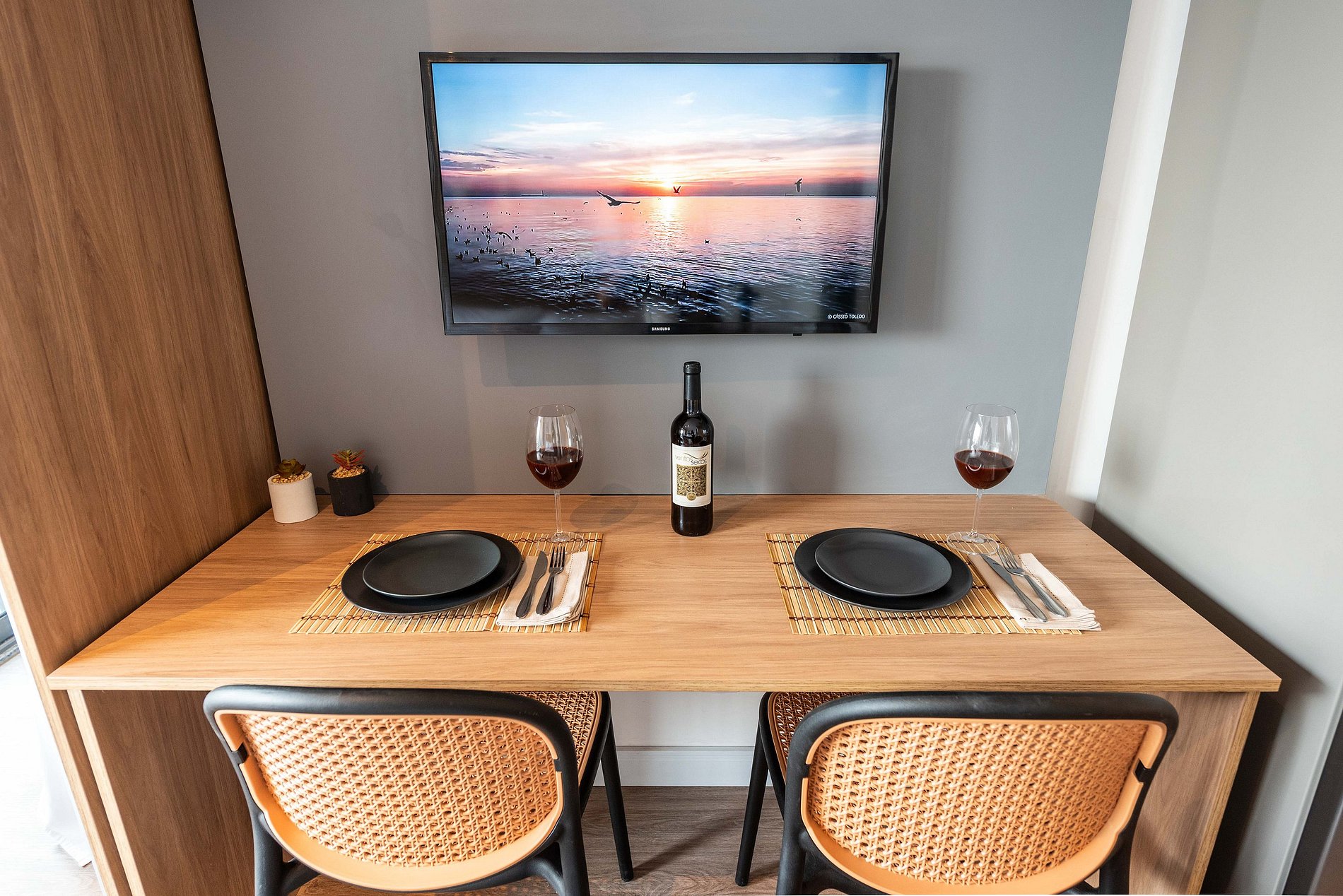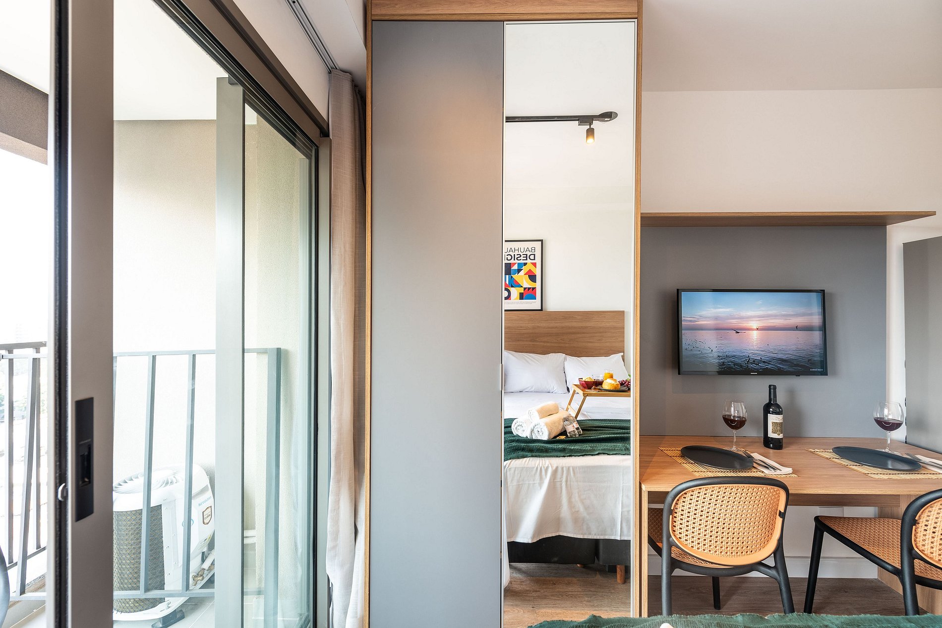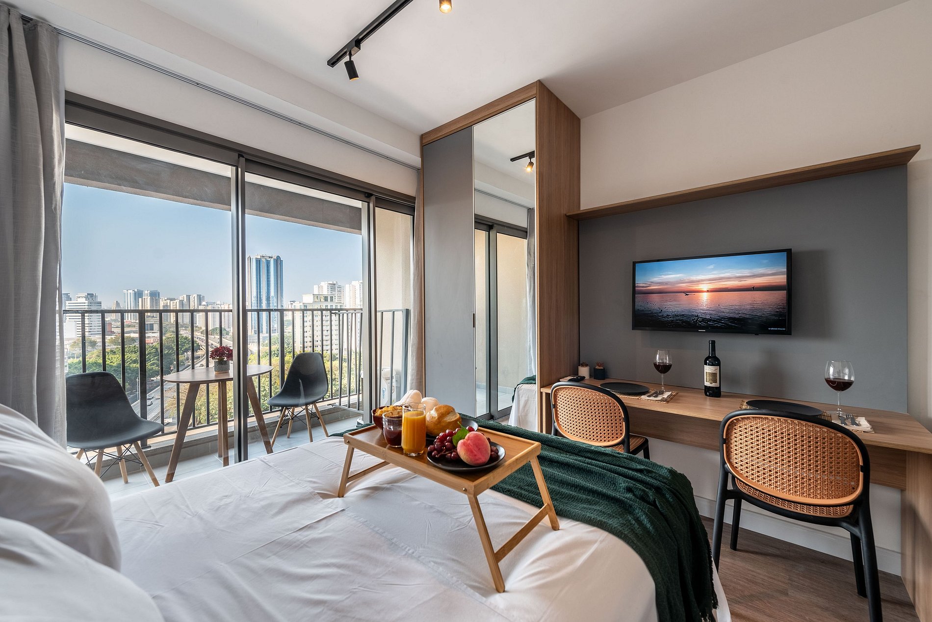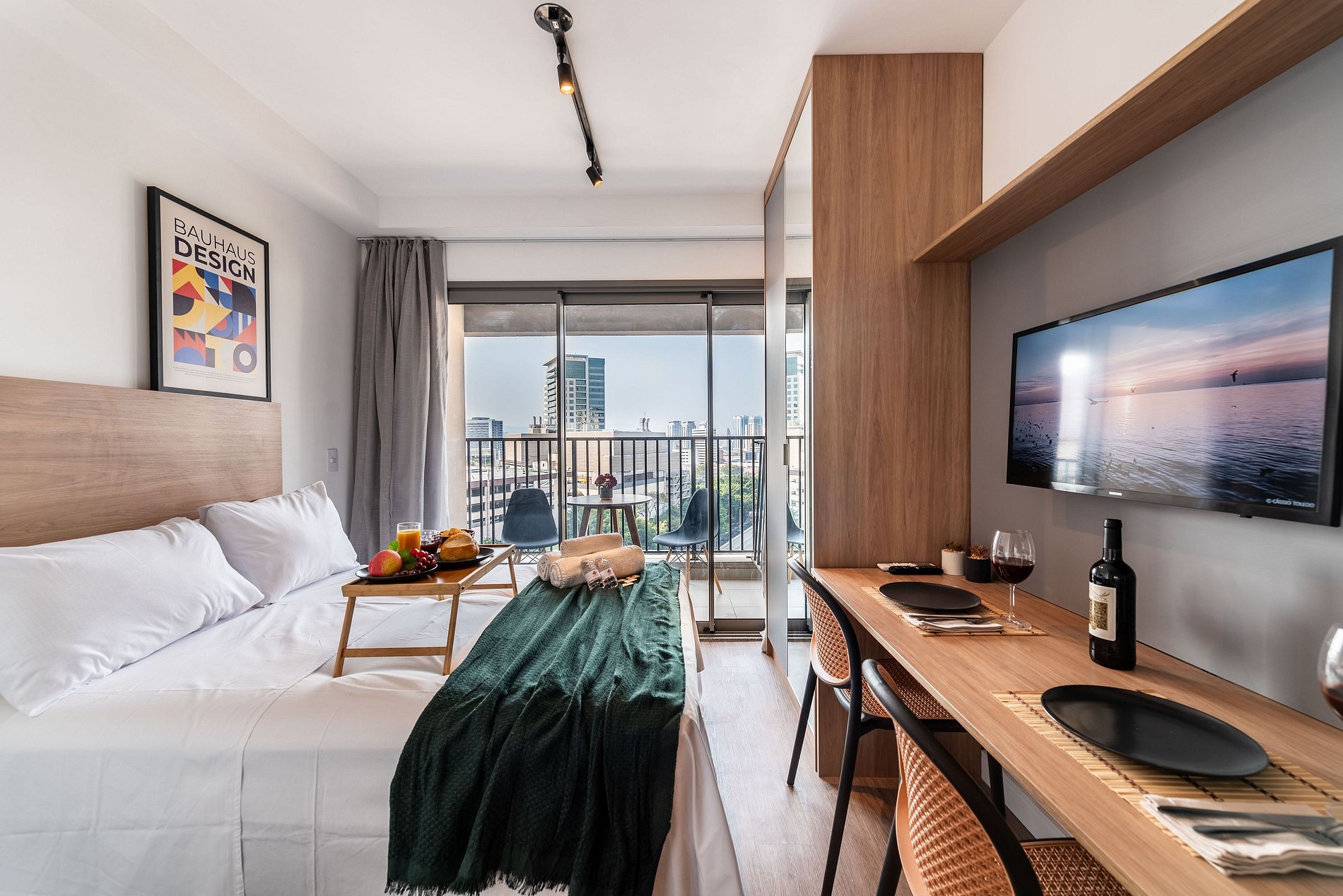 Desfrute de uma estadia confortável em um studio moderno, aconchegante e pensado para duas pessoas. O espaço é compacto e bem planejado, oferecendo cama confortável, sofá acolhedor, cozinha equipada com itens essenciais e banheiro funcional. Um ambiente organizado e convidativo, ideal para quem busca praticidade, conforto e uma experiência agradável durante a estadia.