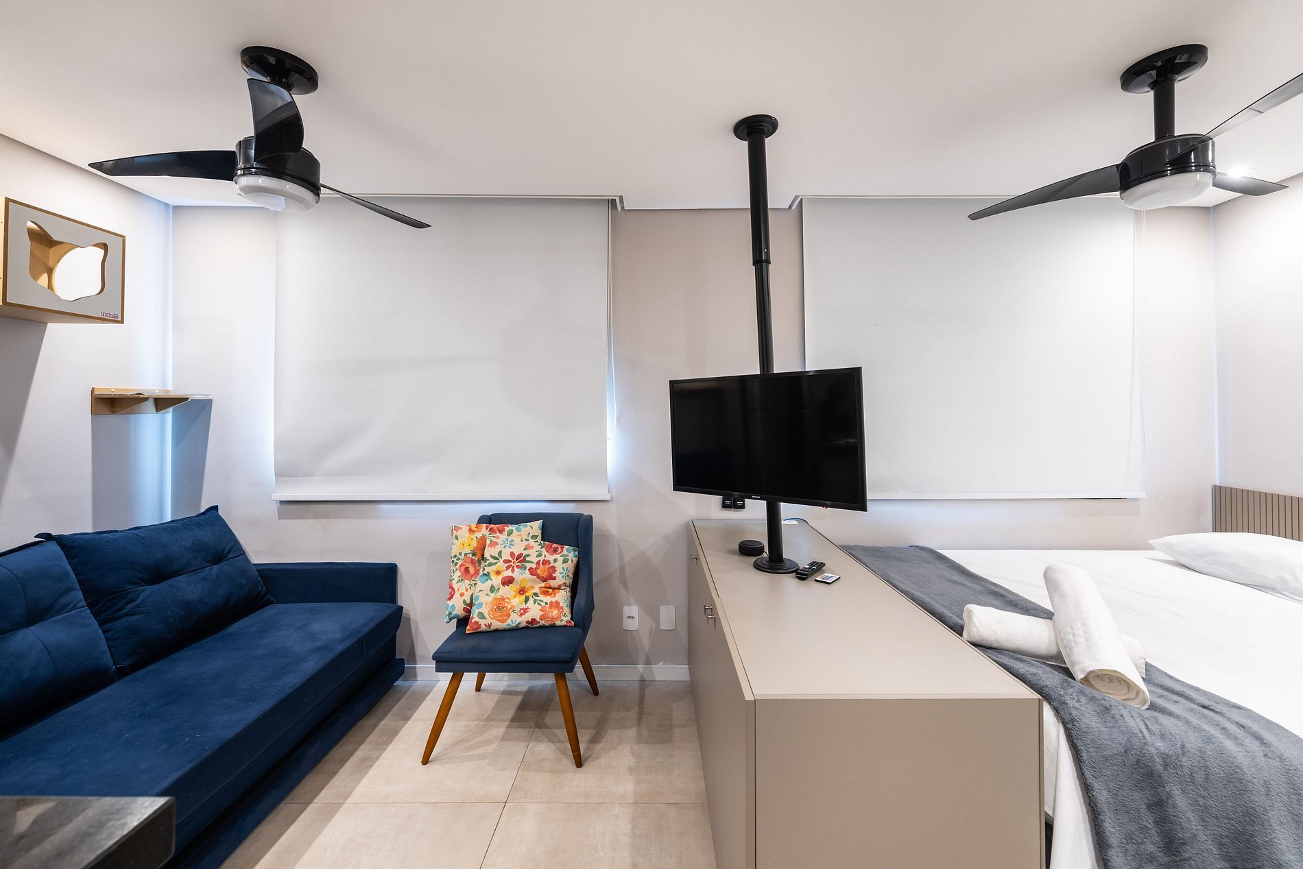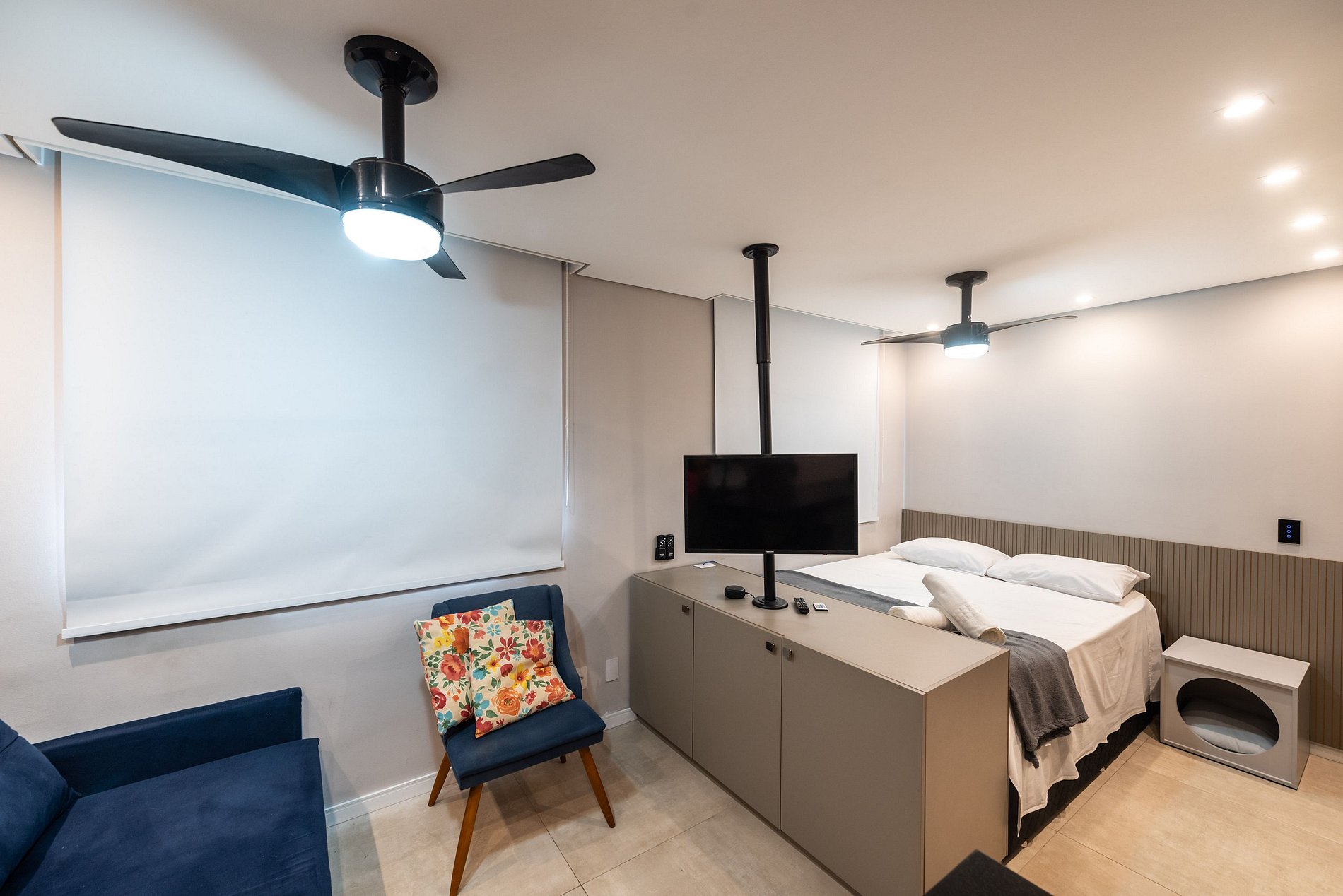 Nosso estúdio é como uma casa longe de casa: simples, acolhedor e confortável. O espaço integrado conta com uma cozinha funcional, uma sala de estar com sofá-cama para hóspedes extras e uma área de dormir com cama de casal. Perfeito para até quatro pessoas, é o refúgio ideal para quem busca tranquilidade no coração da cidade.
