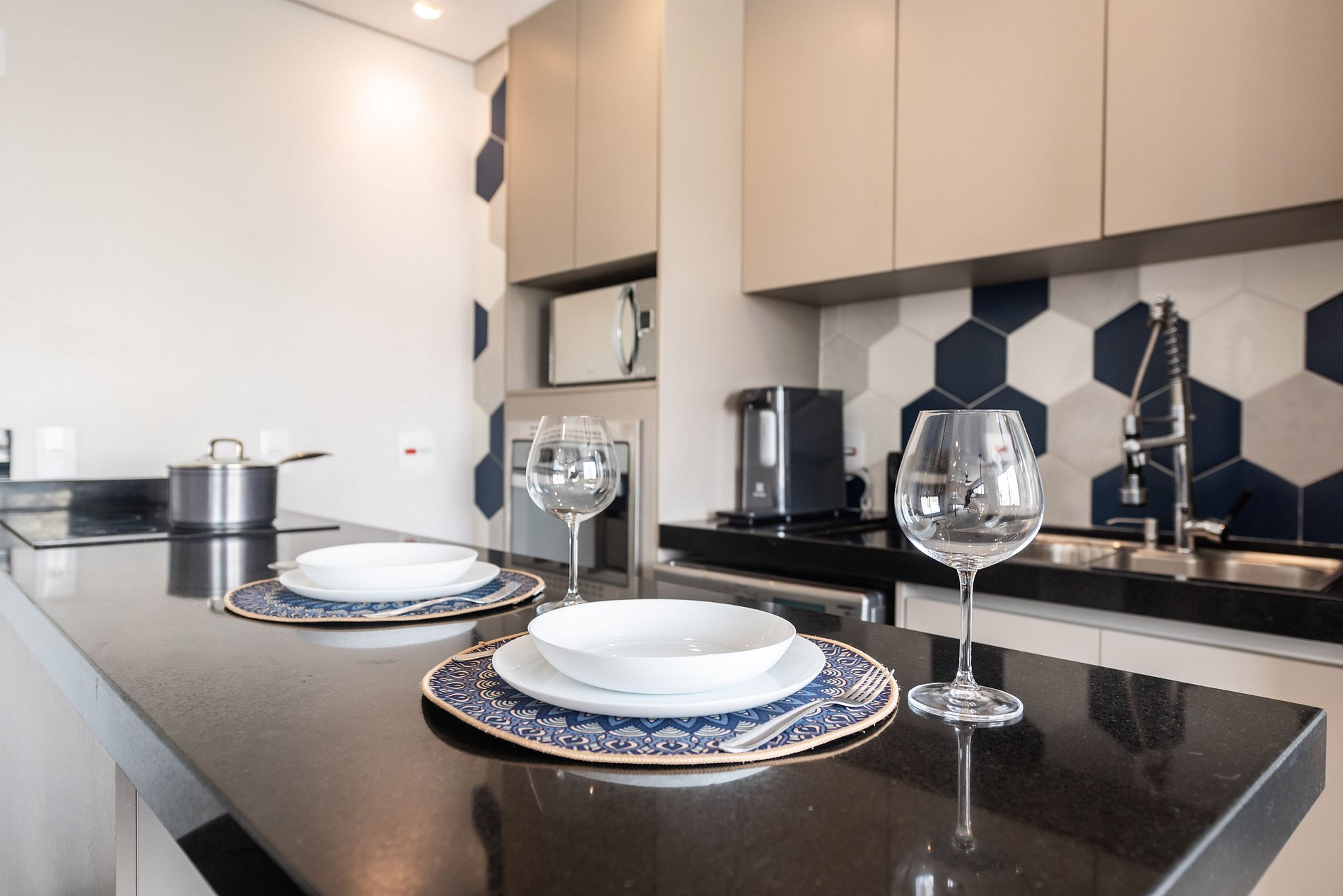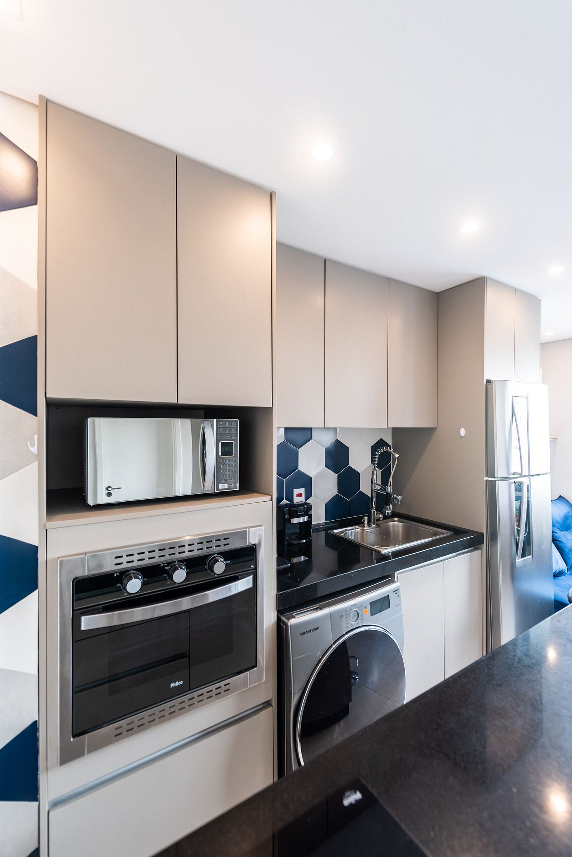 ・Cozinha completa: equipada com geladeira, fogão de indução, micro-ondas etc.
