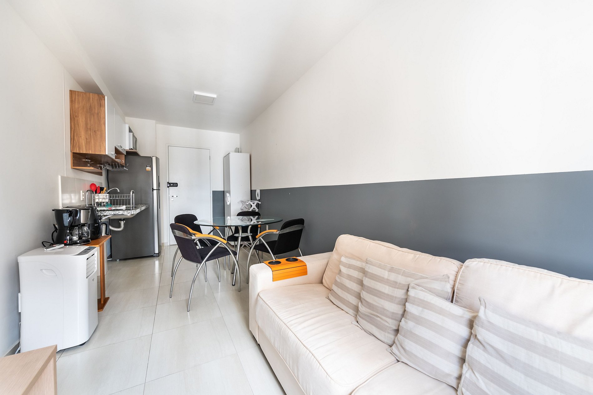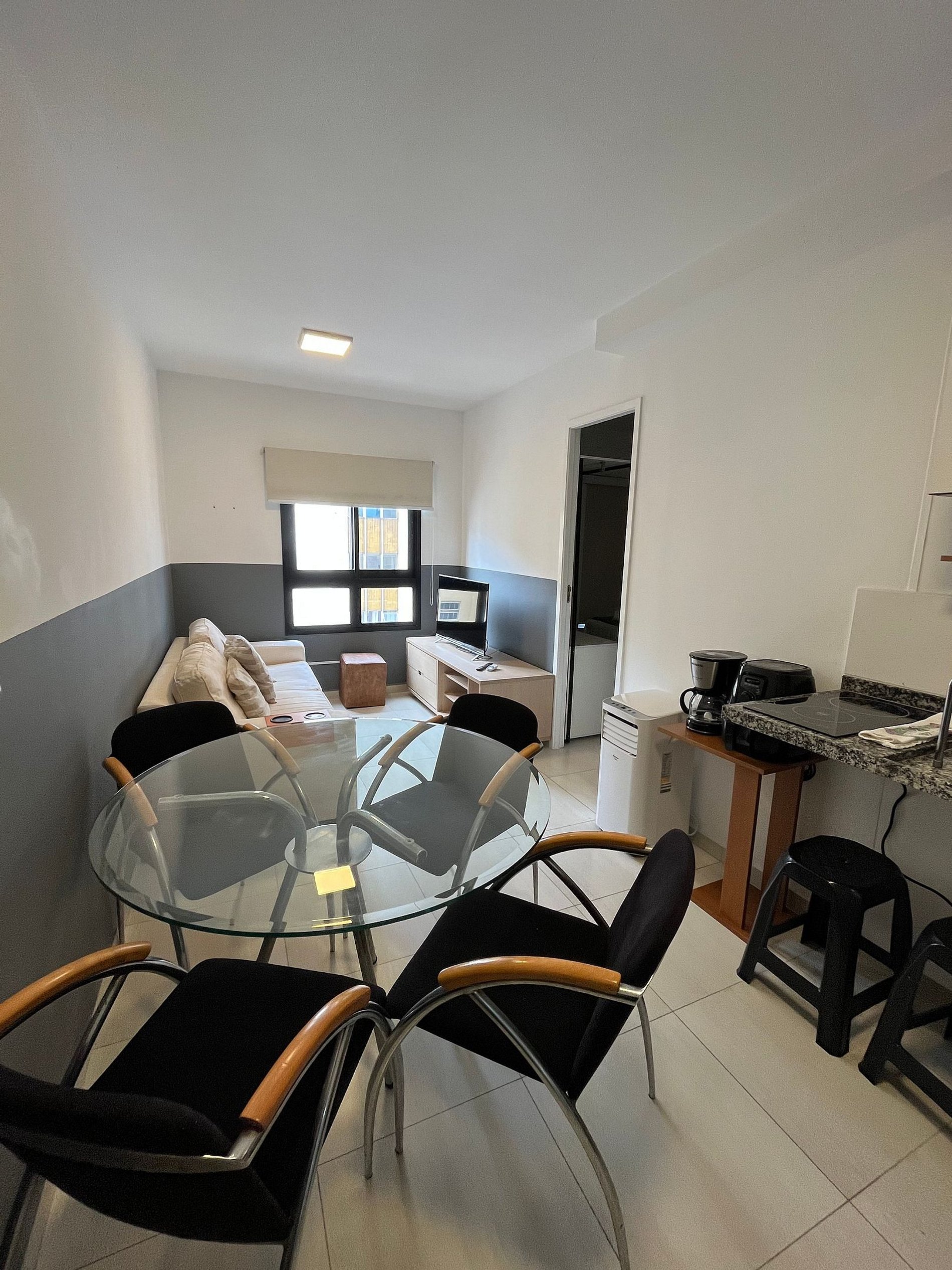 Espaço compacto, confortável e bem planejado, ideal para até 2 hóspedes. Conta com cama confortável, cozinha equipada com itens essenciais, banheiro funcional e um ambiente organizado que proporciona praticidade e tranquilidade durante toda a estadia. Perfeito para quem busca conforto e uma experiência acolhedora