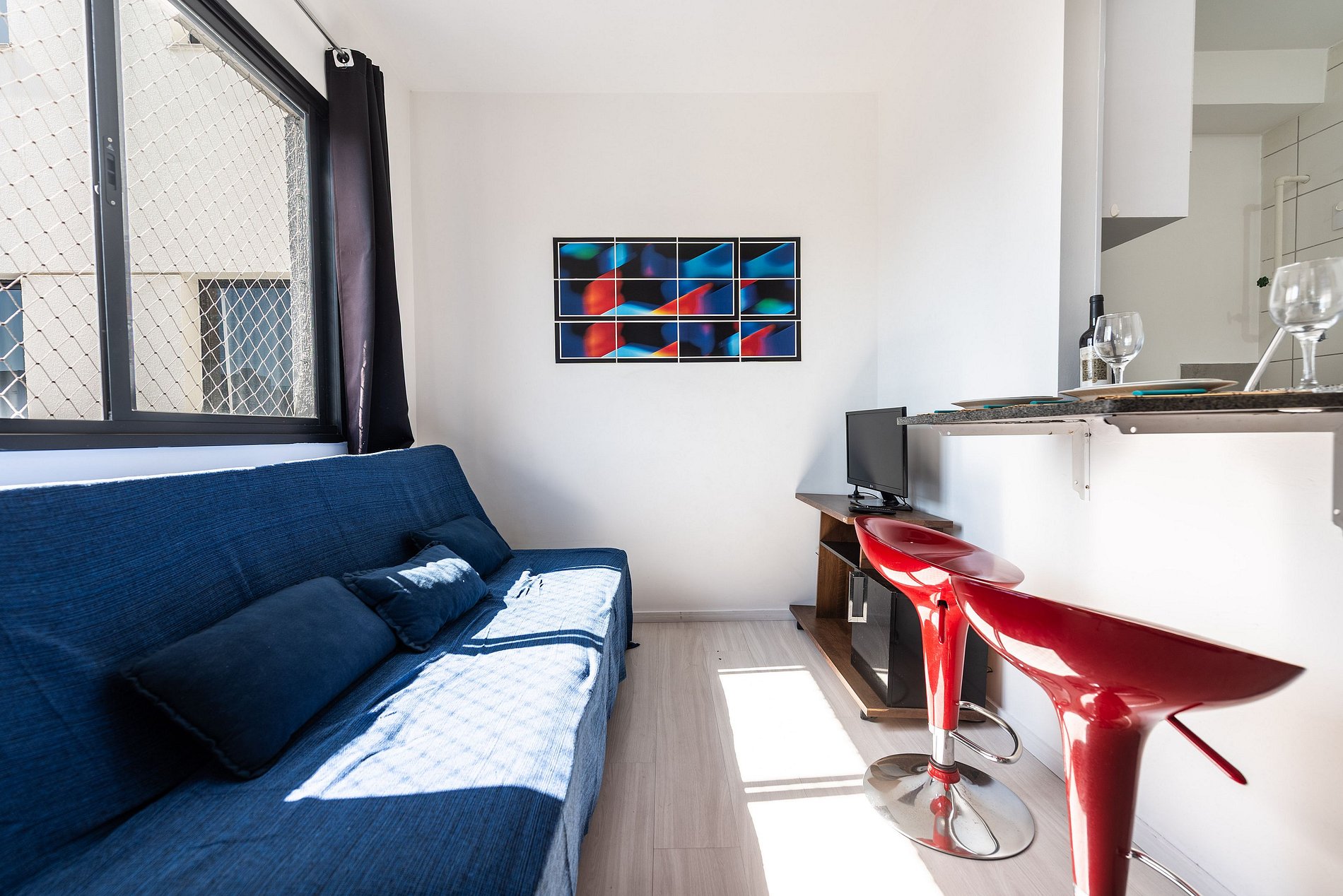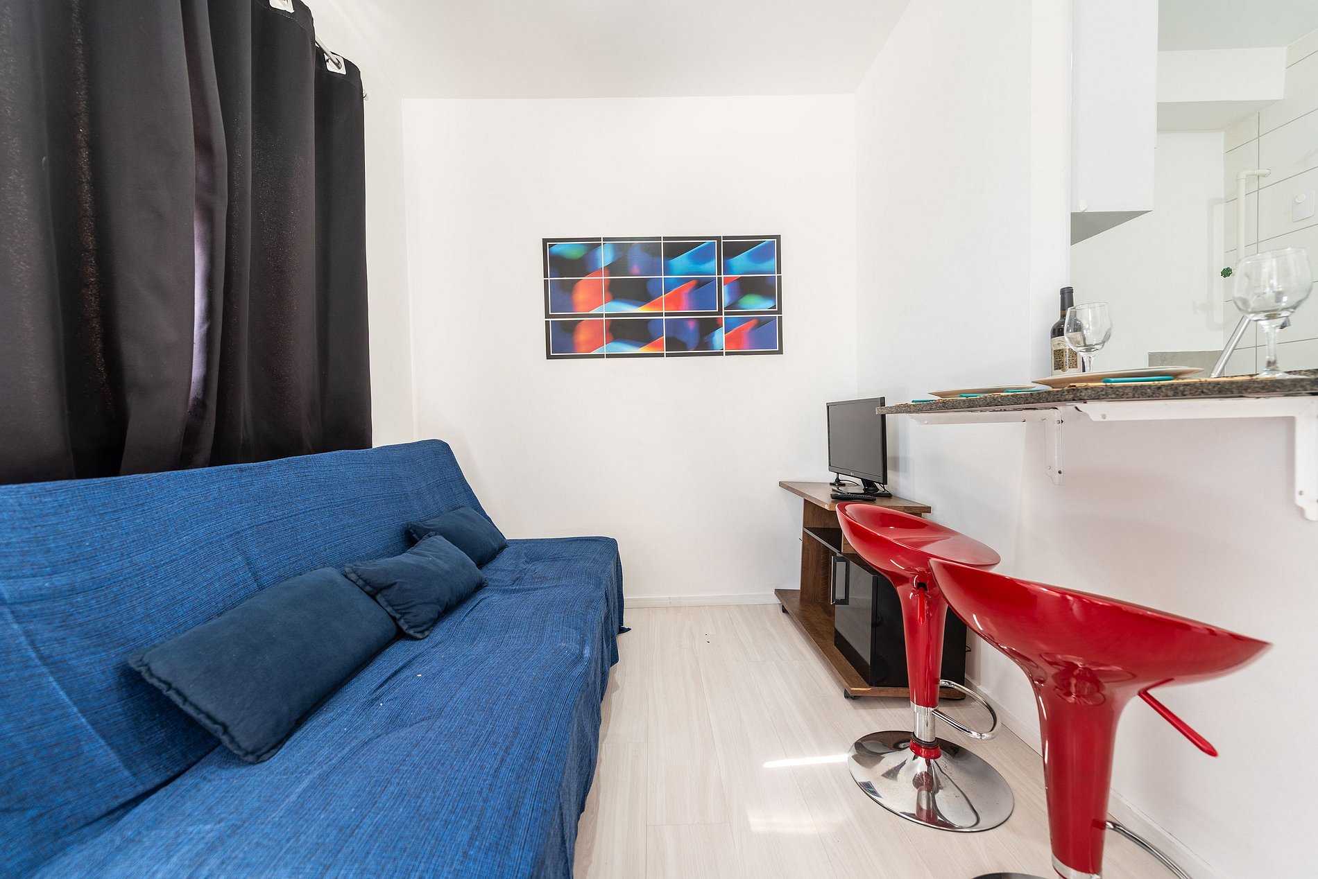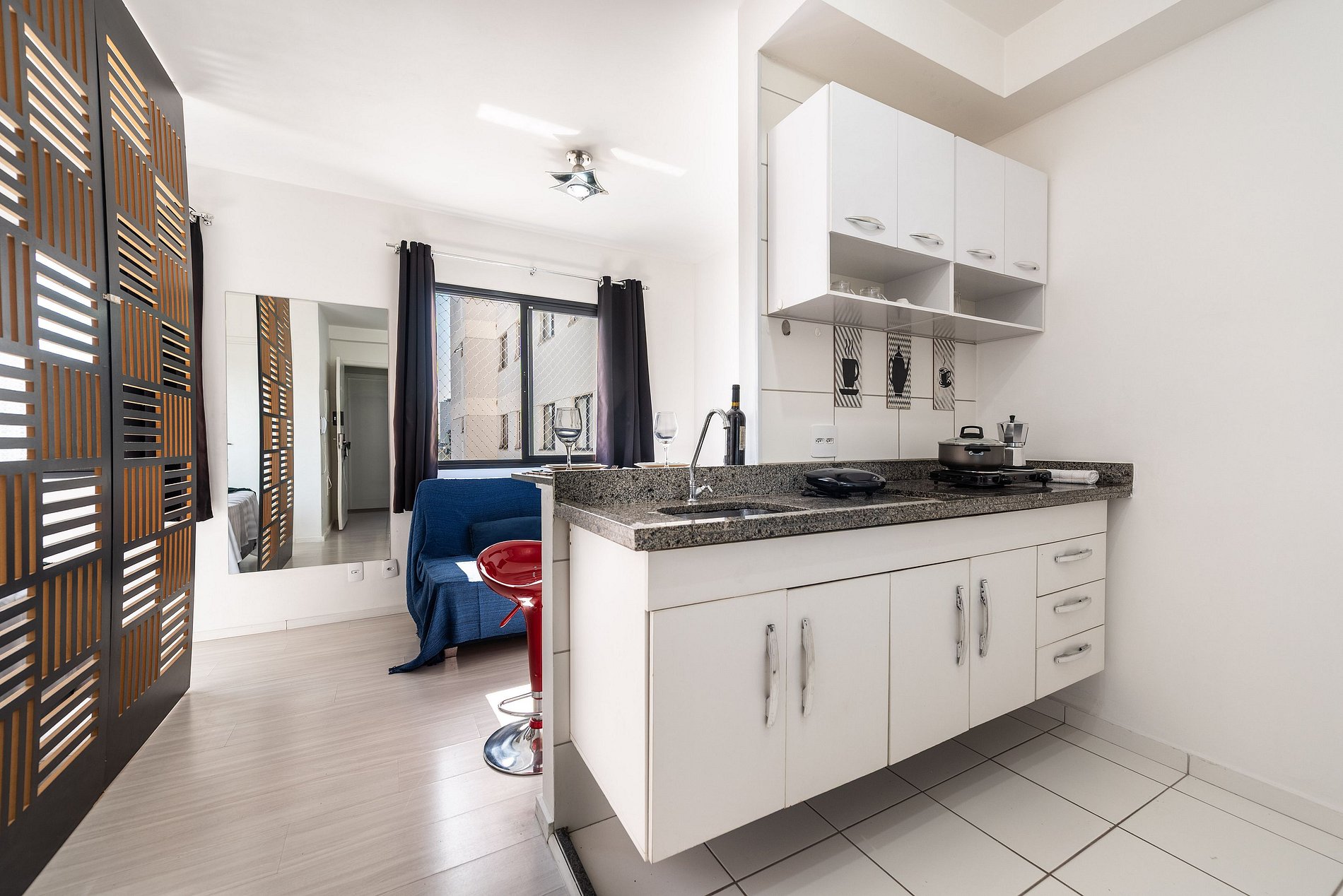 Studio aconchegante e compacto, perfeito para até 3 pessoas. Conta com cama confortável, sofá-cama, cozinha equipada com o essencial, banheiro funcional e um ambiente planejado para garantir praticidade e conforto durante sua estadia. Ideal para quem valoriza um espaço bem organizado e acolhedor.