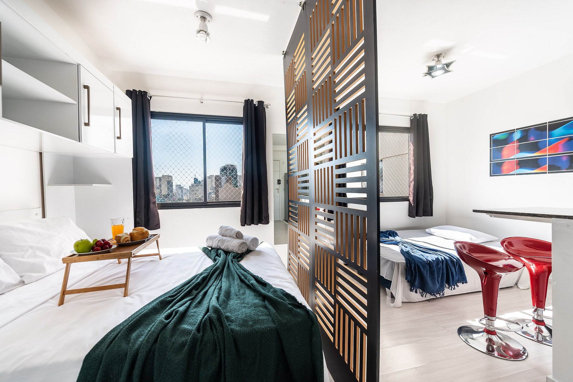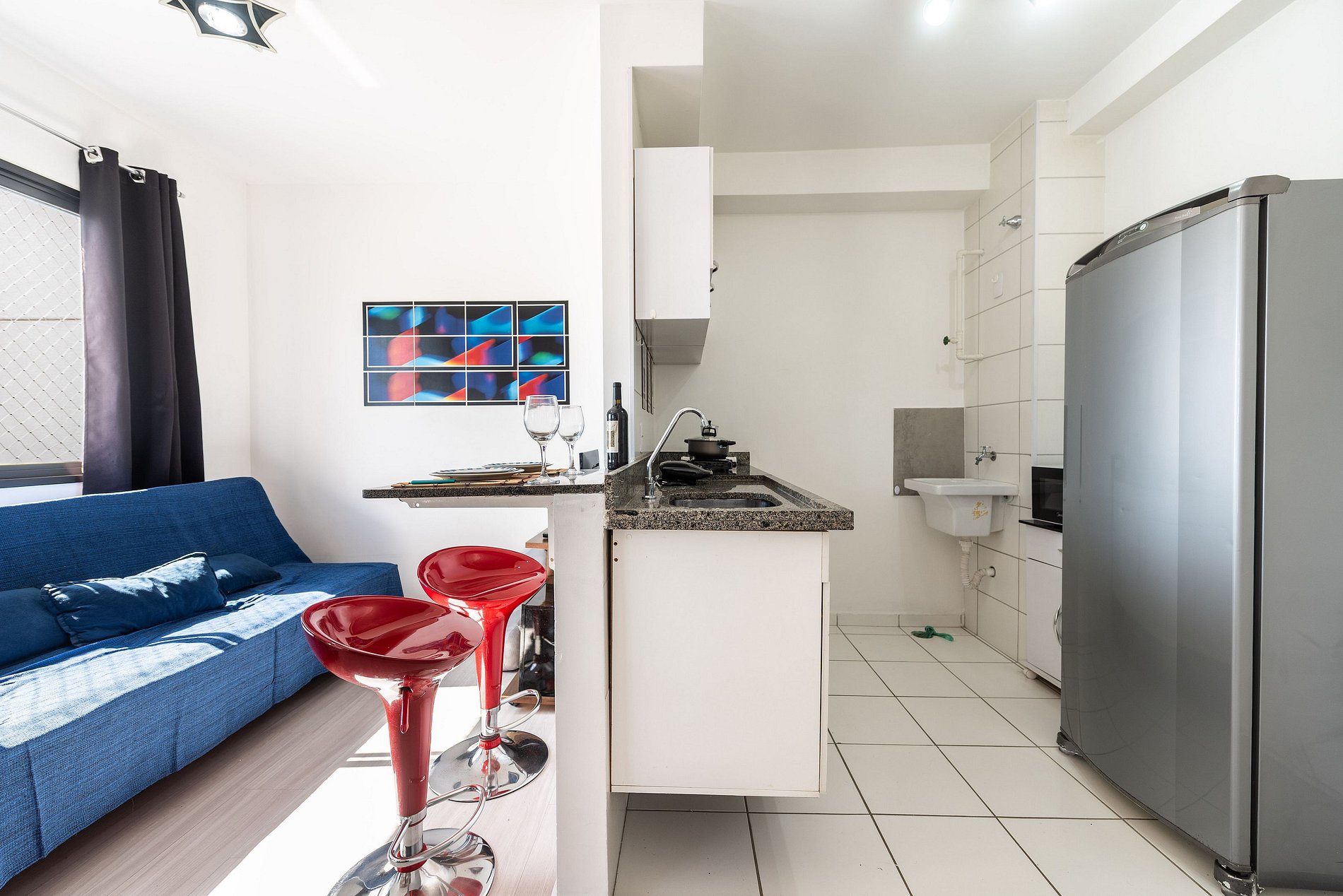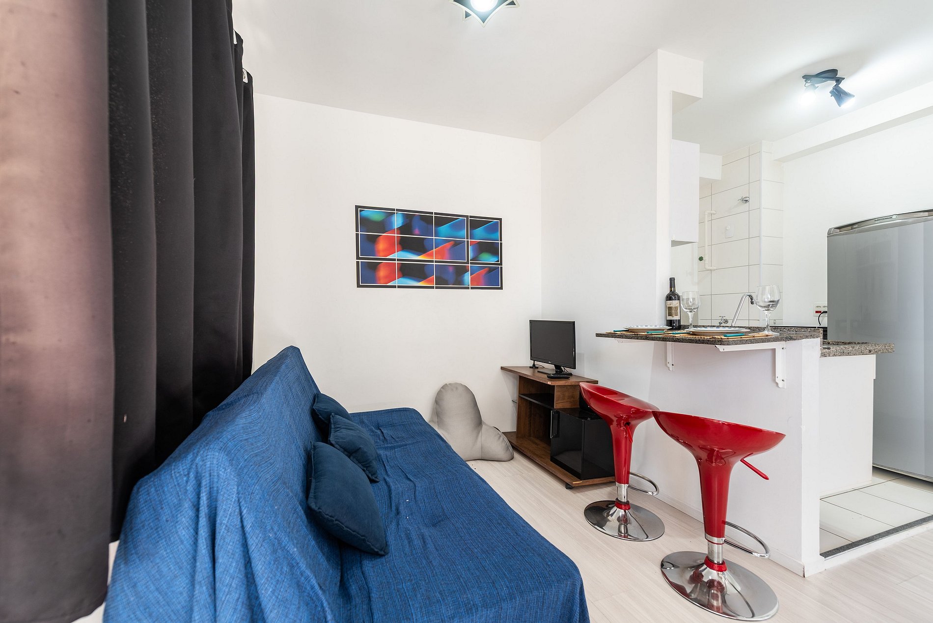 Studio aconchegante e compacto, perfeito para até 3 pessoas. Conta com cama confortável, sofá-cama, cozinha equipada com o essencial, banheiro funcional e um ambiente planejado para garantir praticidade e conforto durante sua estadia. Ideal para quem valoriza um espaço bem organizado e acolhedor.
