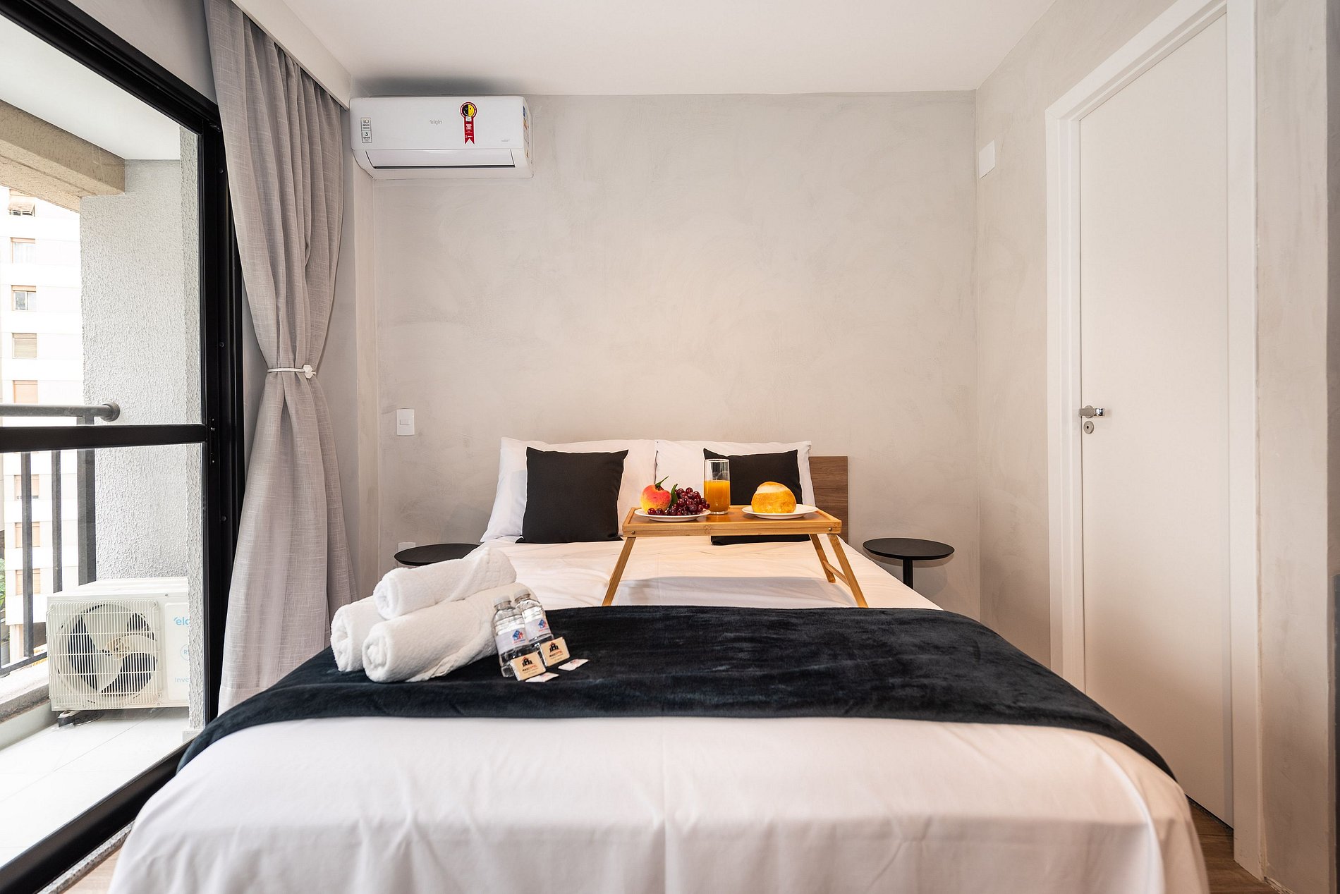・Enxoval completo: incluindo roupa de cama, toalhas e manta
