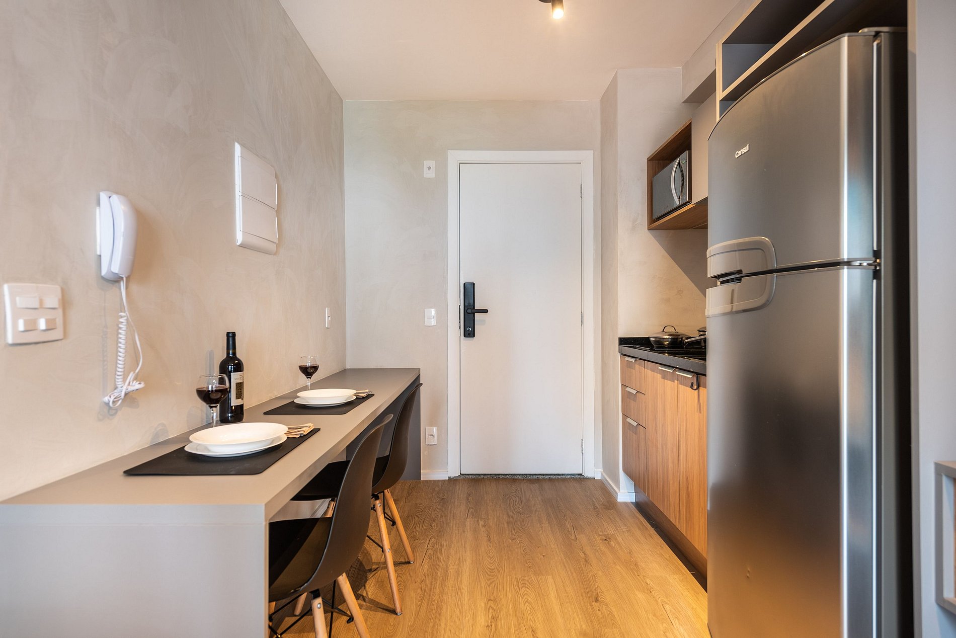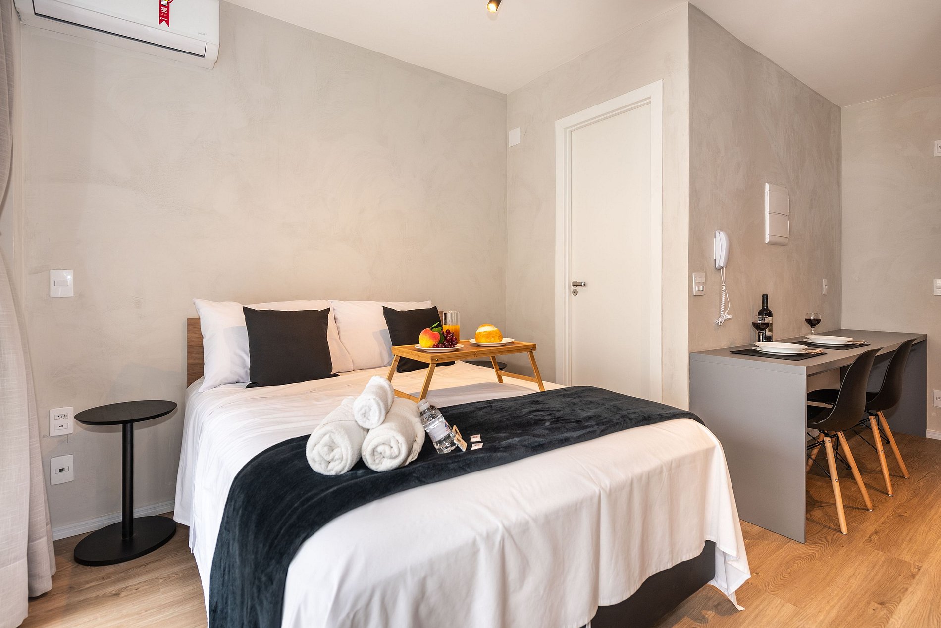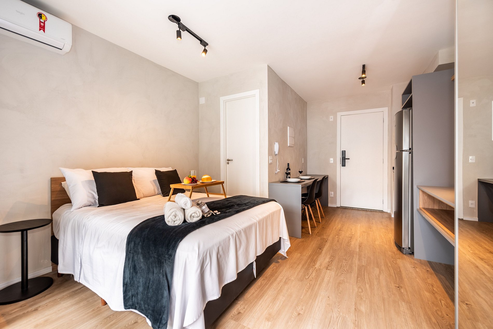 Studio completo para até duas pessoas, equipado com tudo o que você precisa para uma boa estadia. Compacto e funcional, o espaço oferece cama confortável, cozinha com itens básicos, banheiro privativo e ambiente aconchegante. Ideal para quem busca praticidade e conforto.