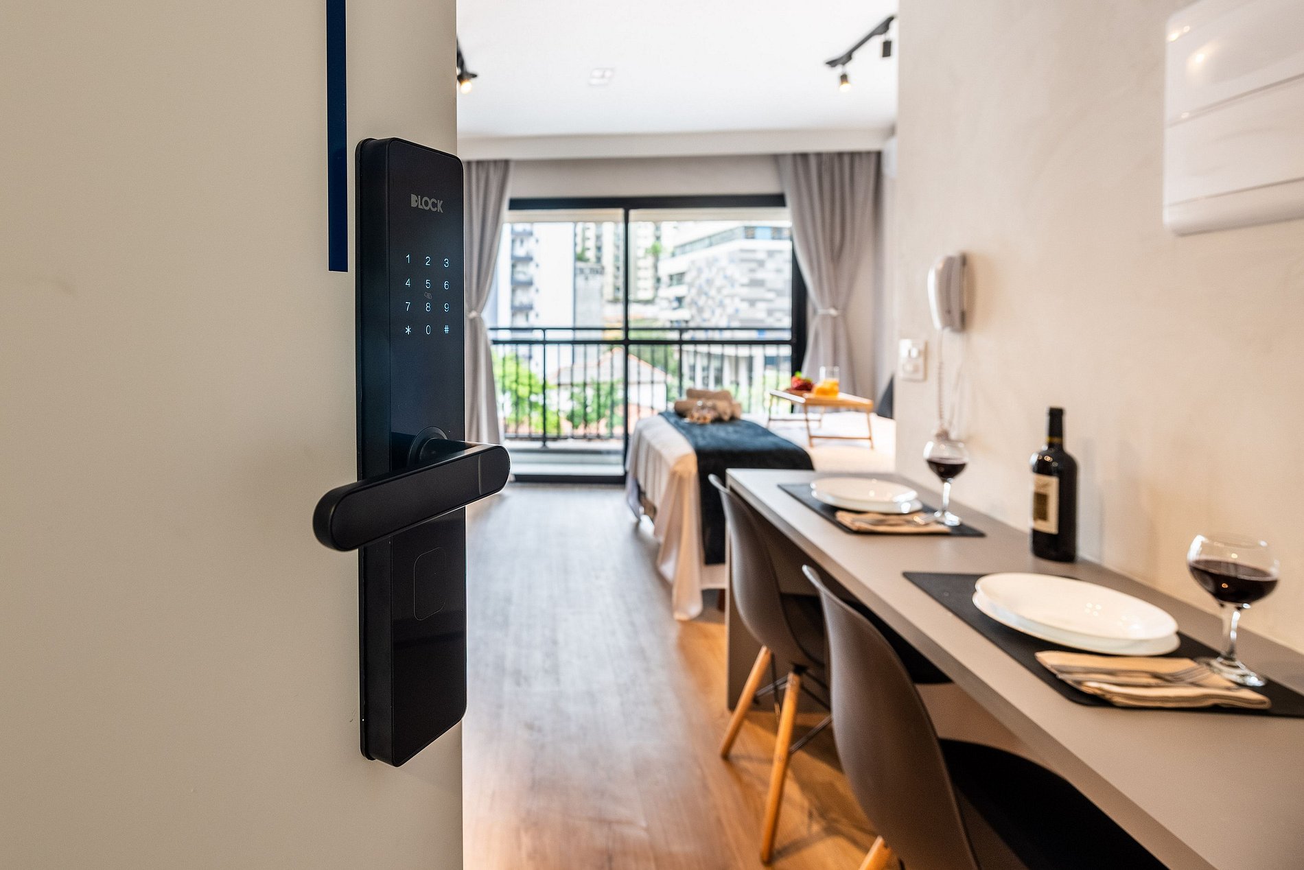 A entrada é realizada através de uma fechadura eletrônica, garantindo acesso total tanto ao apartamento quanto às comodidades do prédio.