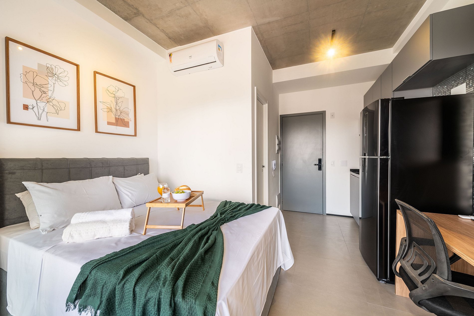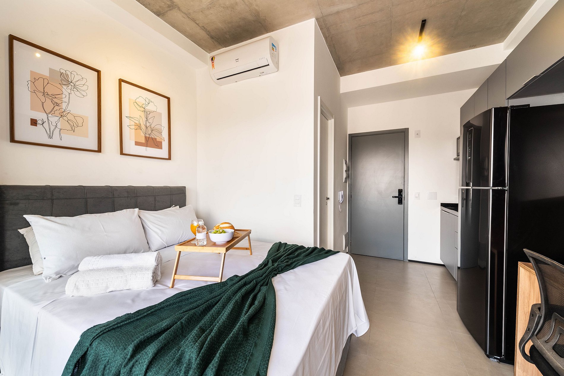 Desfrute da praticidade e do aconchego deste estúdio funcional, perfeito para duas pessoas. Equipado com tudo que você precisa para uma estadia tranquila, este espaço proporciona conforto e comodidade para uma experiência memorável.