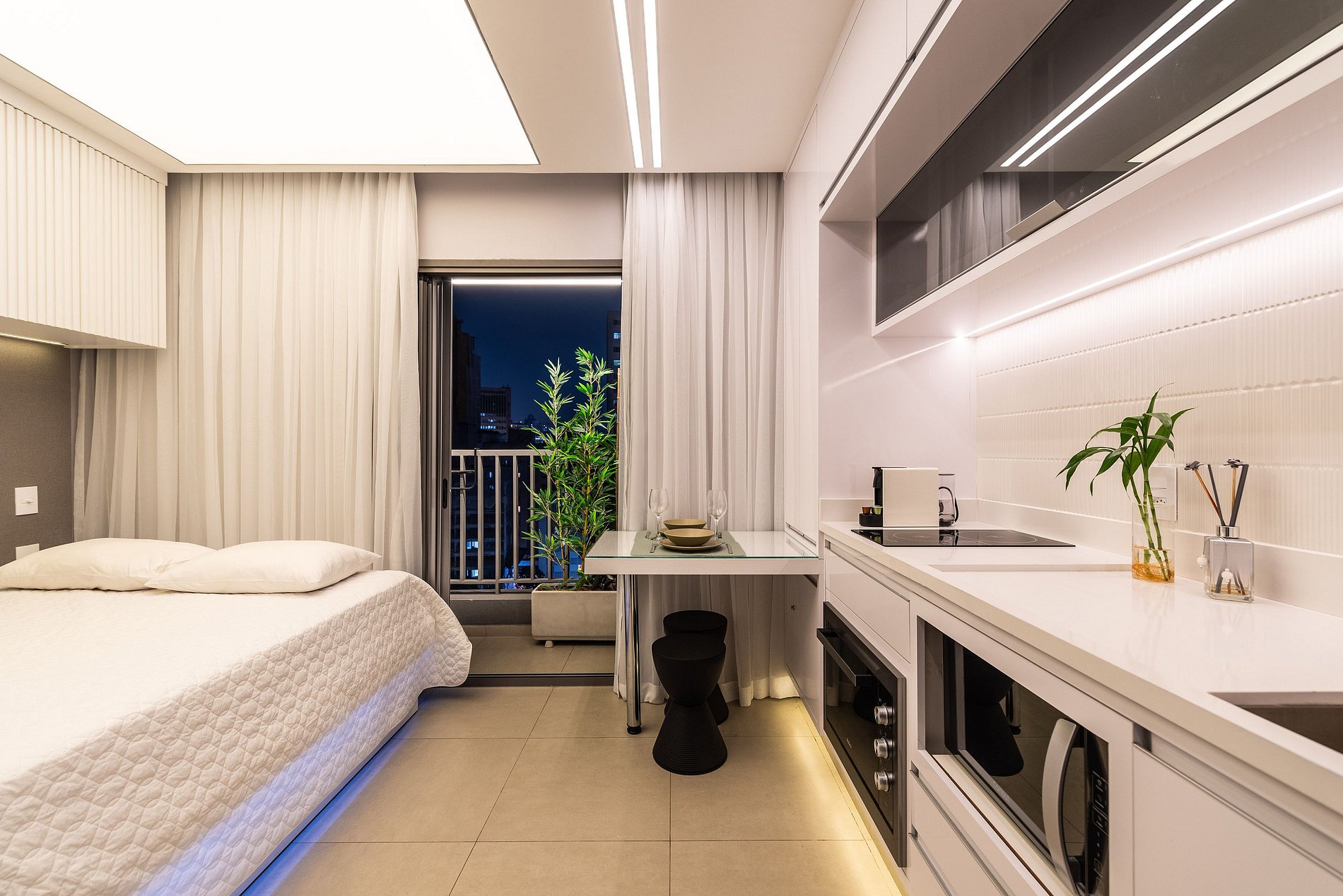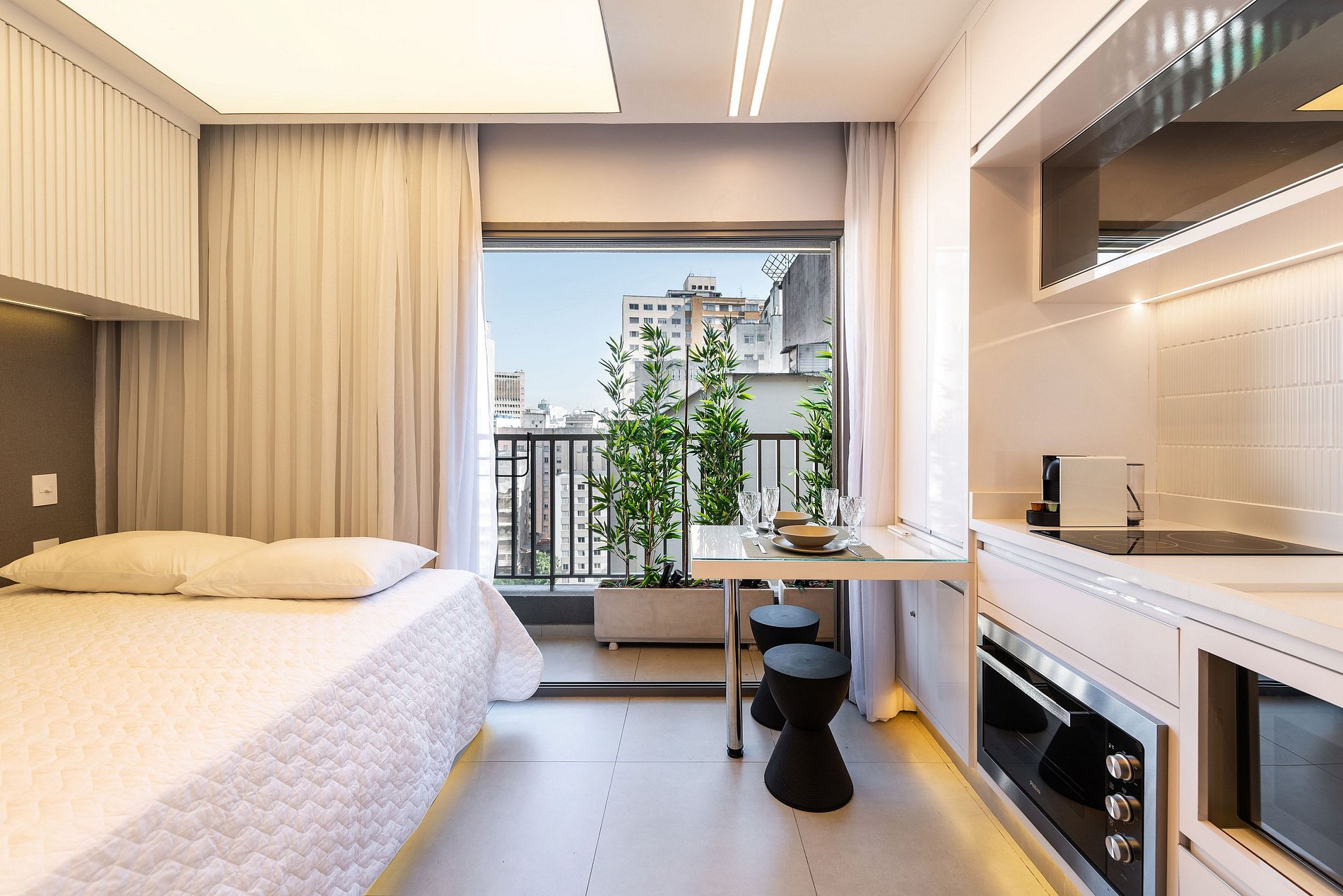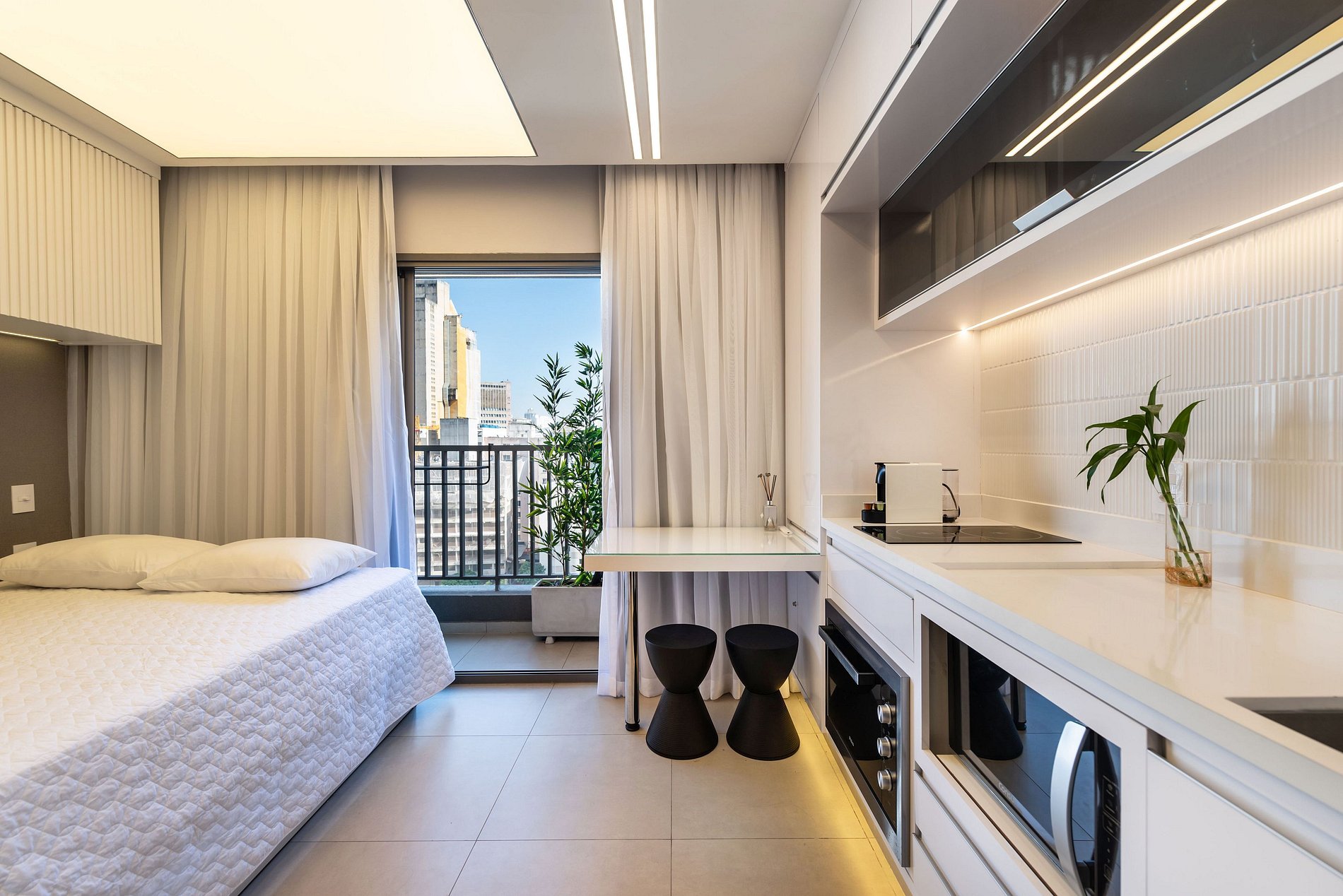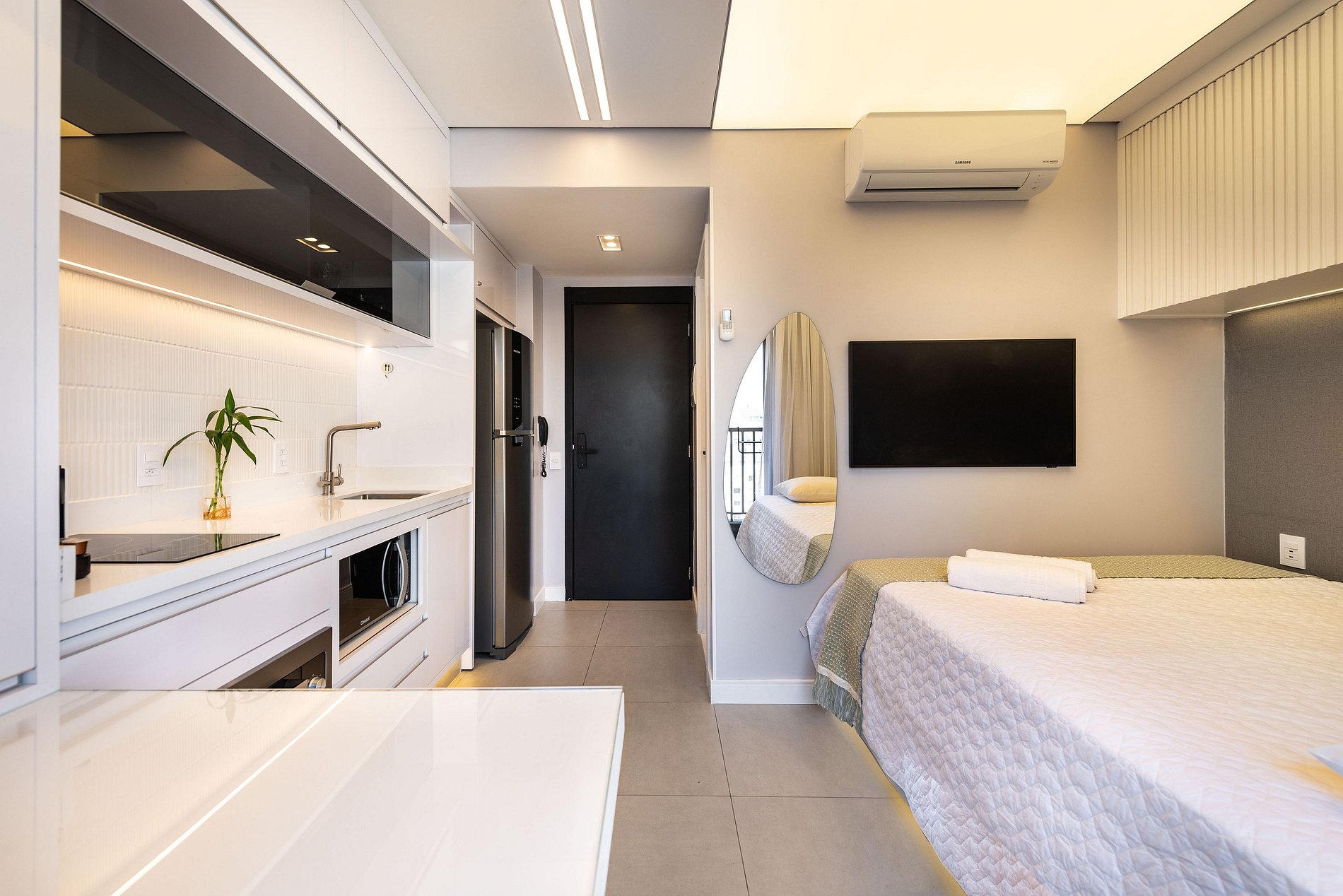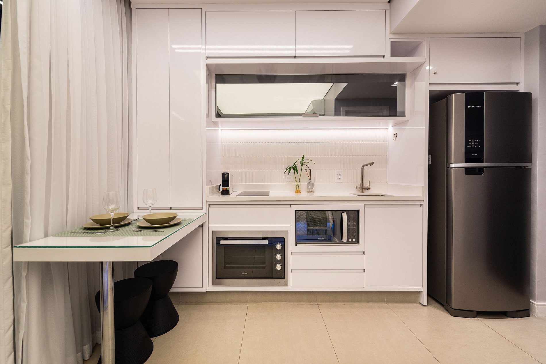 ・Cozinha completa: equipada com geladeira, fogão de indução (duas boca), forno elétrico, micro-ondas etc.