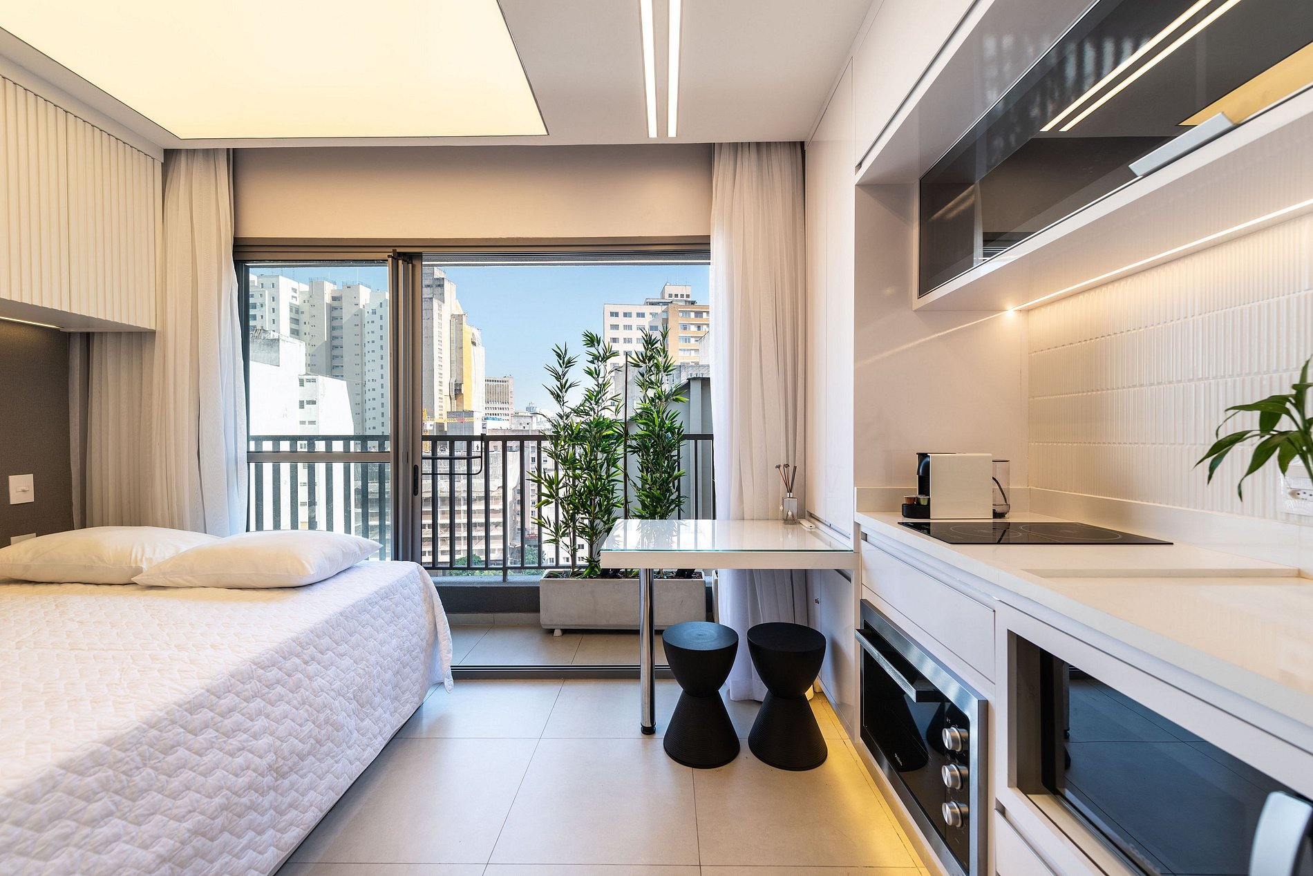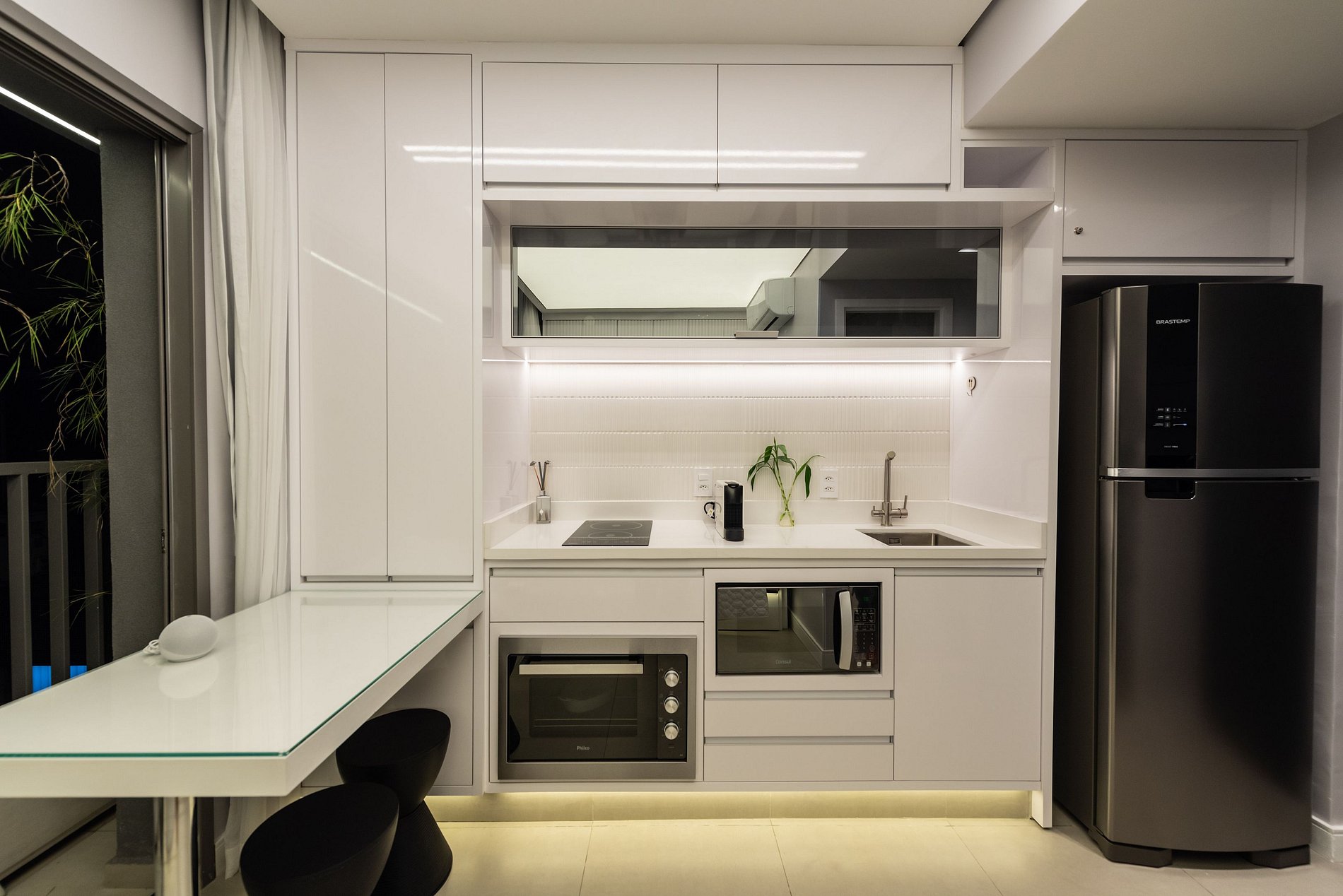 ・Cozinha completa: equipada com geladeira, fogão de indução (duas boca), forno elétrico, micro-ondas etc.