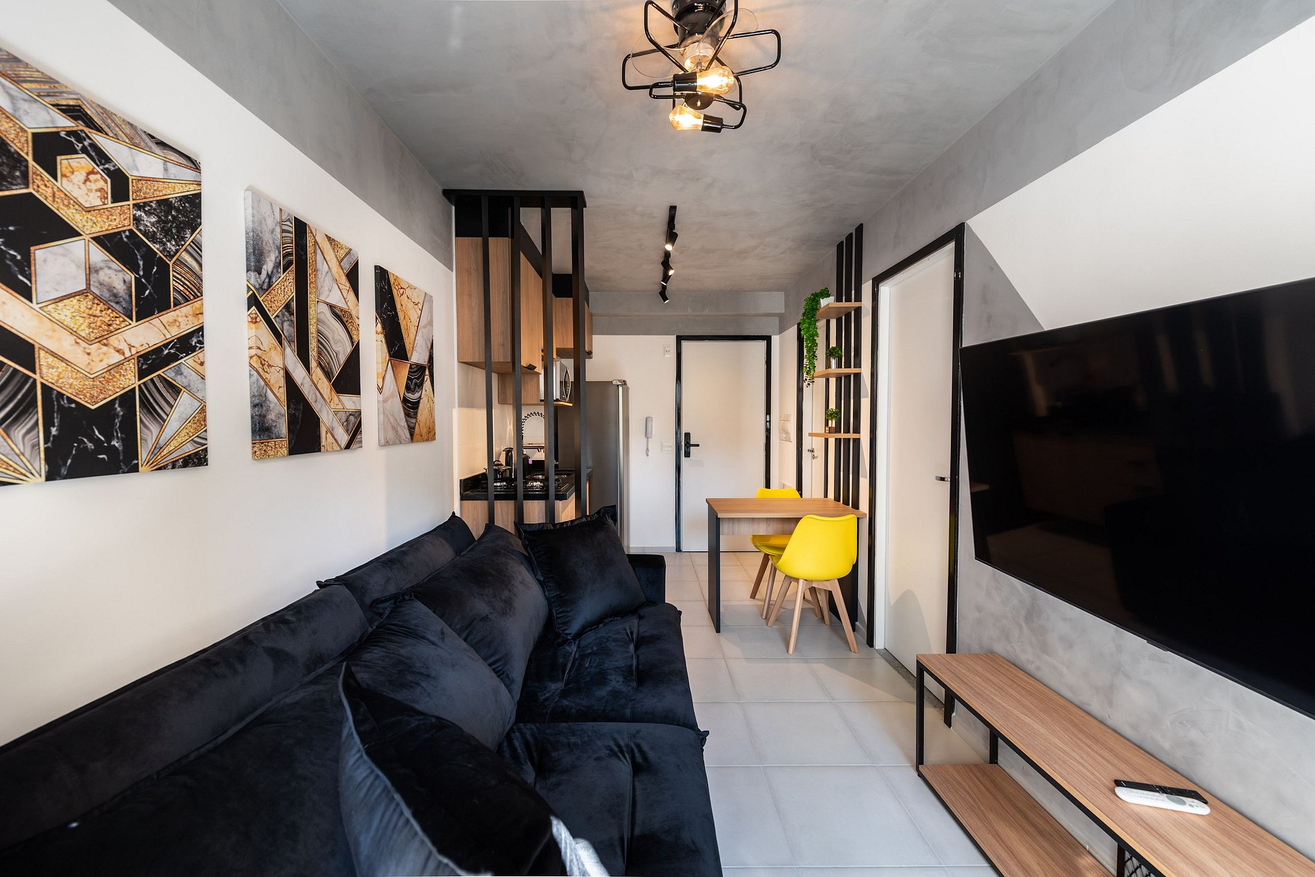 Aproveite uma estadia confortável em nosso apartamento totalmente equipado, ideal para acomodar até 3 pessoas. O espaço oferece tudo o que você precisa para uma excelente estadia: uma cama de casal, um sofá-cama, uma cozinha completa com utensílios essenciais, um banheiro moderno e uma área de estar aconchegante. Desfrute de todas as comodidades necessárias para se sentir em casa.