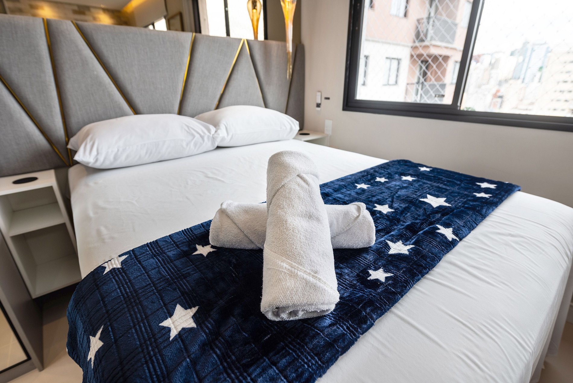 Dispõe ainda de sistema de som ambiente Bluetooth e controle de voz para acionamento da iluminação e das persianas, proporcionando mais conforto e modernidade durante a estadia.