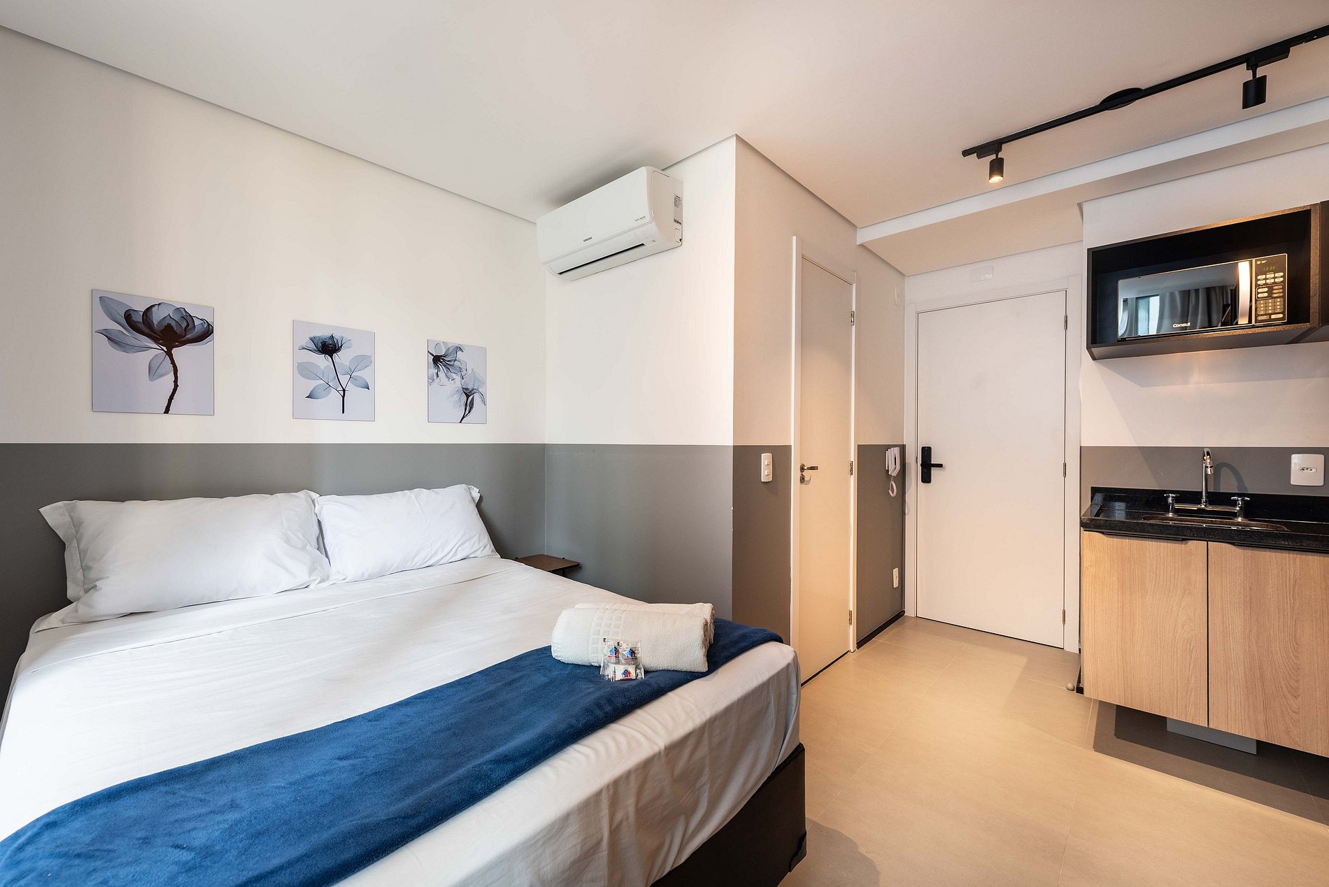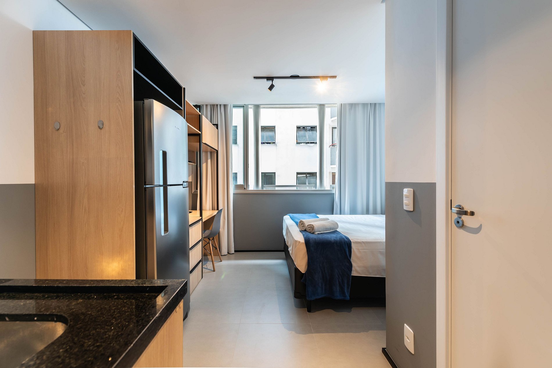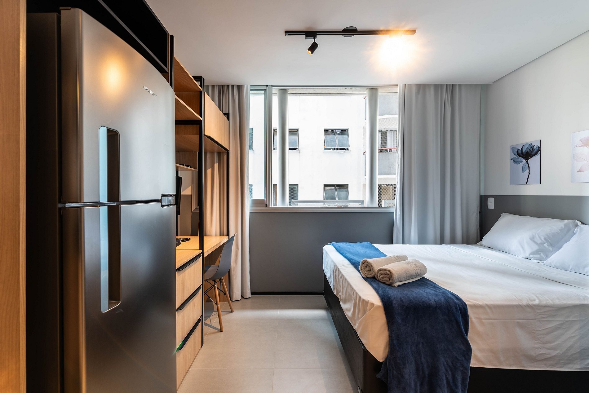 Desfrute da praticidade e do aconchego deste estúdio funcional, perfeito para duas pessoas. Equipado com tudo que você precisa para uma estadia tranquila, este espaço proporciona conforto e comodidade para uma experiência memorável.