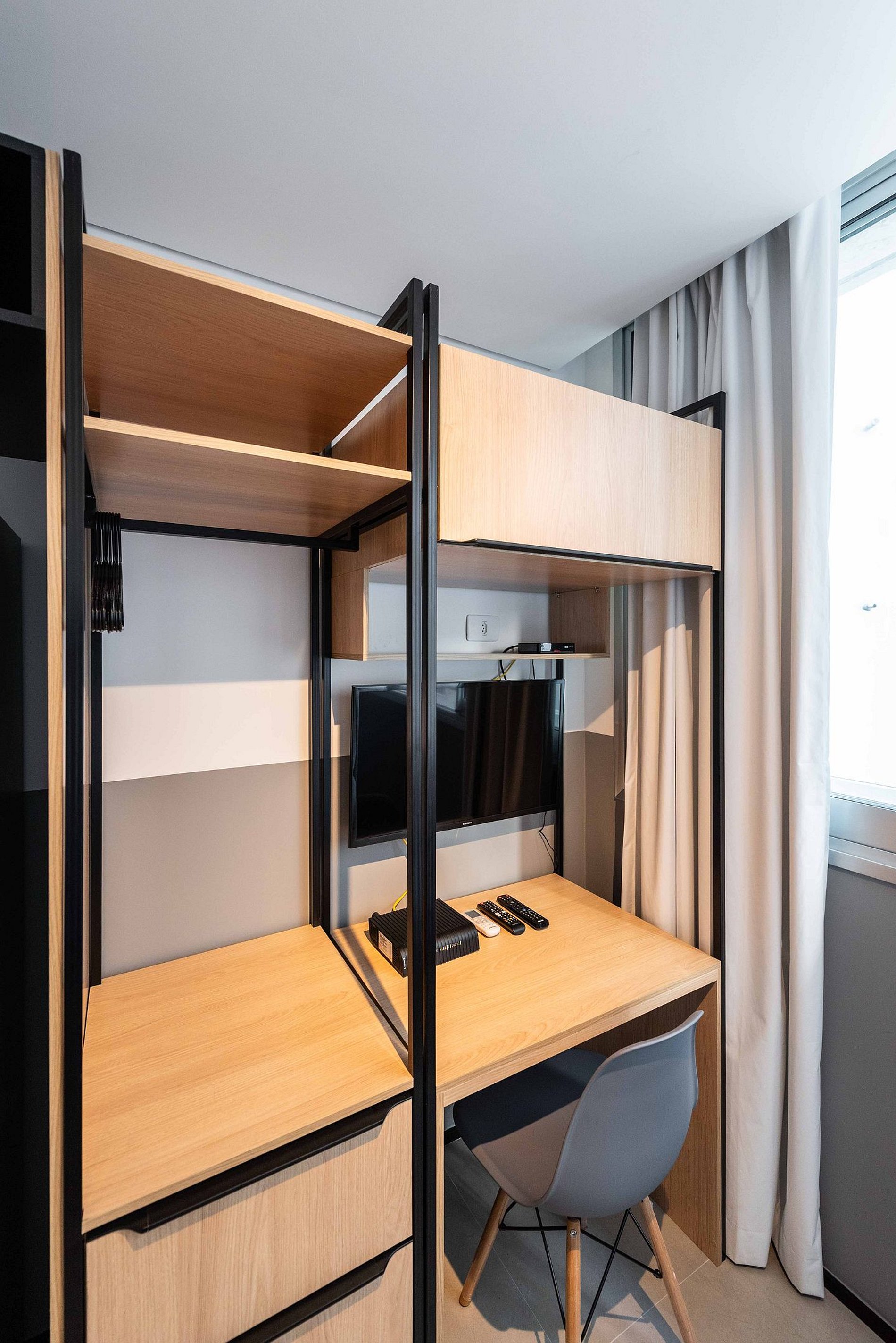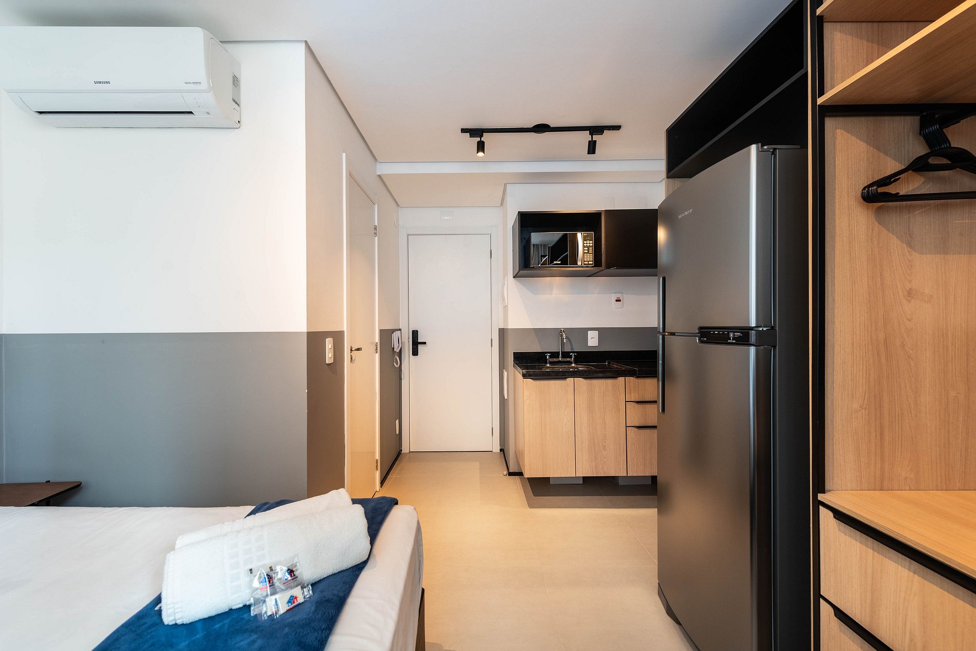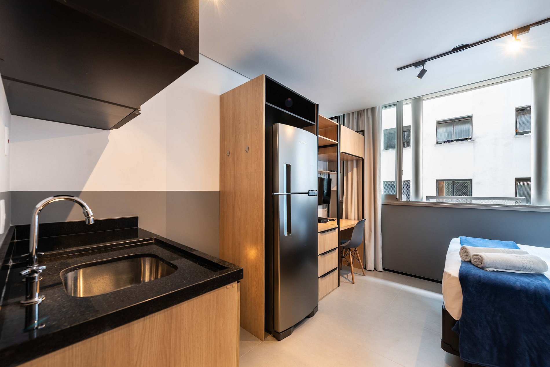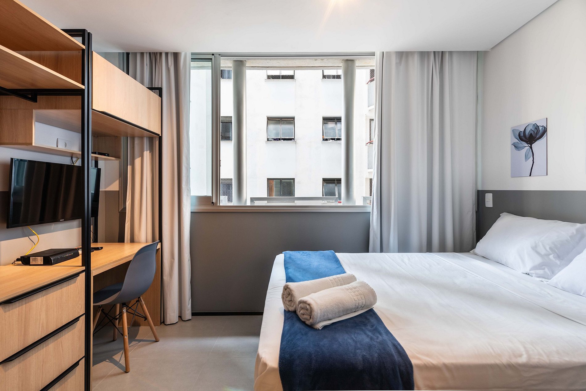 Desfrute da praticidade e do aconchego deste estúdio funcional, perfeito para duas pessoas. Equipado com tudo que você precisa para uma estadia tranquila, este espaço proporciona conforto e comodidade para uma experiência memorável.