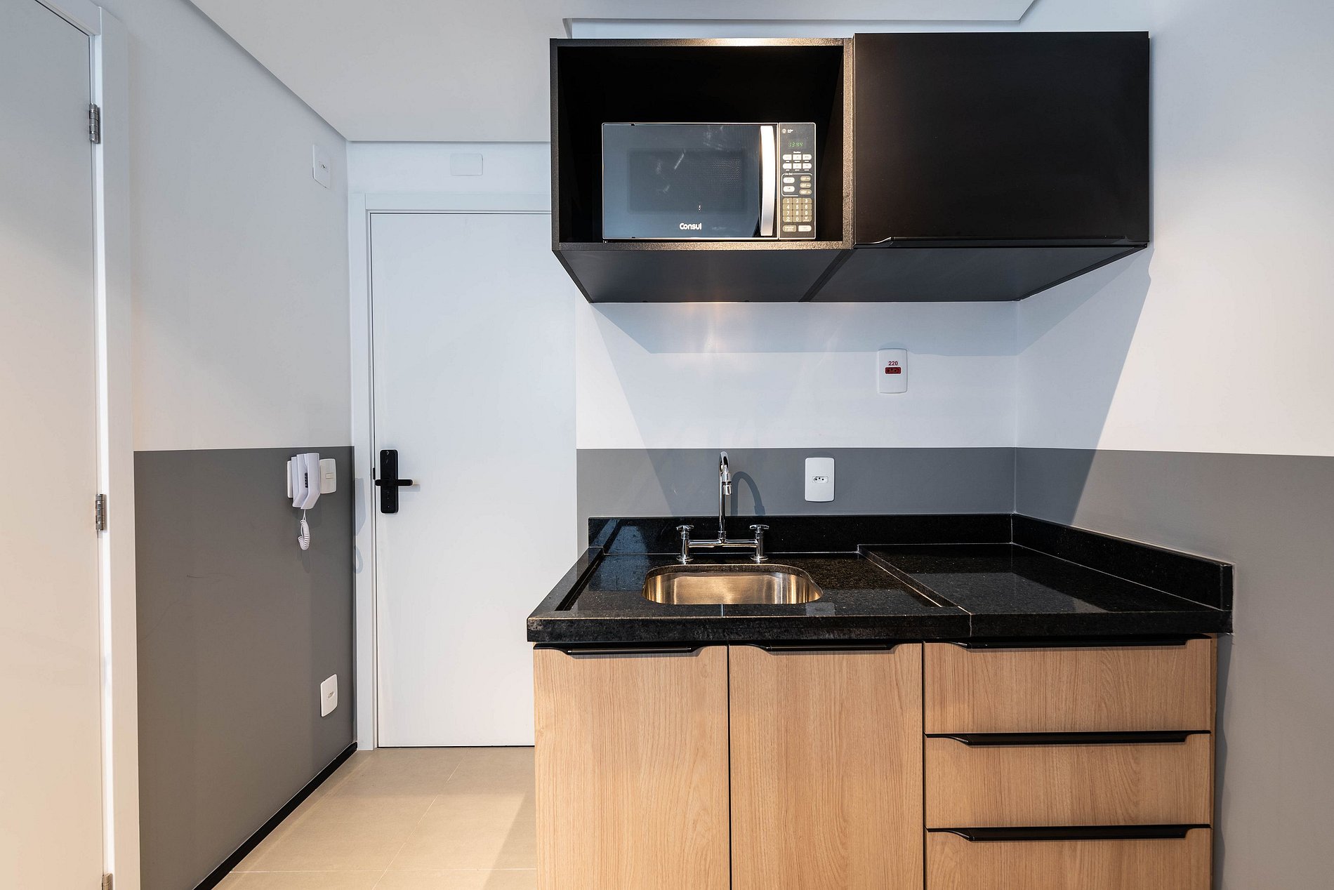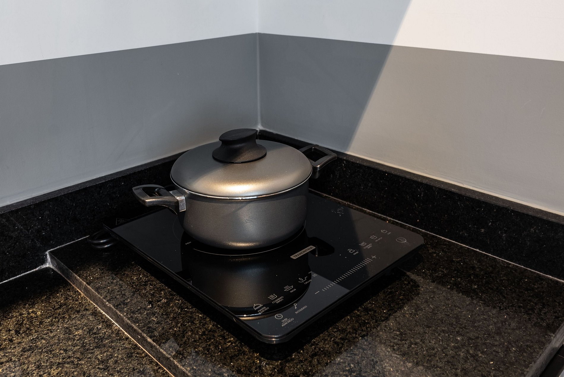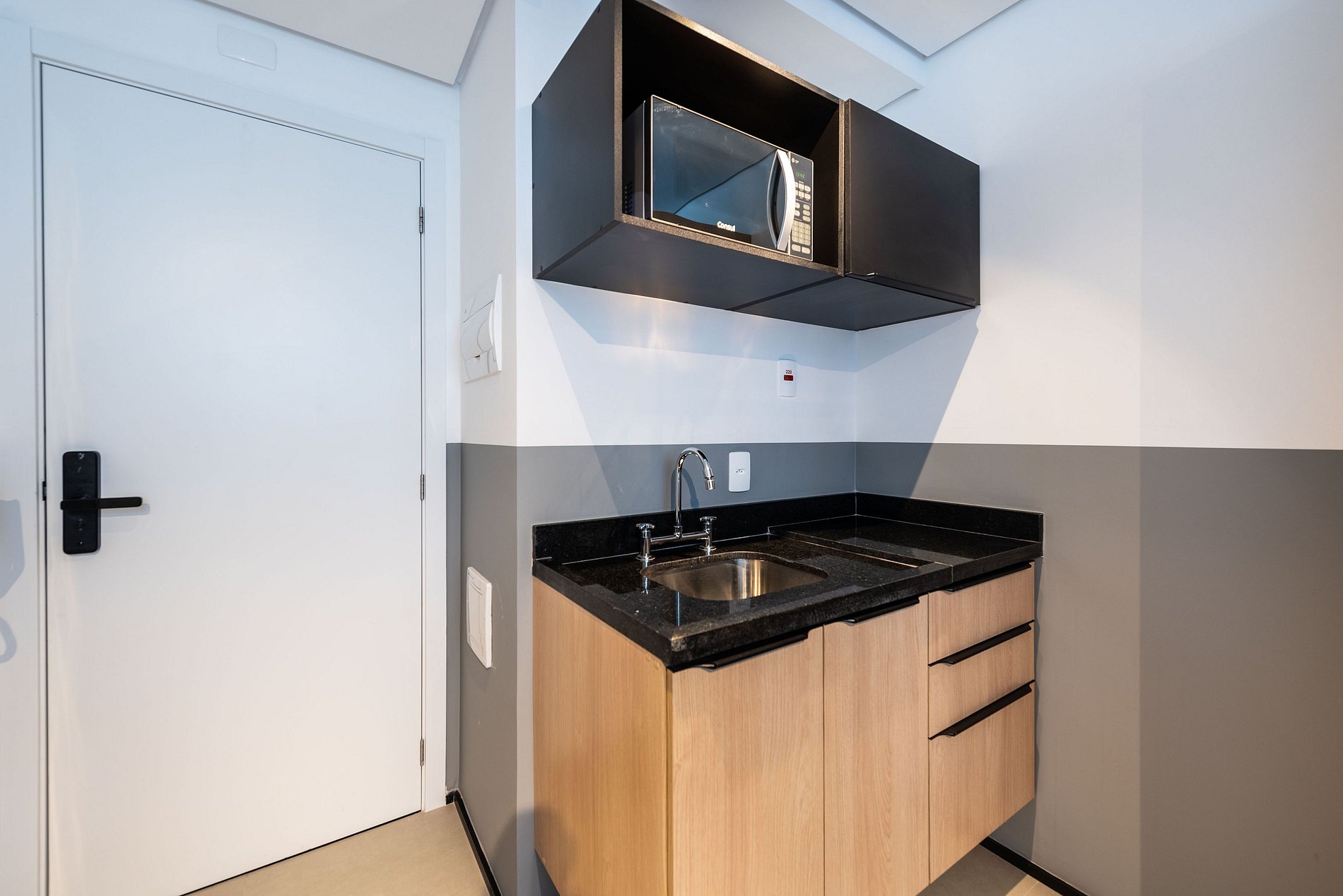 ・Cozinha completa: equipada com frigobar, fogão de indução (uma boca), micro-ondas etc.
