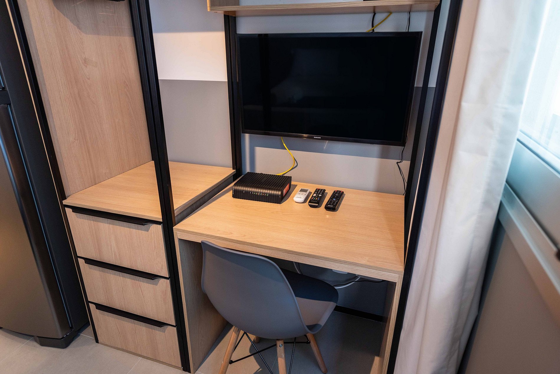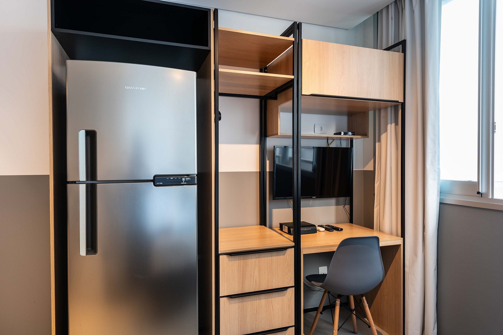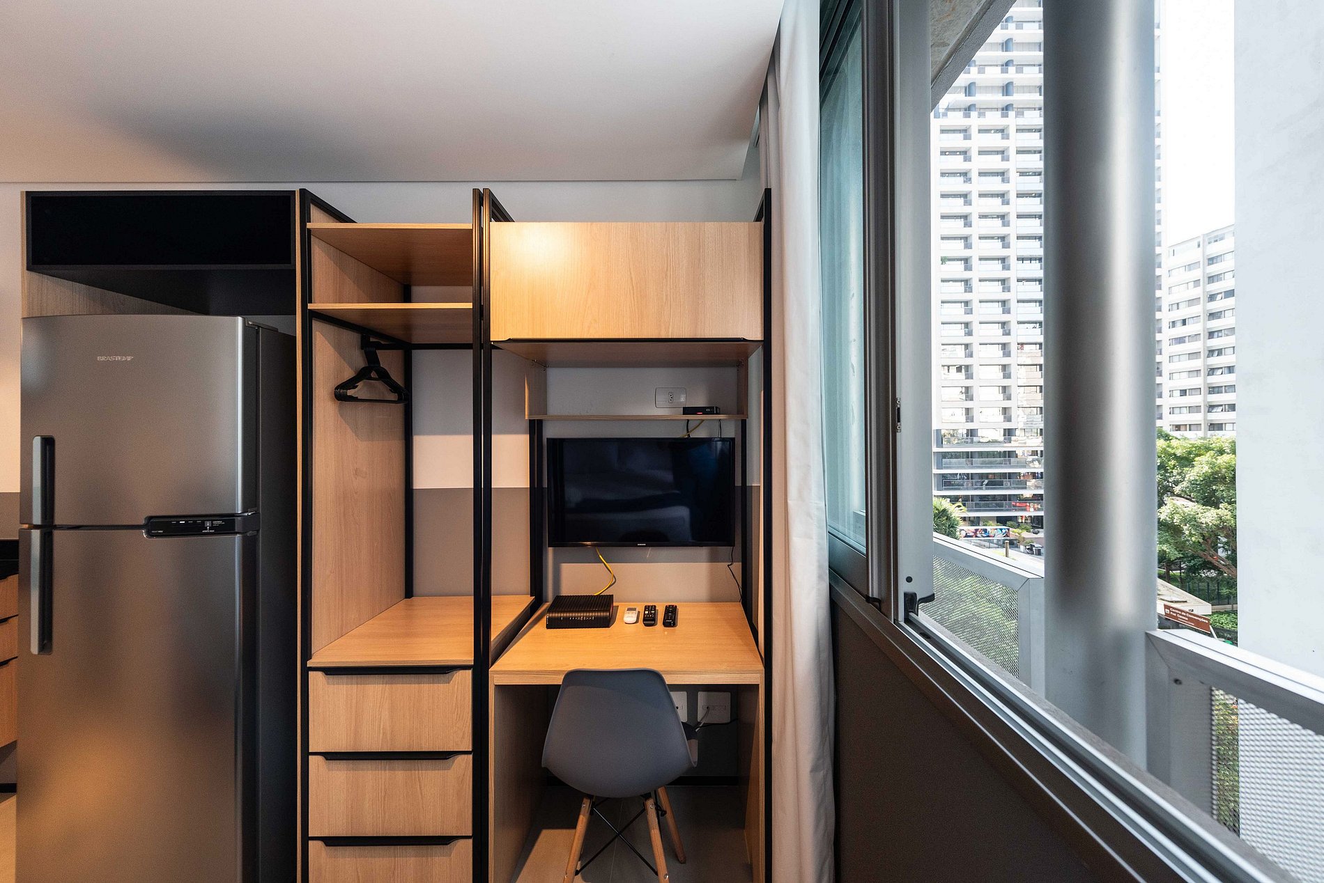 ATENÇÃO: O estúdio está equipado com ar-condicionado, que está operando normalmente no momento. Entretanto, é importante observar que devido a questões estruturais recorrentes no condomínio, pode haver interrupções em seu funcionamento. Essas ocorrências são comuns no prédio, e, infelizmente, quando ocorrem, não temos controle sobre a resolução imediata do problema.