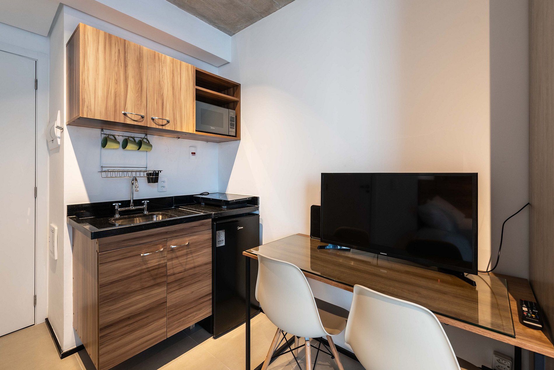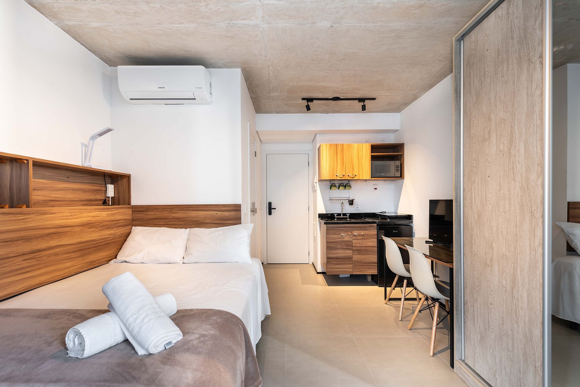 Sinta-se em casa neste estúdio moderno e aconchegante, perfeito para até duas pessoas. Um espaço pensado nos detalhes para oferecer praticidade, conforto e uma estadia leve em São Paulo — ideal para quem quer descansar ou trabalhar com tranquilidade.
