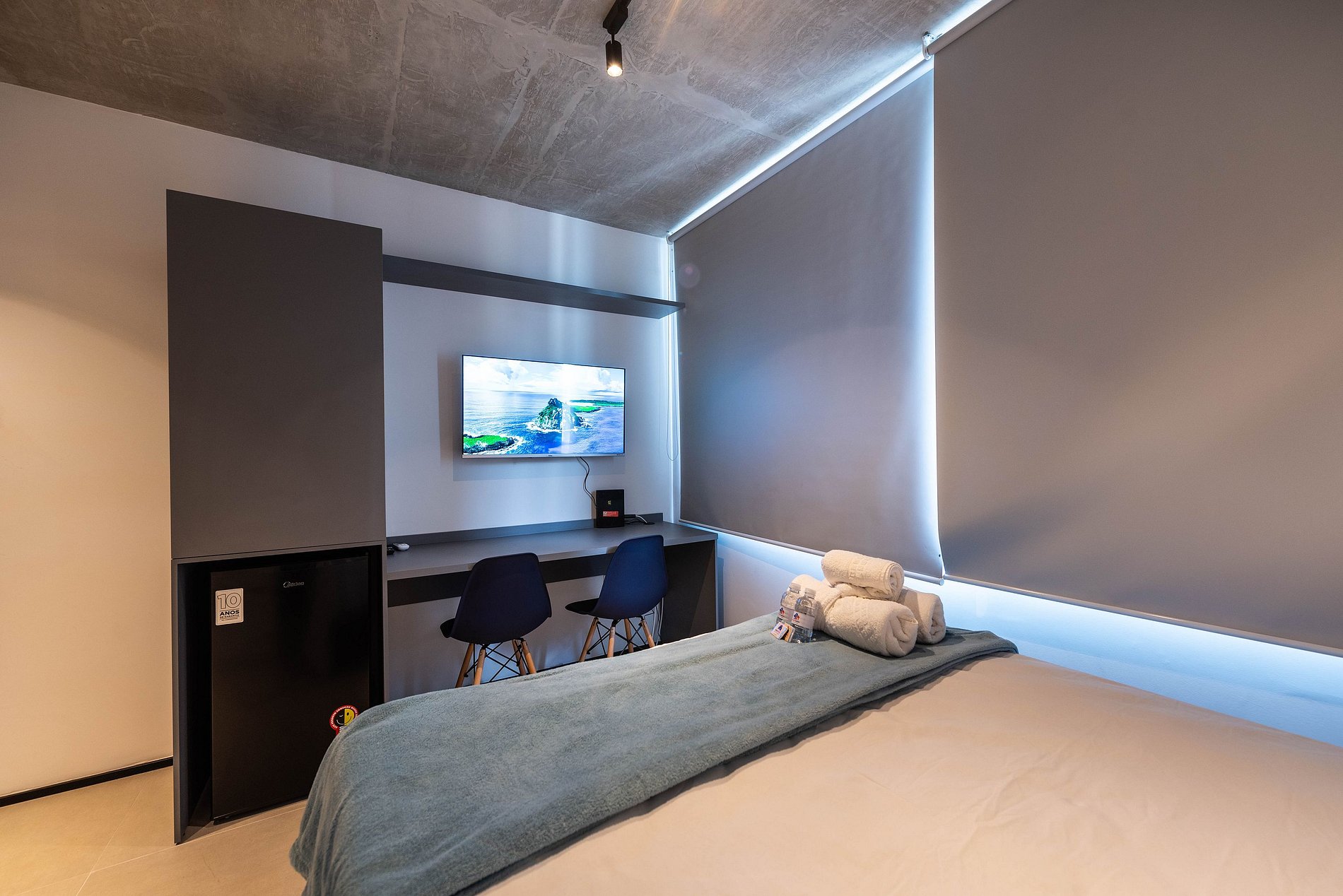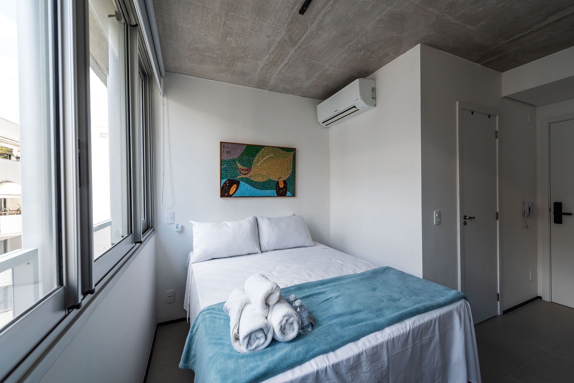 ATENÇÃO: O estúdio está equipado com ar-condicionado, que está operando normalmente no momento. Entretanto, é importante observar que devido a questões estruturais recorrentes no condomínio, pode haver interrupções em seu funcionamento. Essas ocorrências são comuns no prédio, e, infelizmente, quando ocorrem, não temos controle sobre a resolução imediata do problema.