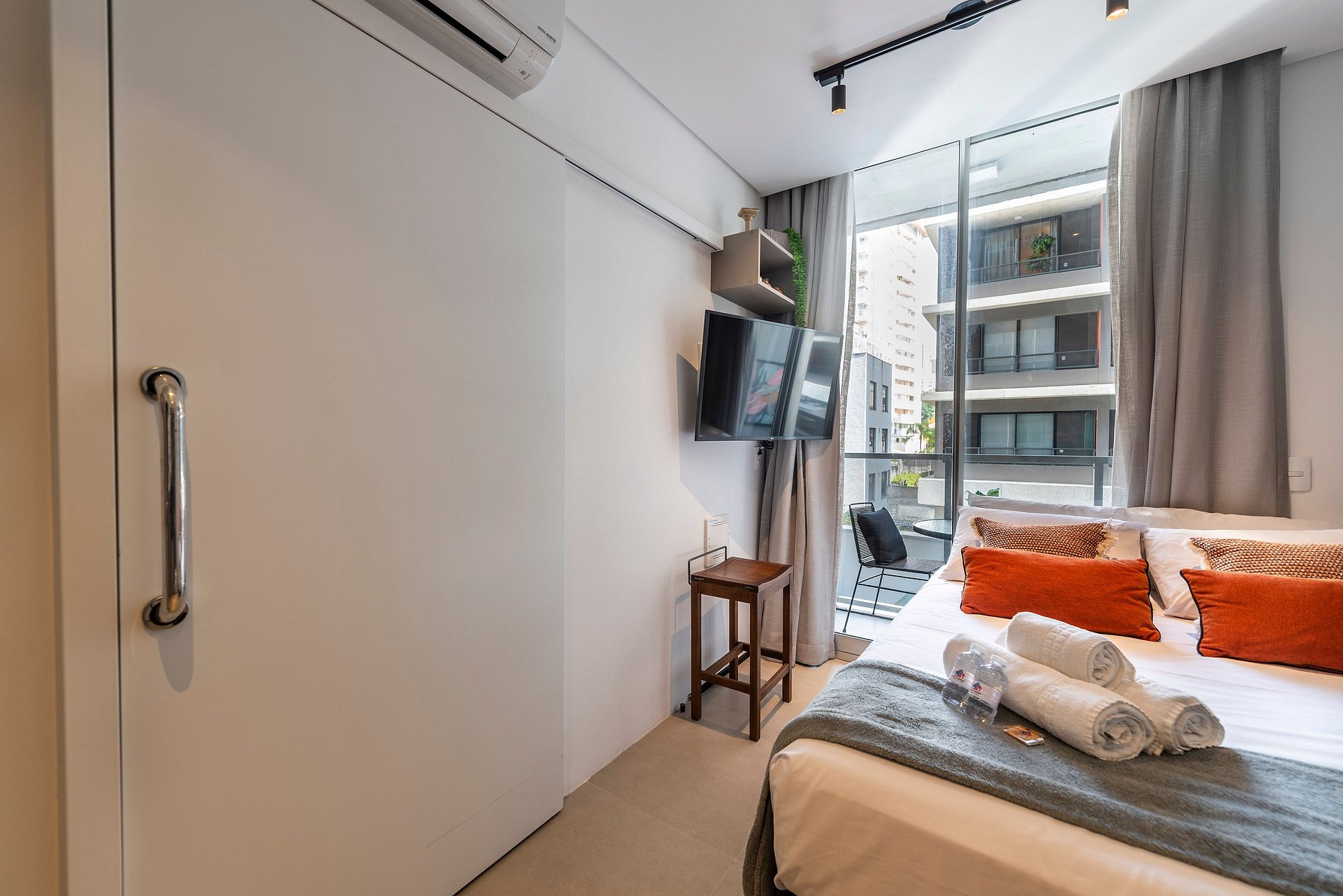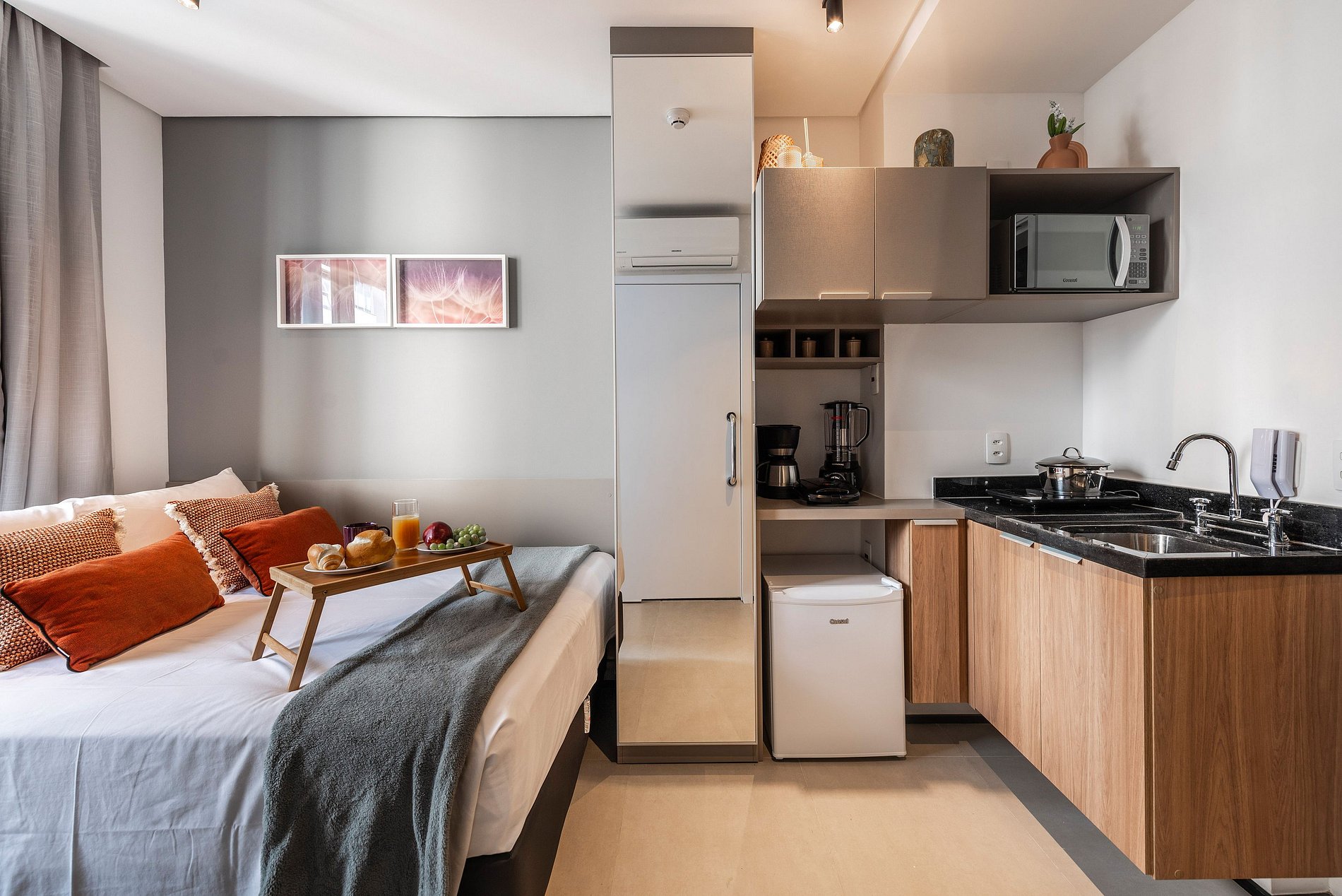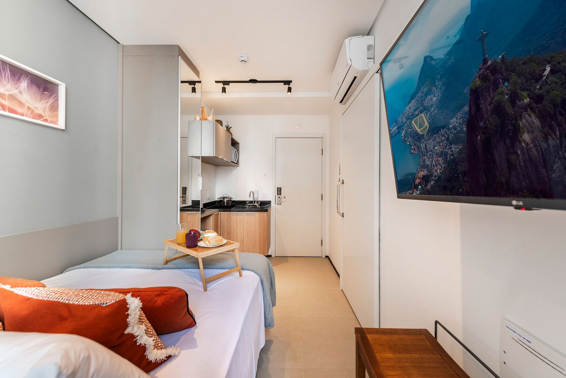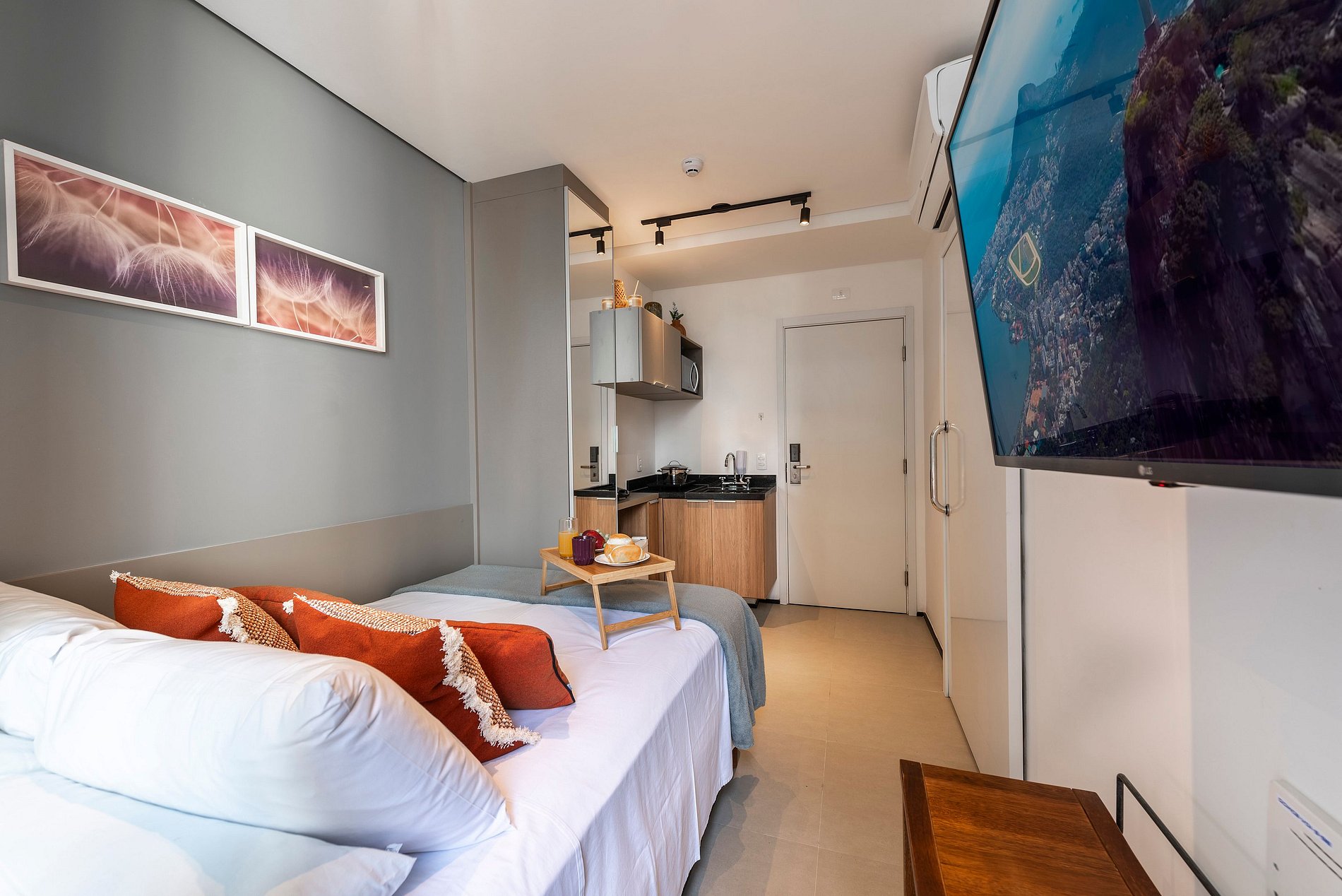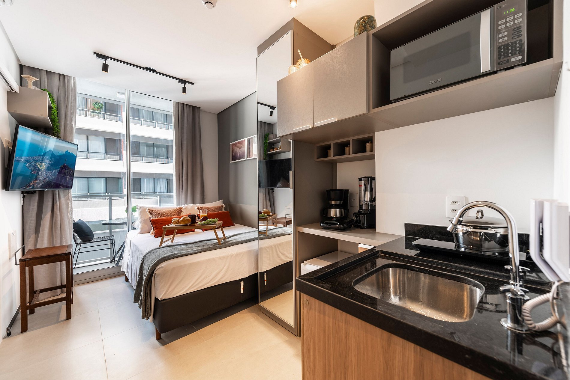 ATENÇÃO: O estúdio está equipado com ar-condicionado, que está operando normalmente no momento. Entretanto, é importante observar que devido a questões estruturais recorrentes no condomínio, pode haver interrupções em seu funcionamento. Essas ocorrências são comuns no prédio, e, infelizmente, quando ocorrem, não temos controle sobre a resolução imediata do problema.