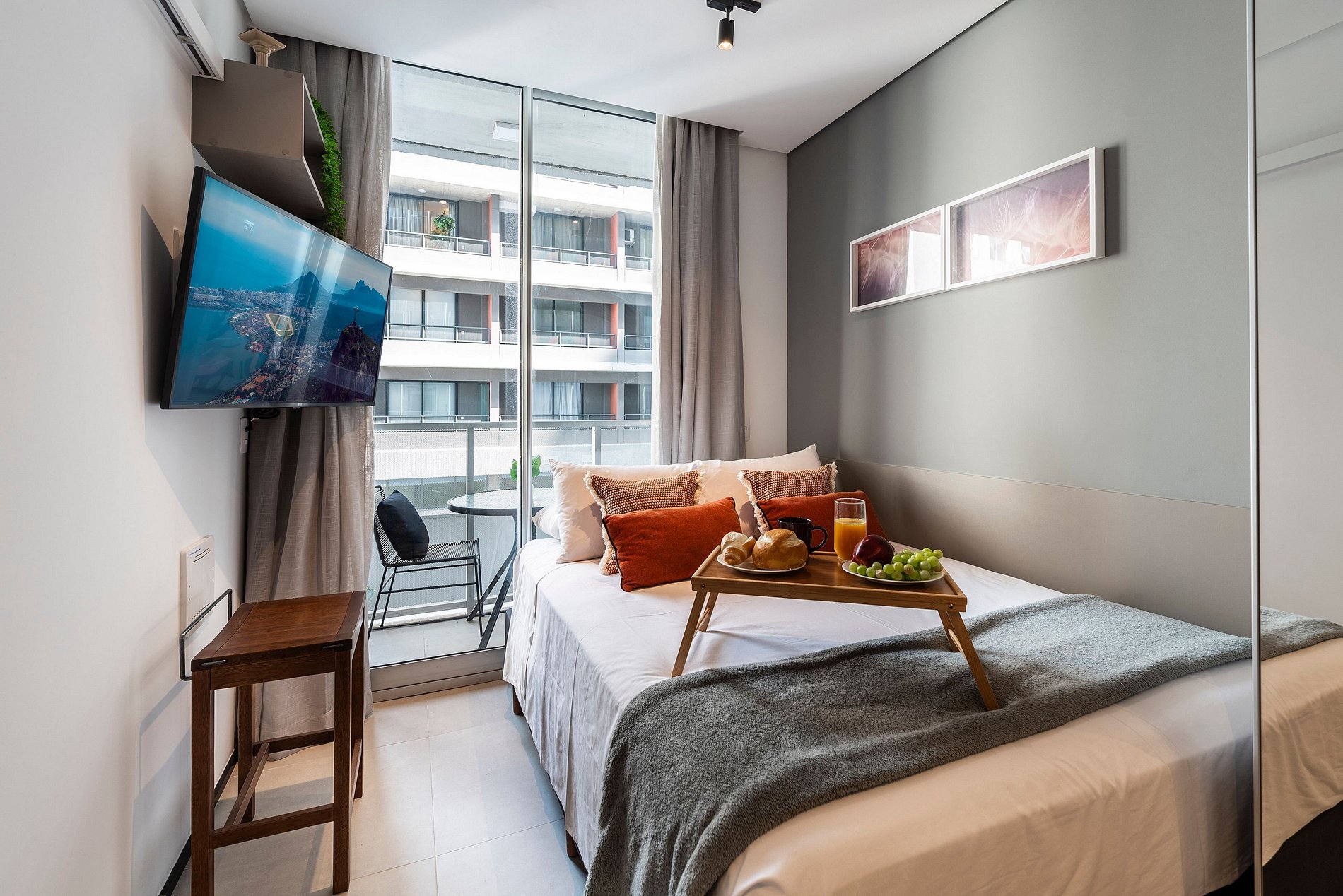 Desfrute da praticidade e do aconchego deste estúdio funcional, perfeito para duas pessoas. Equipado com tudo que você precisa para uma estadia tranquila, este espaço proporciona conforto e comodidade para uma experiência memorável.