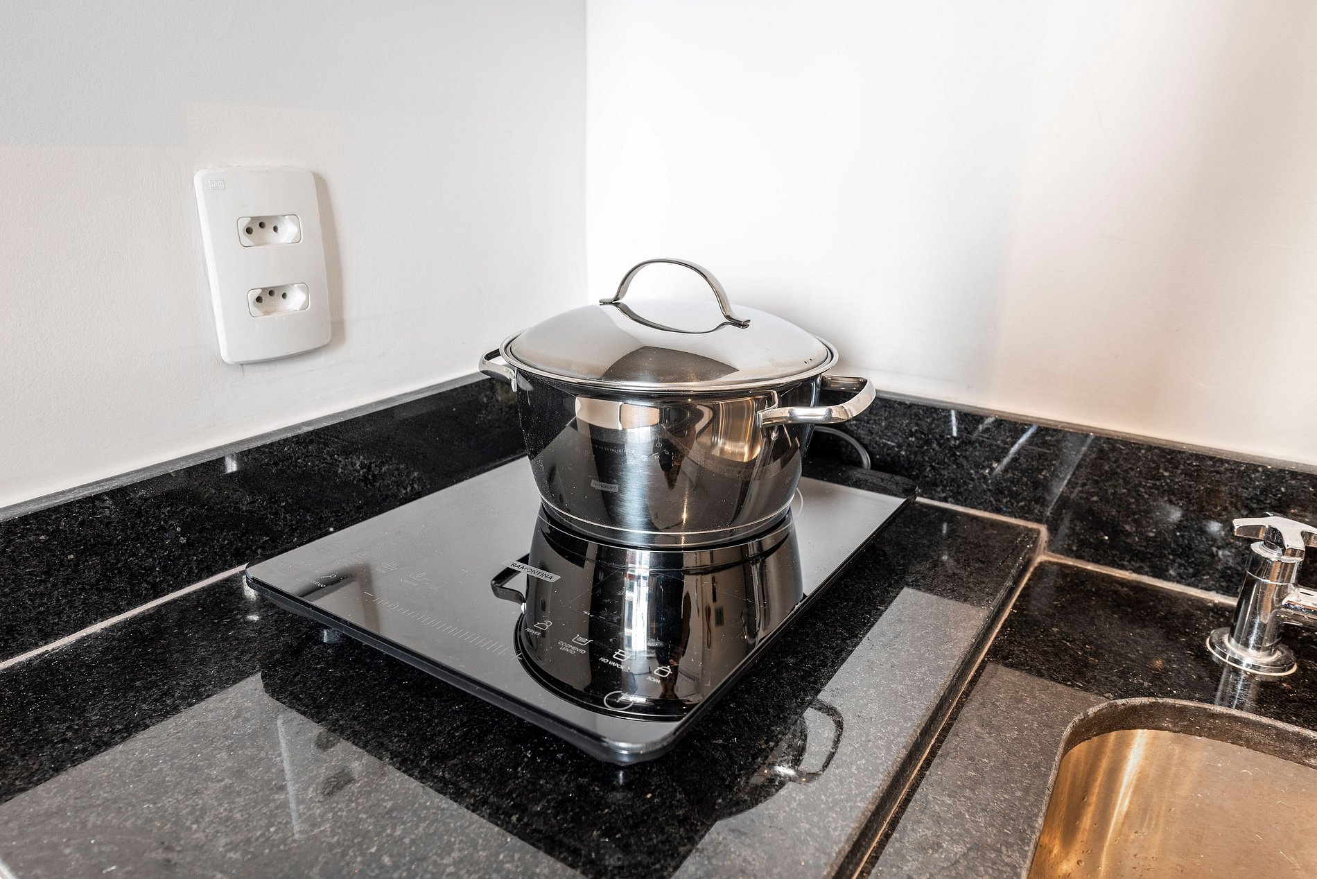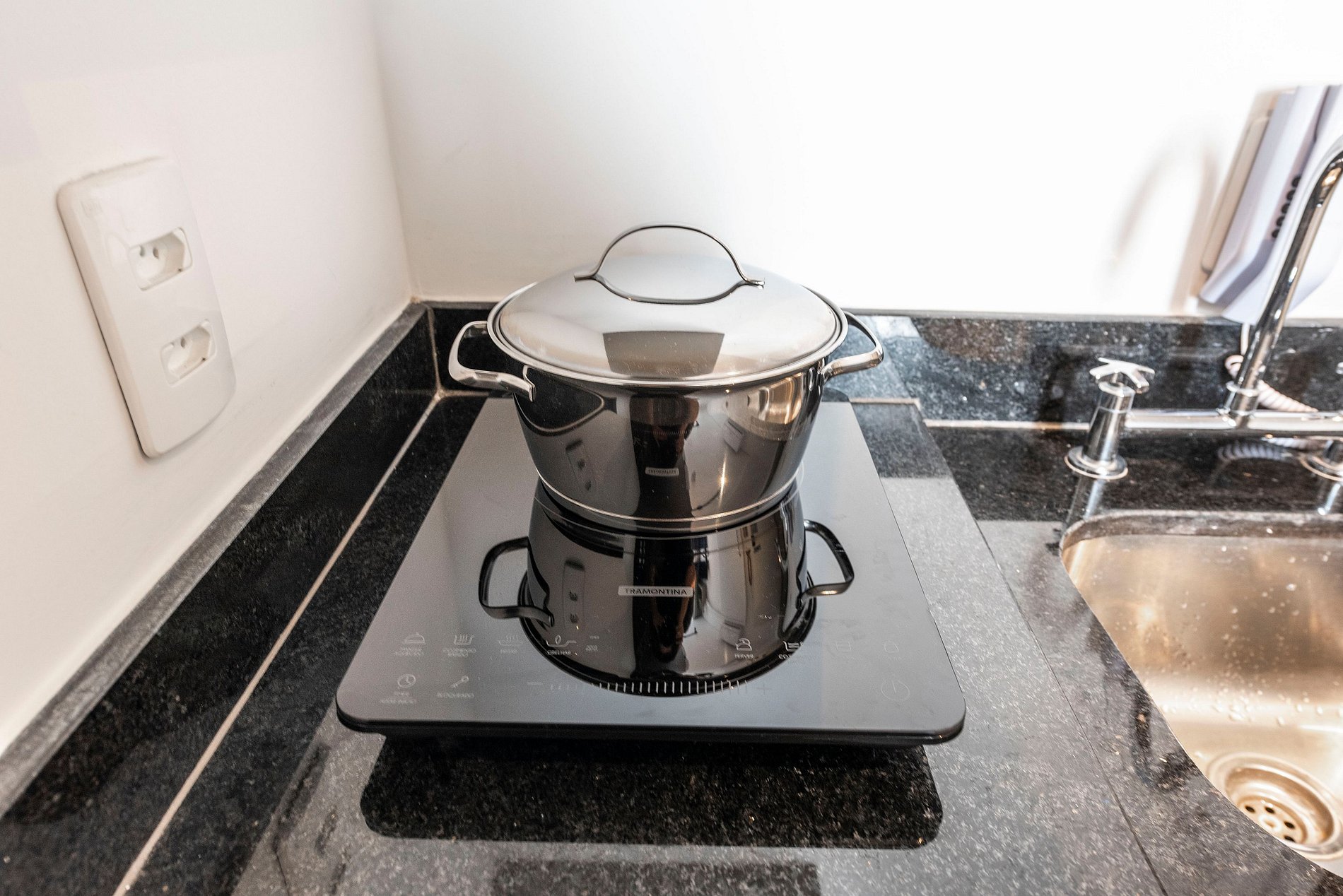 ・Cozinha completa: equipada com geladeira, fogão de indução, micro-ondas etc.