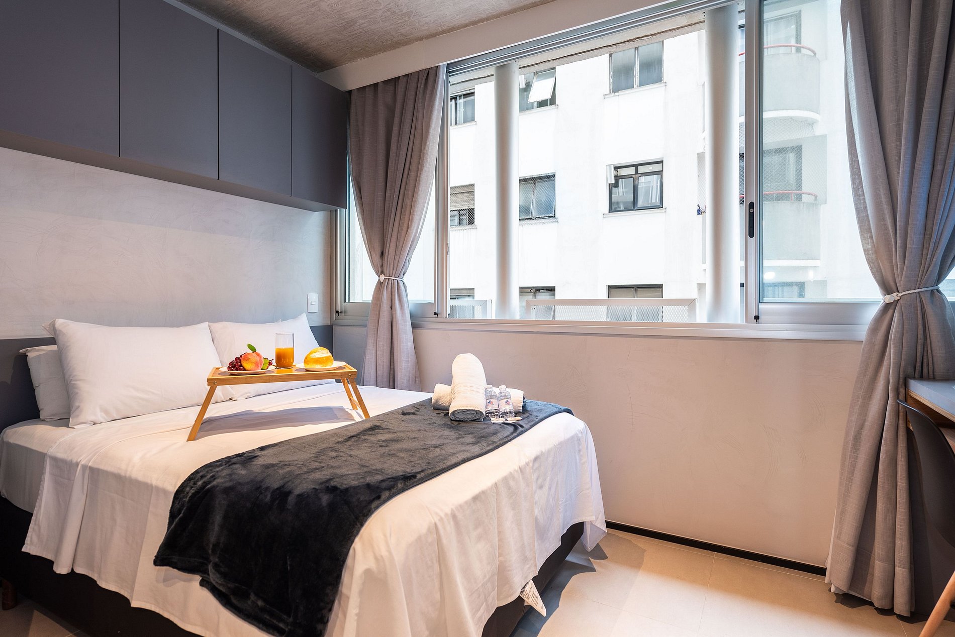 ATENÇÃO: O estúdio está equipado com ar-condicionado, que está operando normalmente no momento. Entretanto, é importante observar que devido a questões estruturais recorrentes no condomínio, pode haver interrupções em seu funcionamento. Essas ocorrências são comuns no prédio, e, infelizmente, quando ocorrem, não temos controle sobre a resolução imediata do problema.