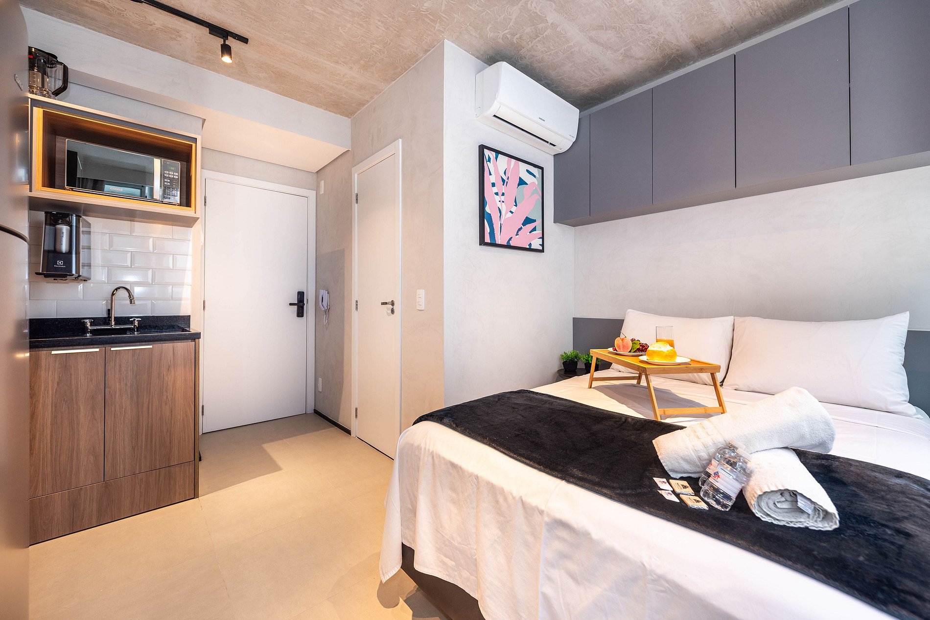 Desfrute da praticidade e do aconchego deste estúdio funcional, perfeito para duas pessoas. Equipado com tudo que você precisa para uma estadia tranquila, este espaço proporciona conforto e comodidade para uma experiência memorável.