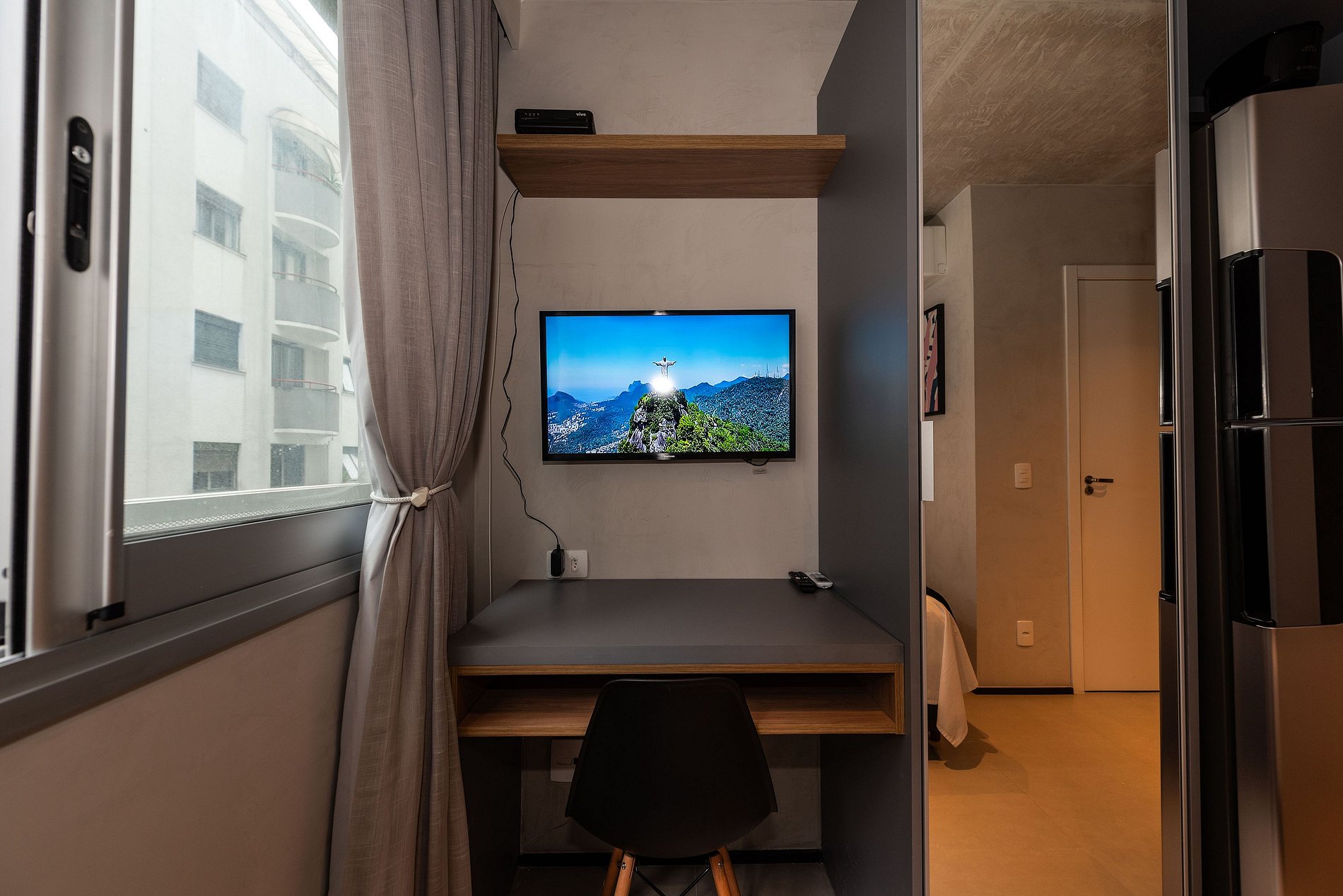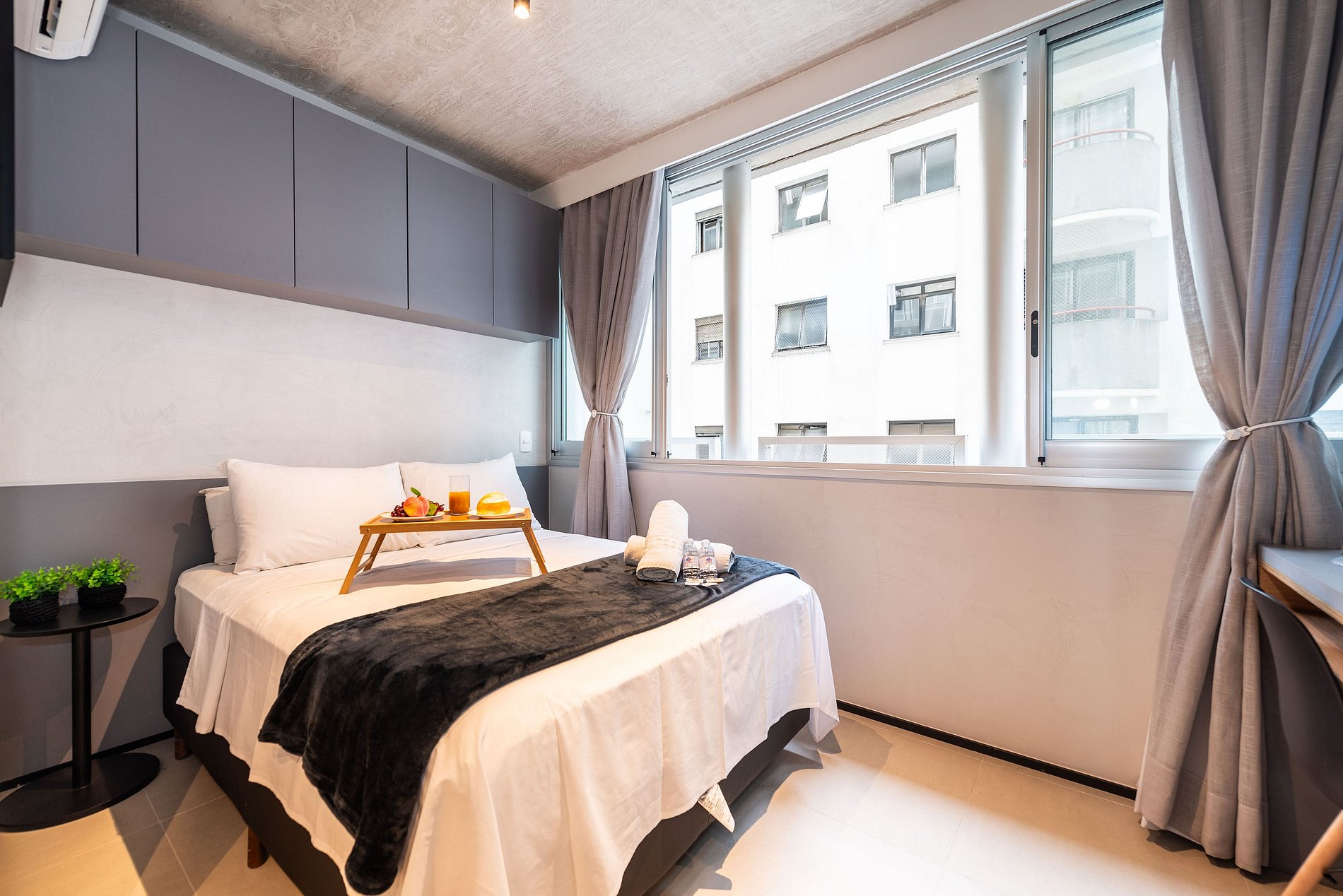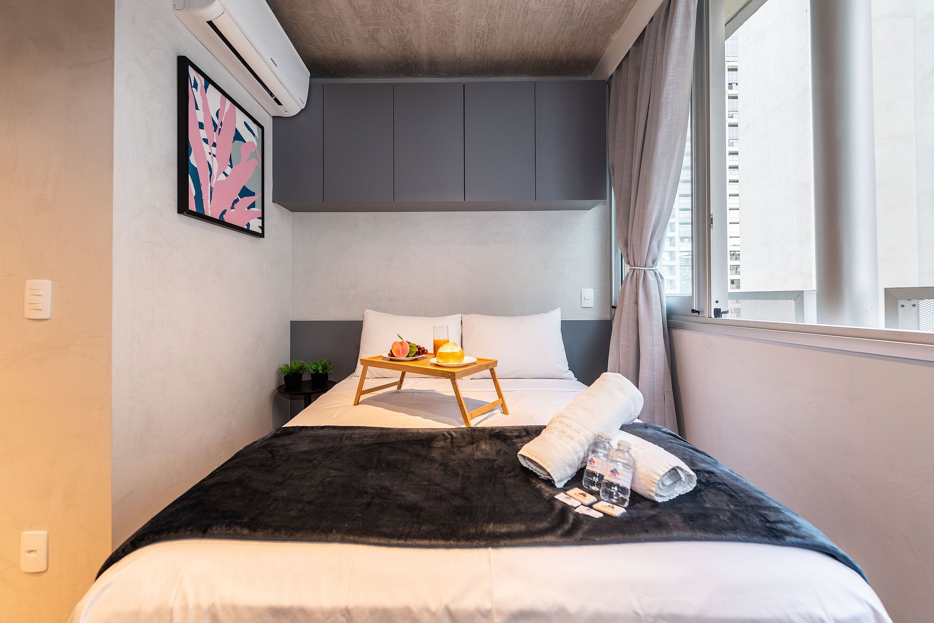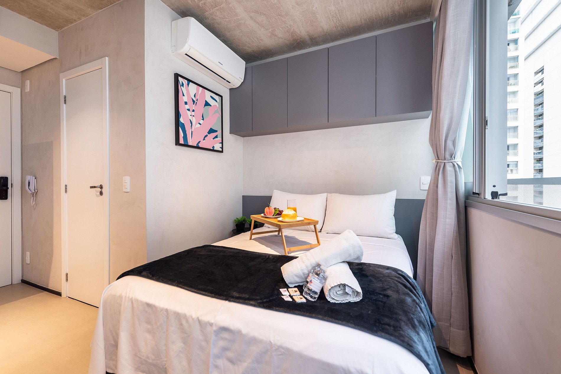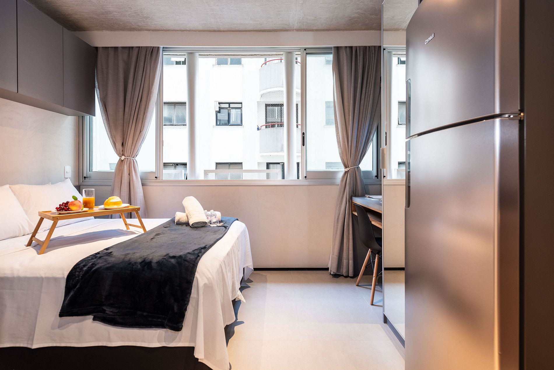 ATENÇÃO: O estúdio está equipado com ar-condicionado, que está operando normalmente no momento. Entretanto, é importante observar que devido a questões estruturais recorrentes no condomínio, pode haver interrupções em seu funcionamento. Essas ocorrências são comuns no prédio, e, infelizmente, quando ocorrem, não temos controle sobre a resolução imediata do problema.