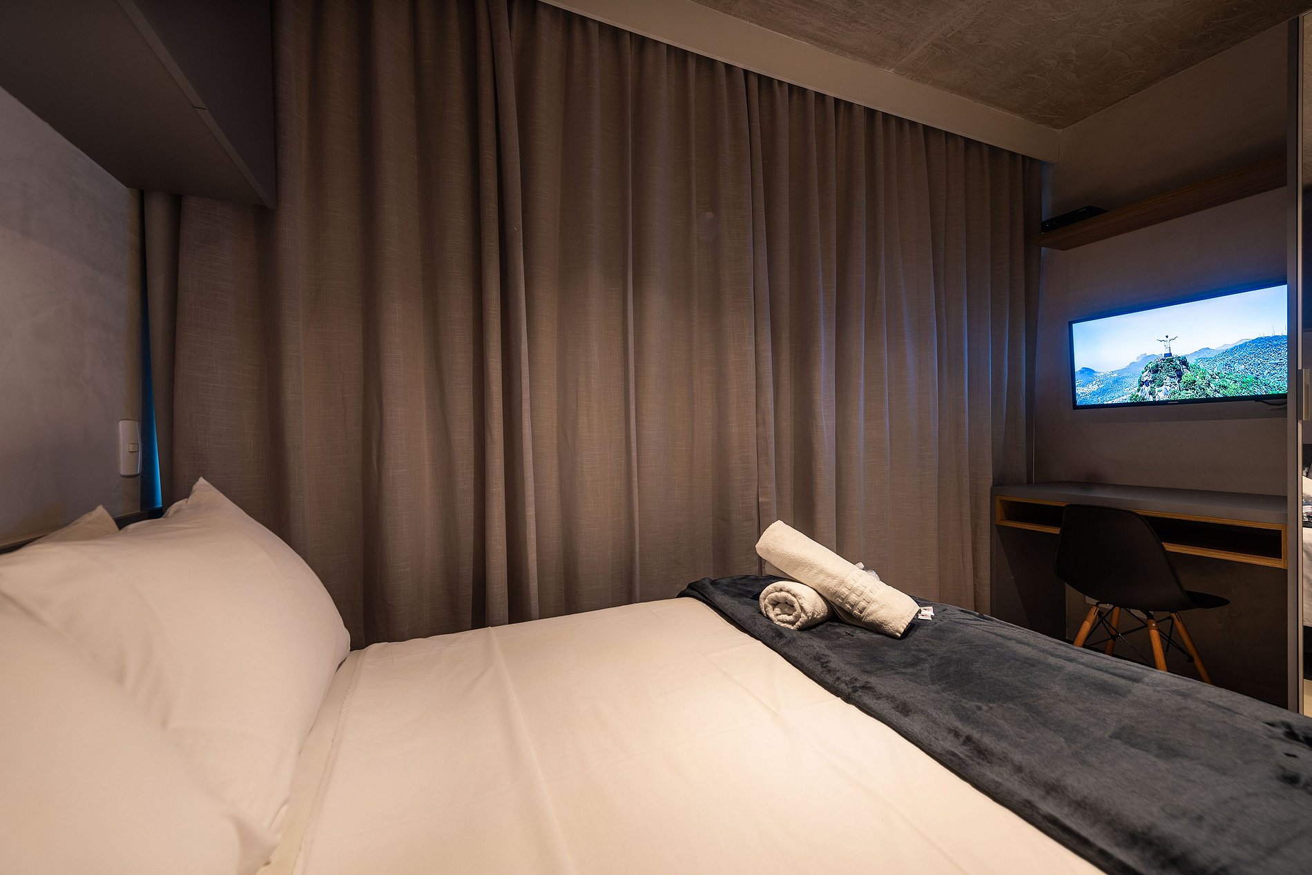 Desfrute da praticidade e do aconchego deste estúdio funcional, perfeito para duas pessoas. Equipado com tudo que você precisa para uma estadia tranquila, este espaço proporciona conforto e comodidade para uma experiência memorável.