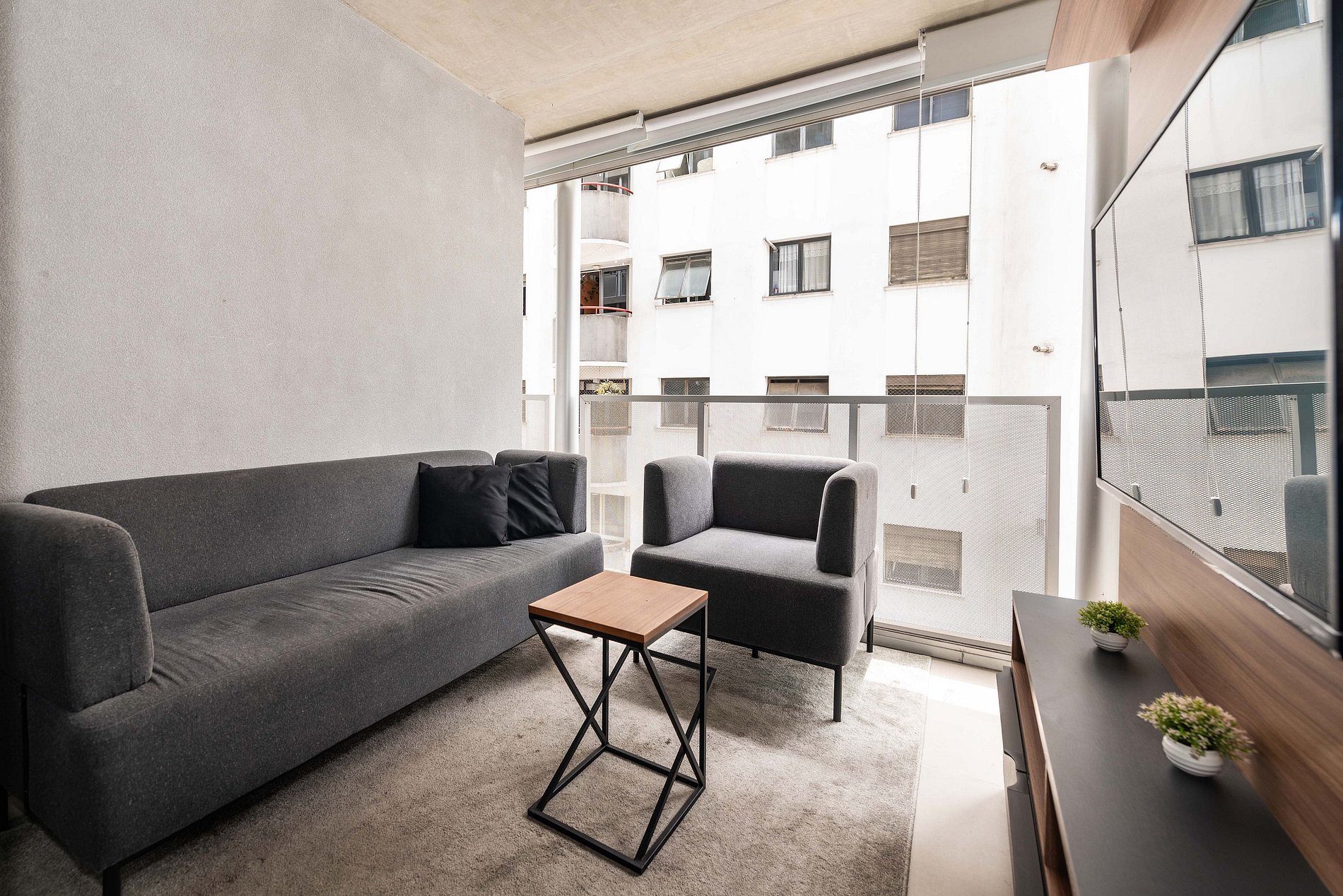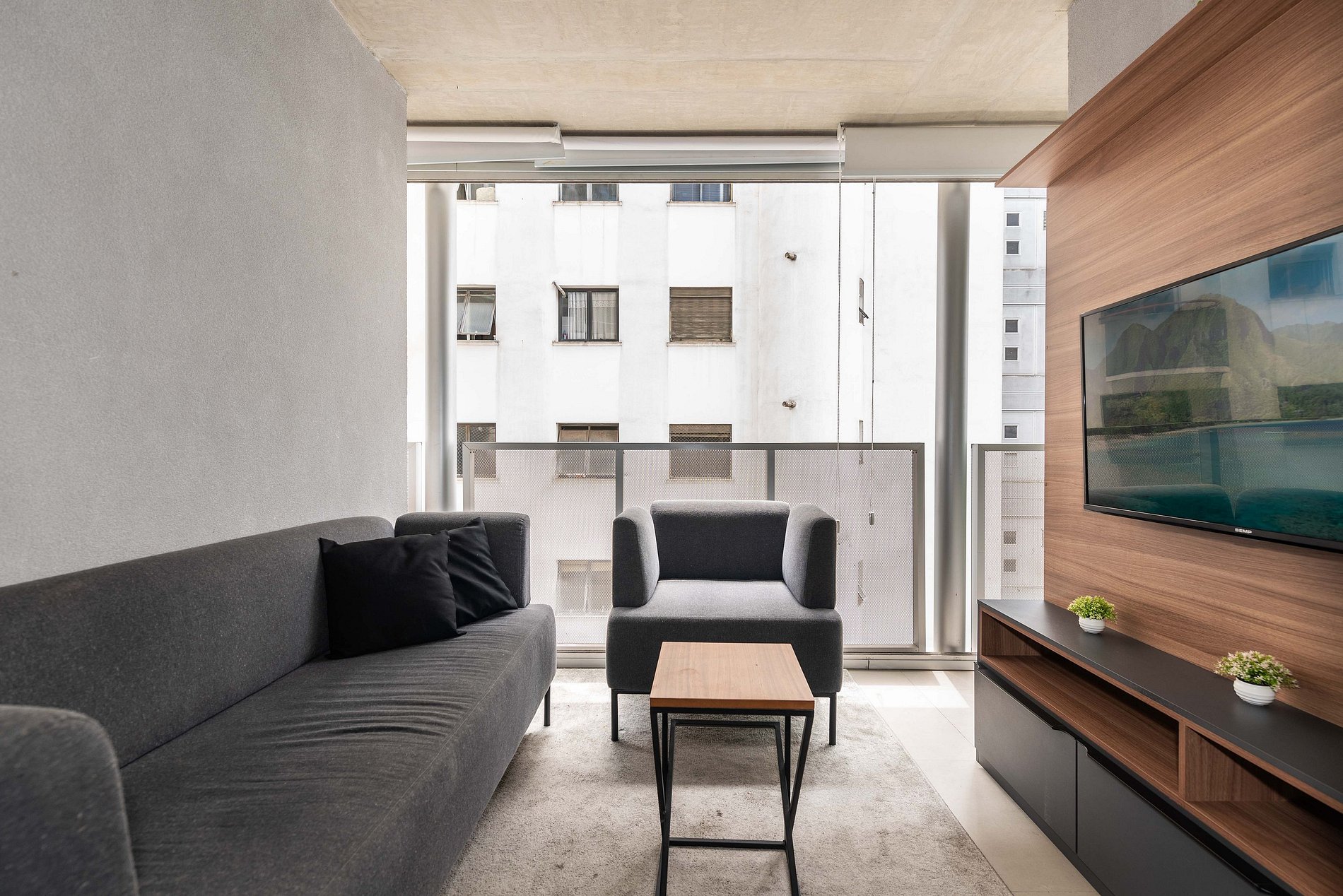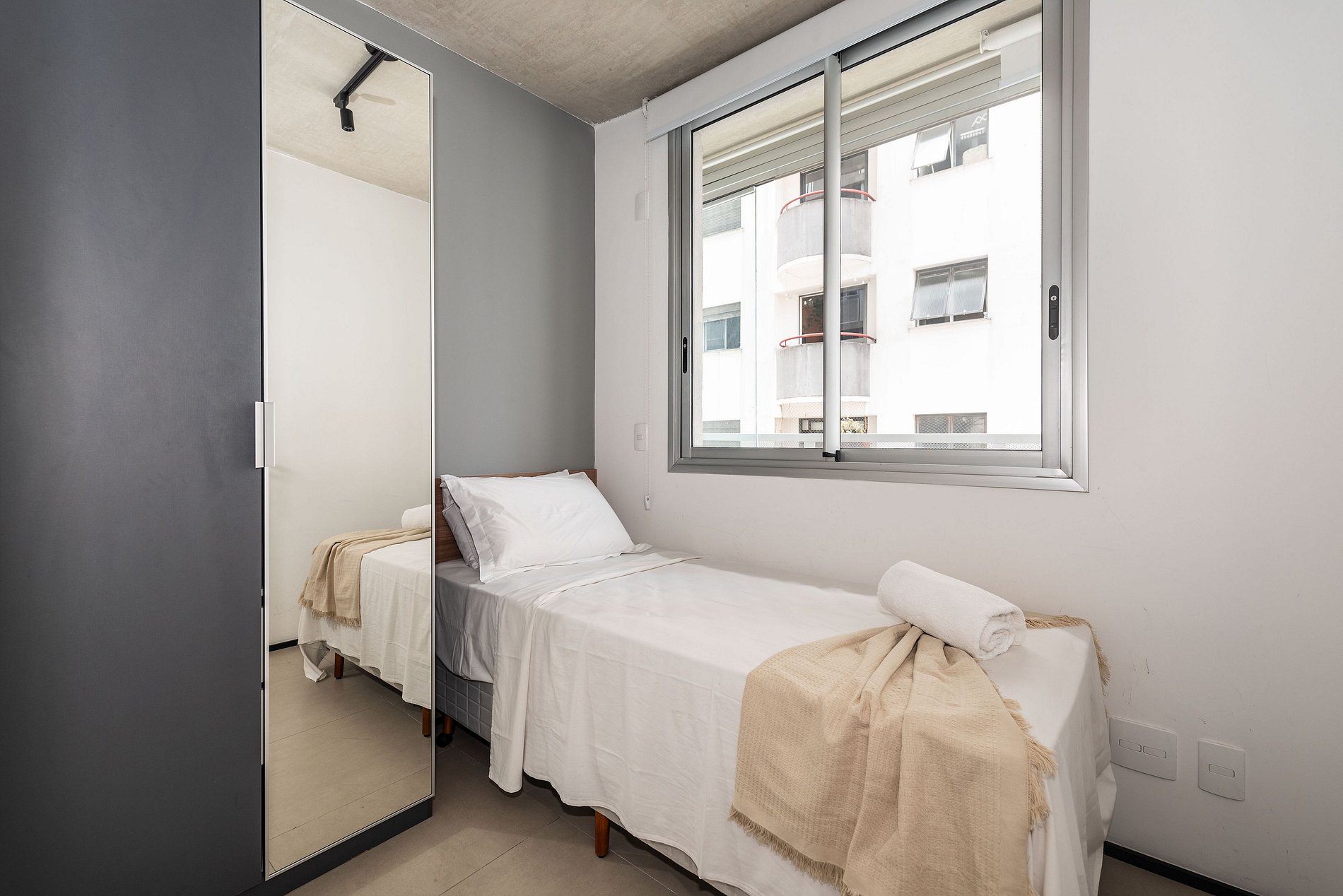 ATENÇÃO: O estúdio está equipado com ar-condicionado, que está operando normalmente no momento. Entretanto, é importante observar que devido a questões estruturais recorrentes no condomínio, pode haver interrupções em seu funcionamento. Essas ocorrências são comuns no prédio, e, infelizmente, quando ocorrem, não temos controle sobre a resolução imediata do problema.