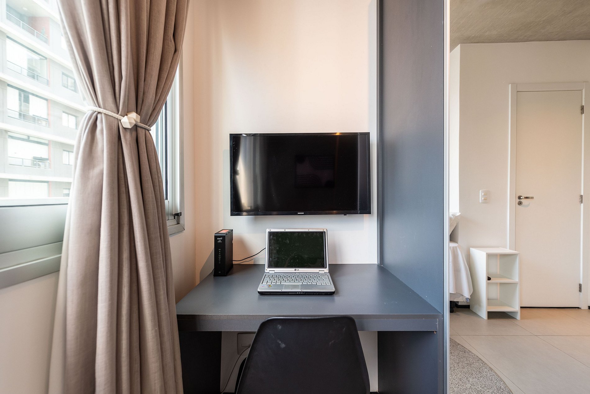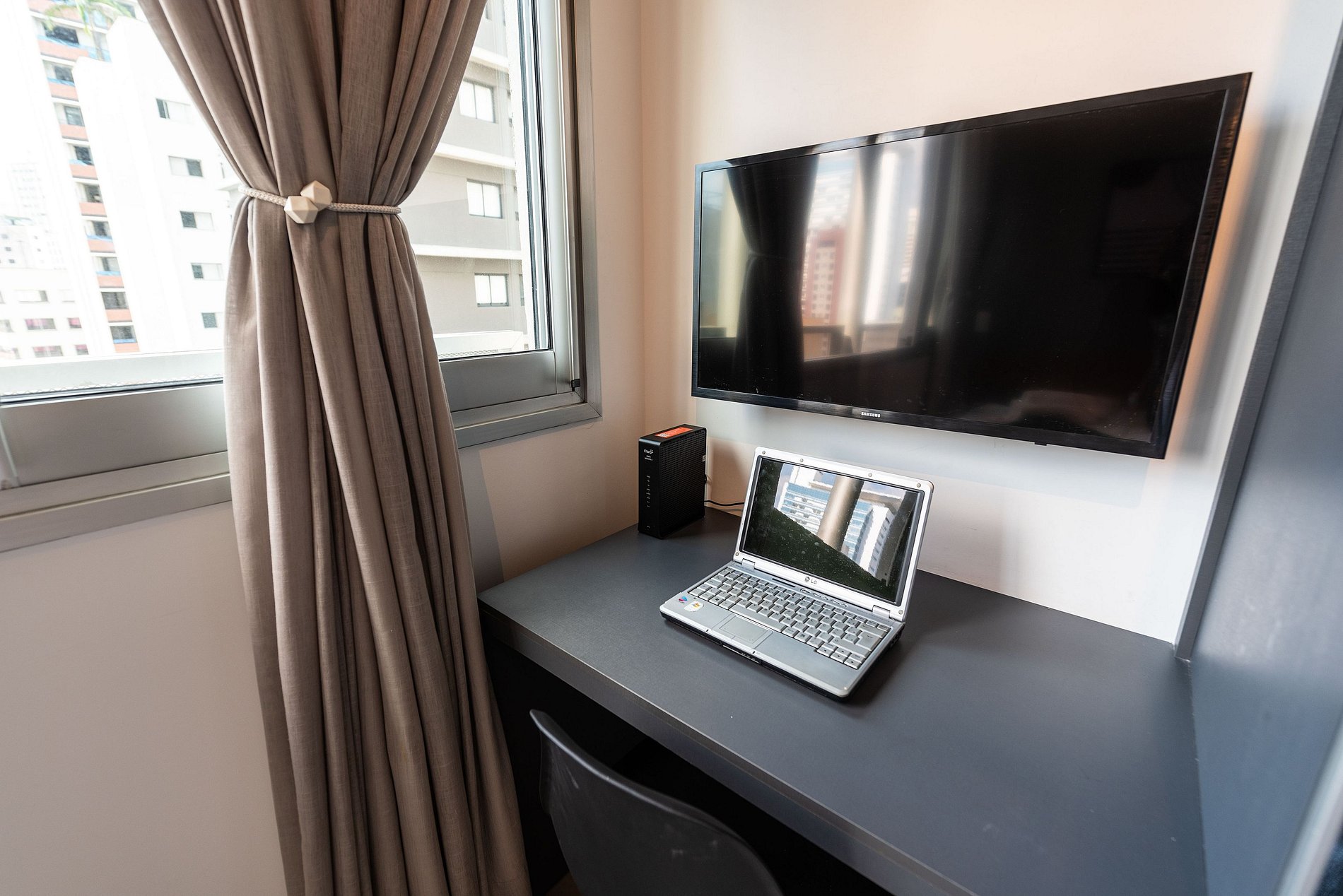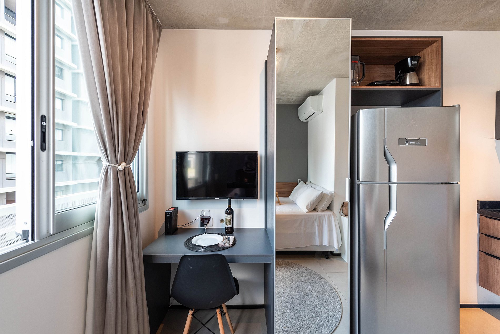 ATENÇÃO: O estúdio está equipado com ar-condicionado, que está operando normalmente no momento. Entretanto, é importante observar que devido a questões estruturais recorrentes no condomínio, pode haver interrupções em seu funcionamento. Essas ocorrências são comuns no prédio, e, infelizmente, quando ocorrem, não temos controle sobre a resolução imediata do problema.