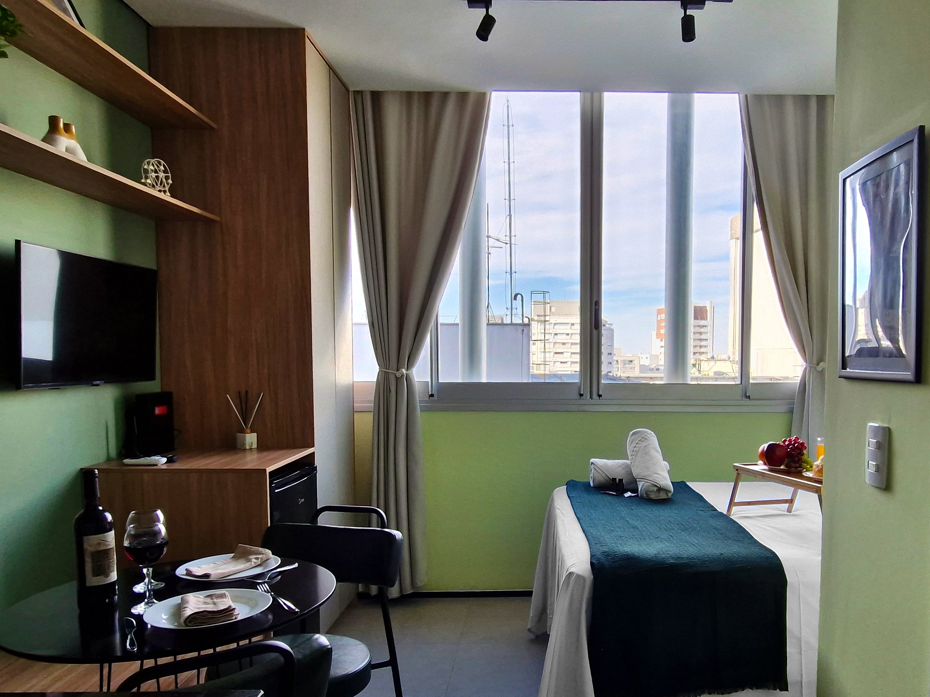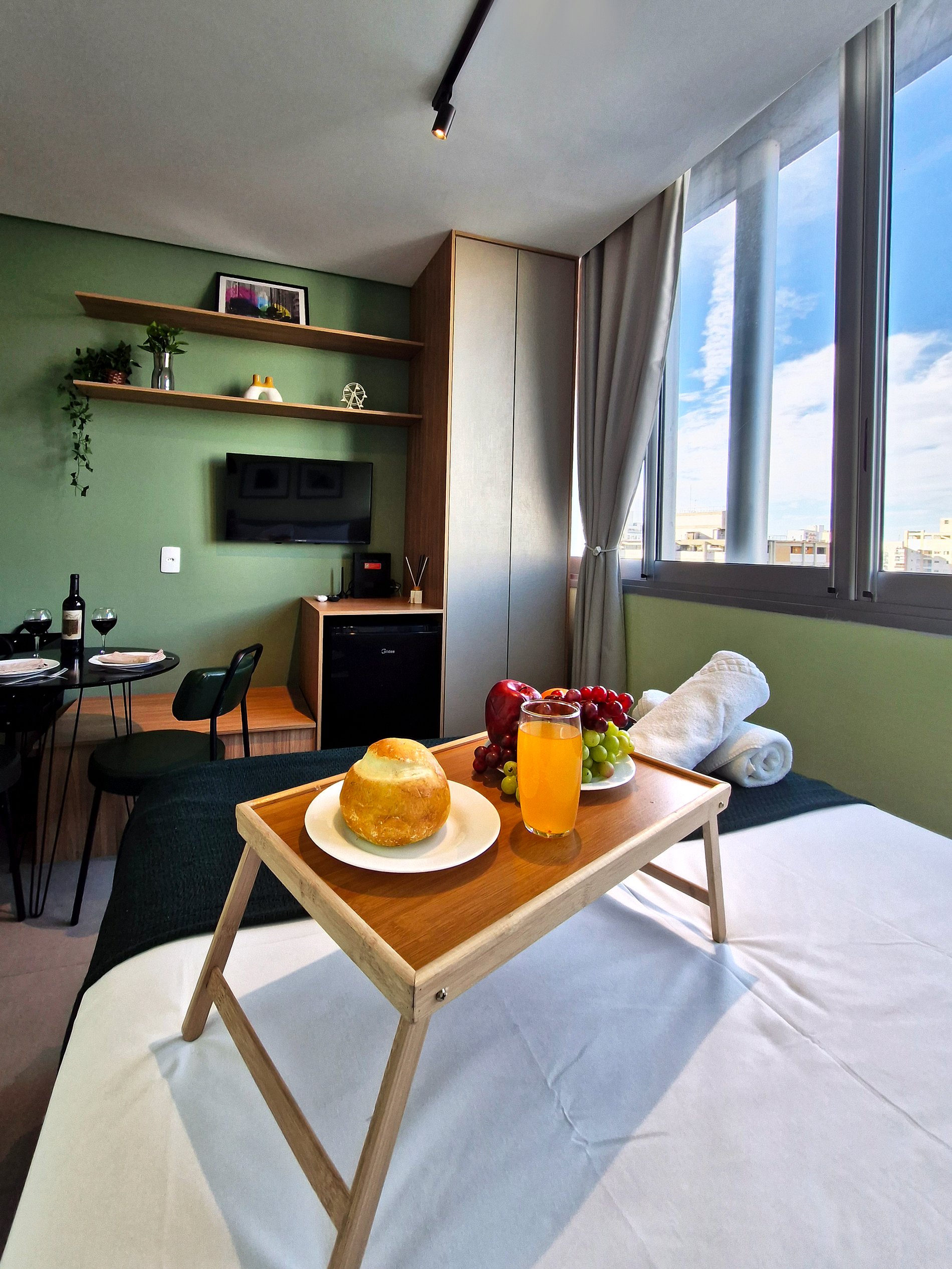 "Desfrute da praticidade e do aconchego deste estúdio funcional, perfeito para duas pessoas. Equipado com tudo que você precisa para uma estadia tranquila, este espaço proporciona conforto e comodidade para uma experiência memorável."