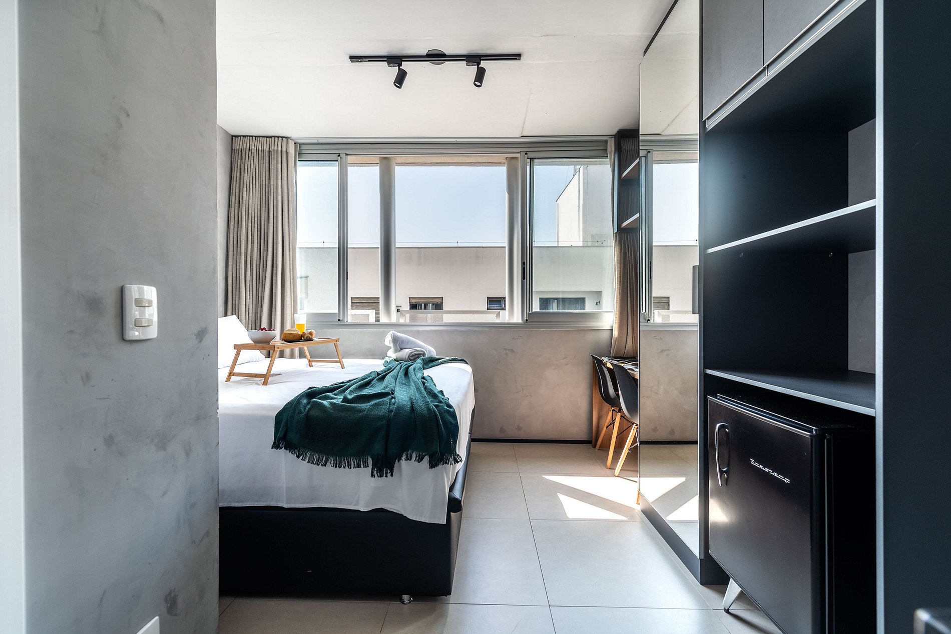 Desfrute da praticidade e do aconchego deste estúdio funcional, perfeito para duas pessoas. Equipado com tudo que você precisa para uma estadia tranquila, este espaço proporciona conforto e comodidade para uma experiência memorável.