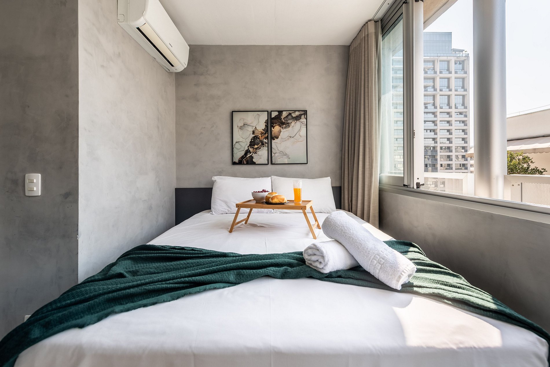 ATENÇÃO: O estúdio está equipado com ar-condicionado, que está operando normalmente no momento. Entretanto, é importante observar que devido a questões estruturais recorrentes no condomínio, pode haver interrupções em seu funcionamento. Essas ocorrências são comuns no prédio, e, infelizmente, quando ocorrem, não temos controle sobre a resolução imediata do problema.