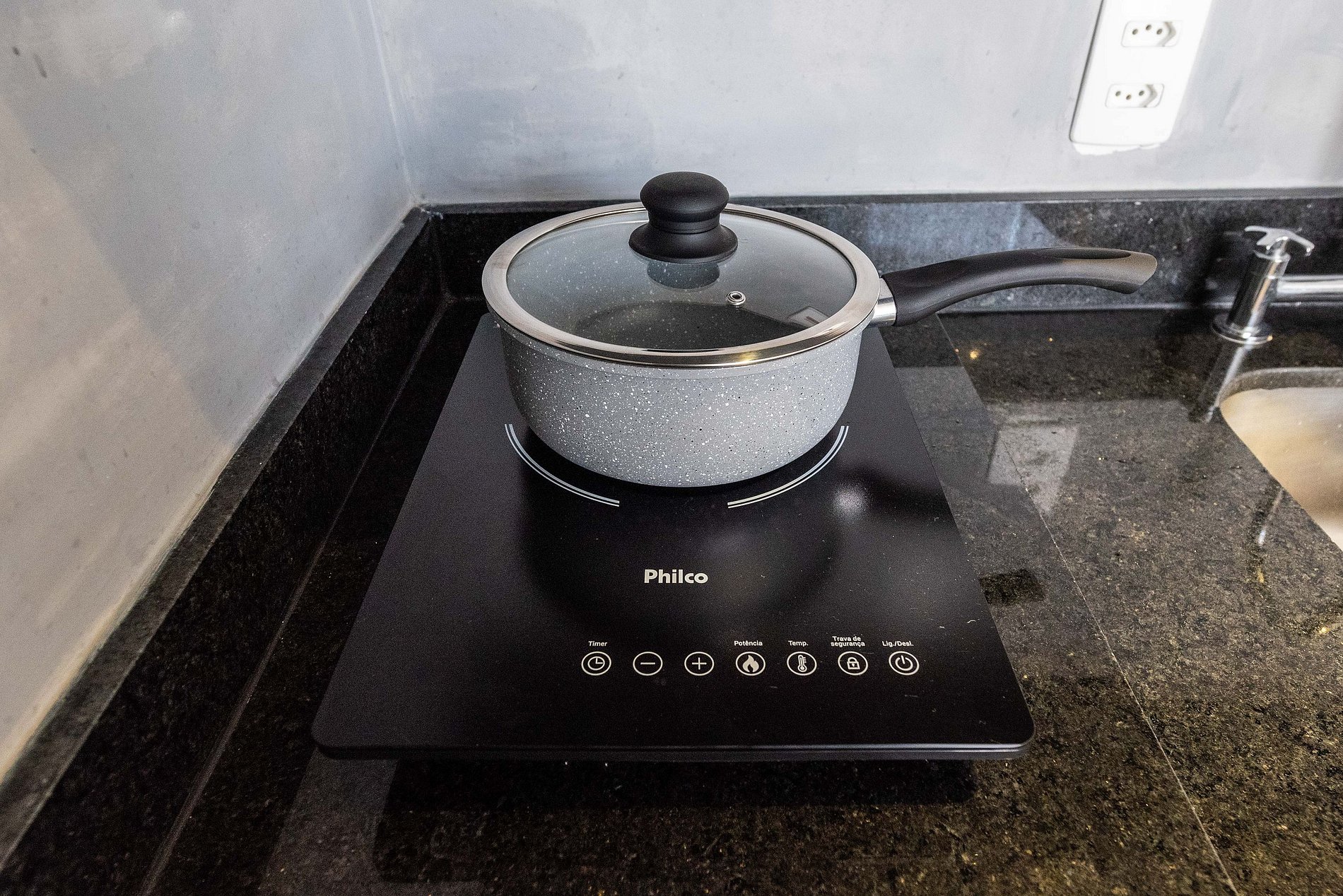 ・Cozinha completa: equipada com frigobar, fogão de indução, micro-ondas etc.