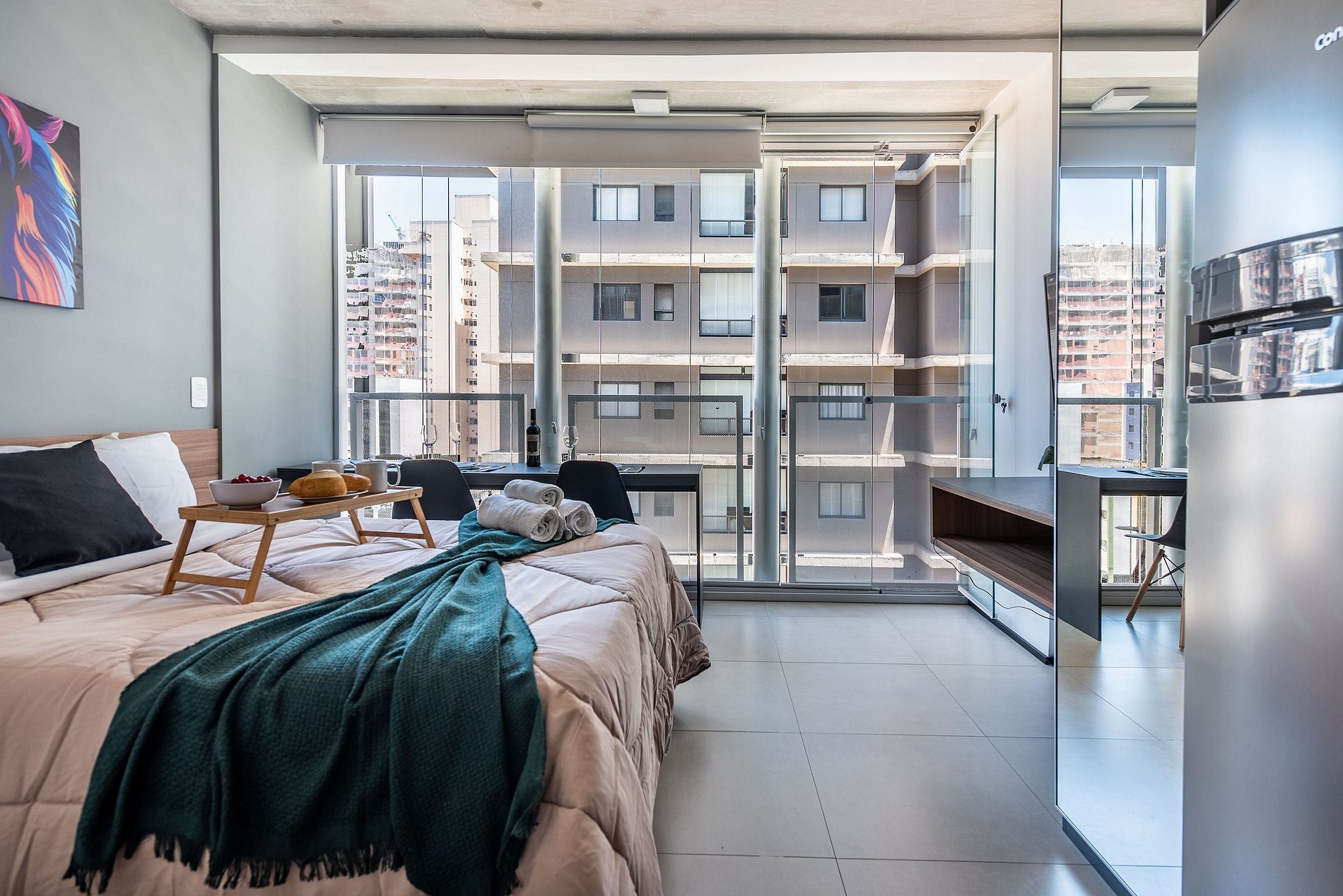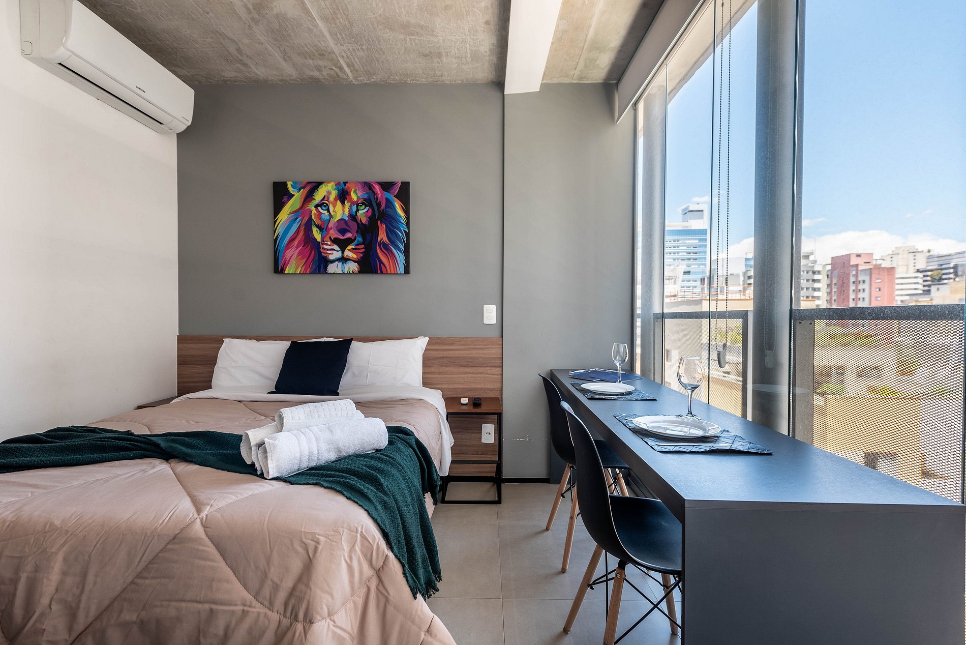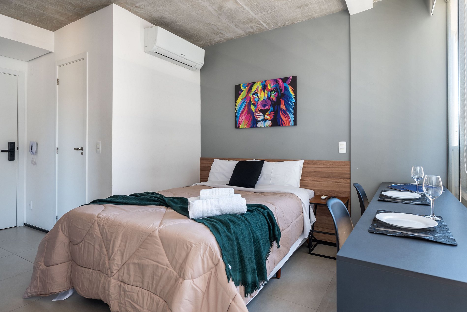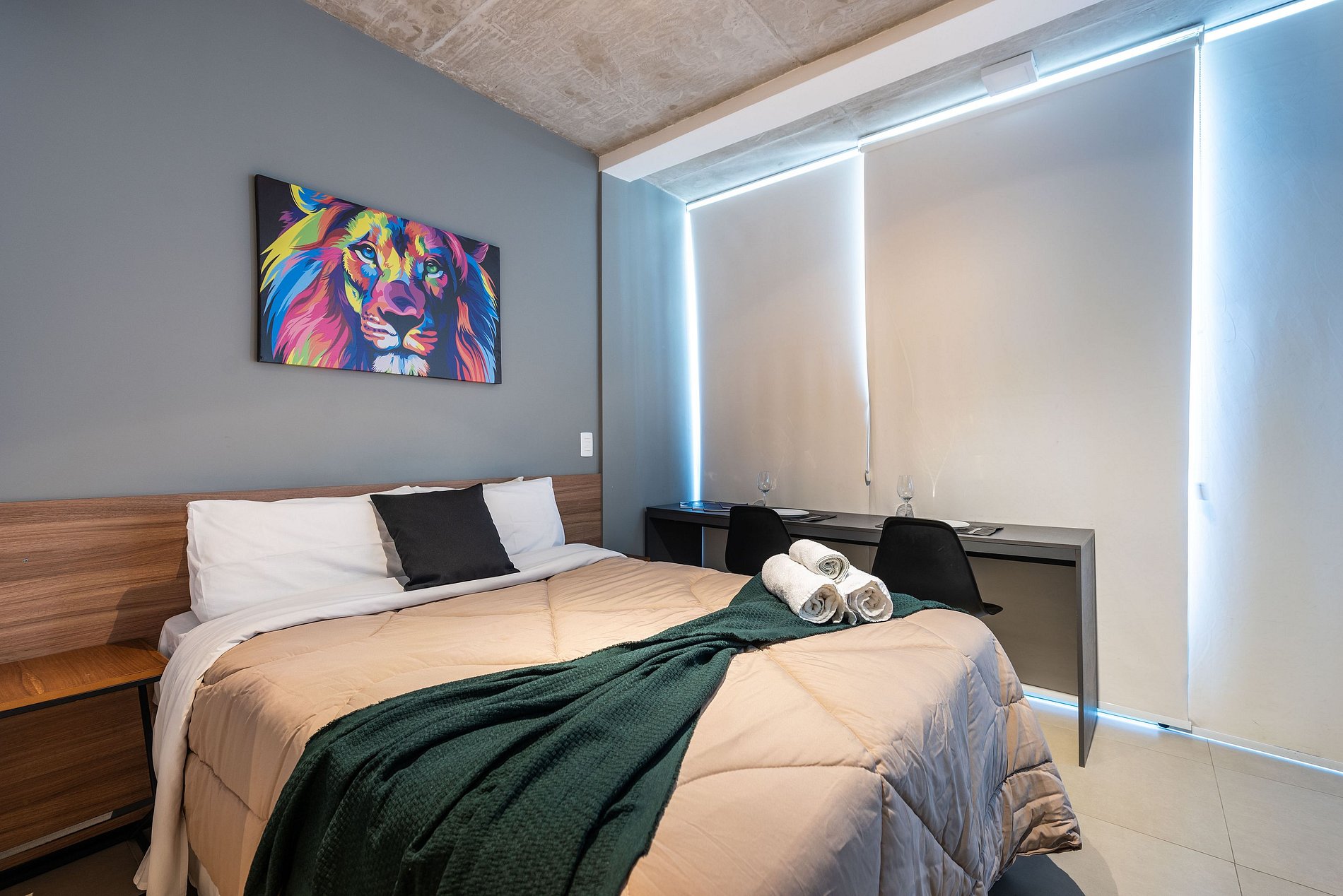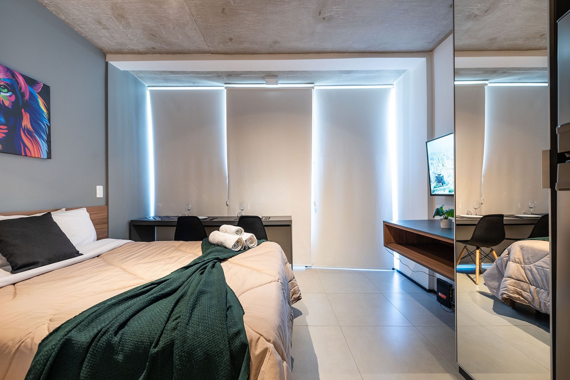 Desfrute da praticidade e do aconchego deste estúdio funcional, perfeito para duas pessoas. Equipado com tudo que você precisa para uma estadia tranquila, este espaço proporciona conforto e comodidade para uma experiência memorável.