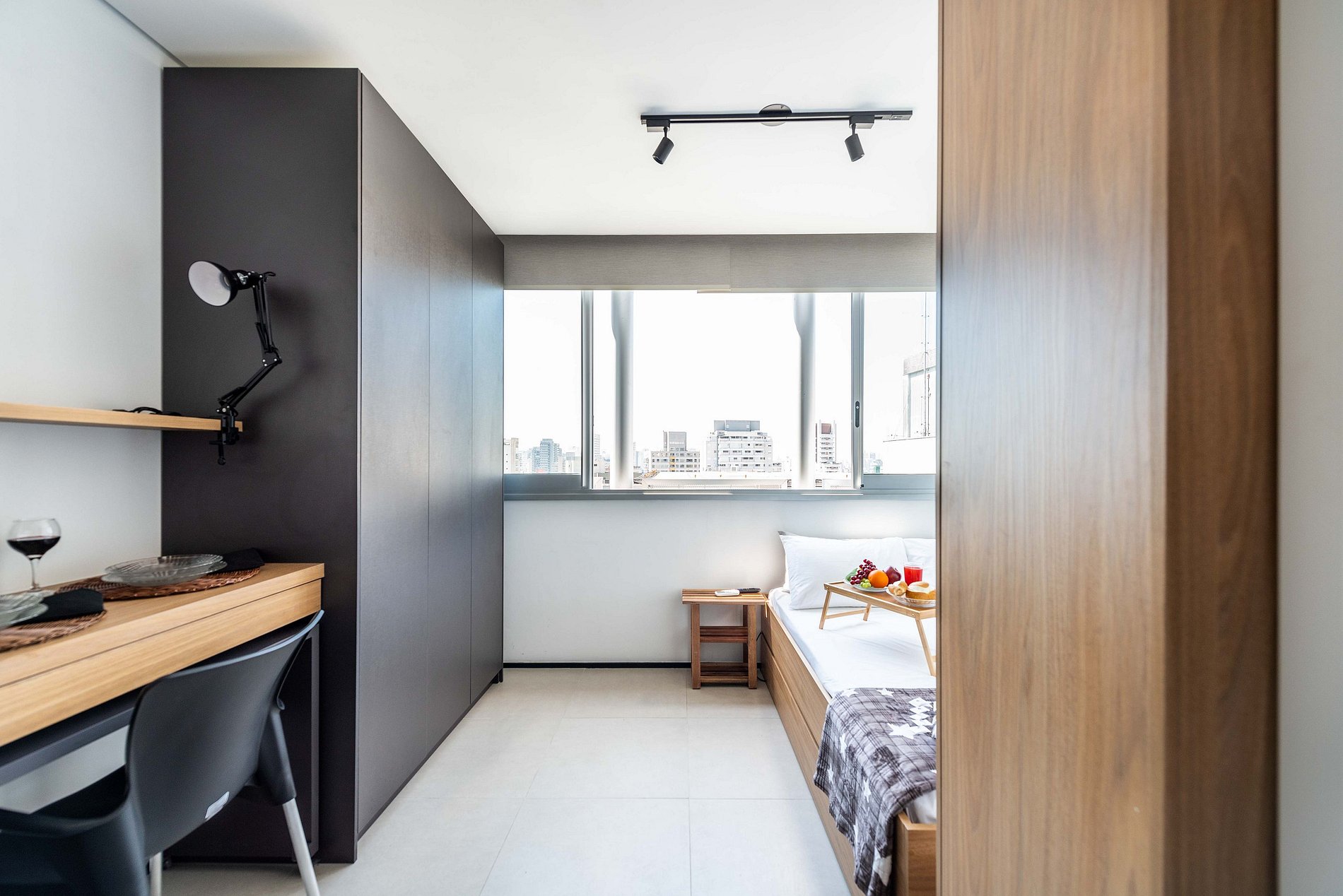 Desfrute da praticidade e do aconchego deste estúdio funcional para até três pessoas. Totalmente equipado e com atmosfera acolhedora, é o espaço ideal para uma estadia confortável e marcante.