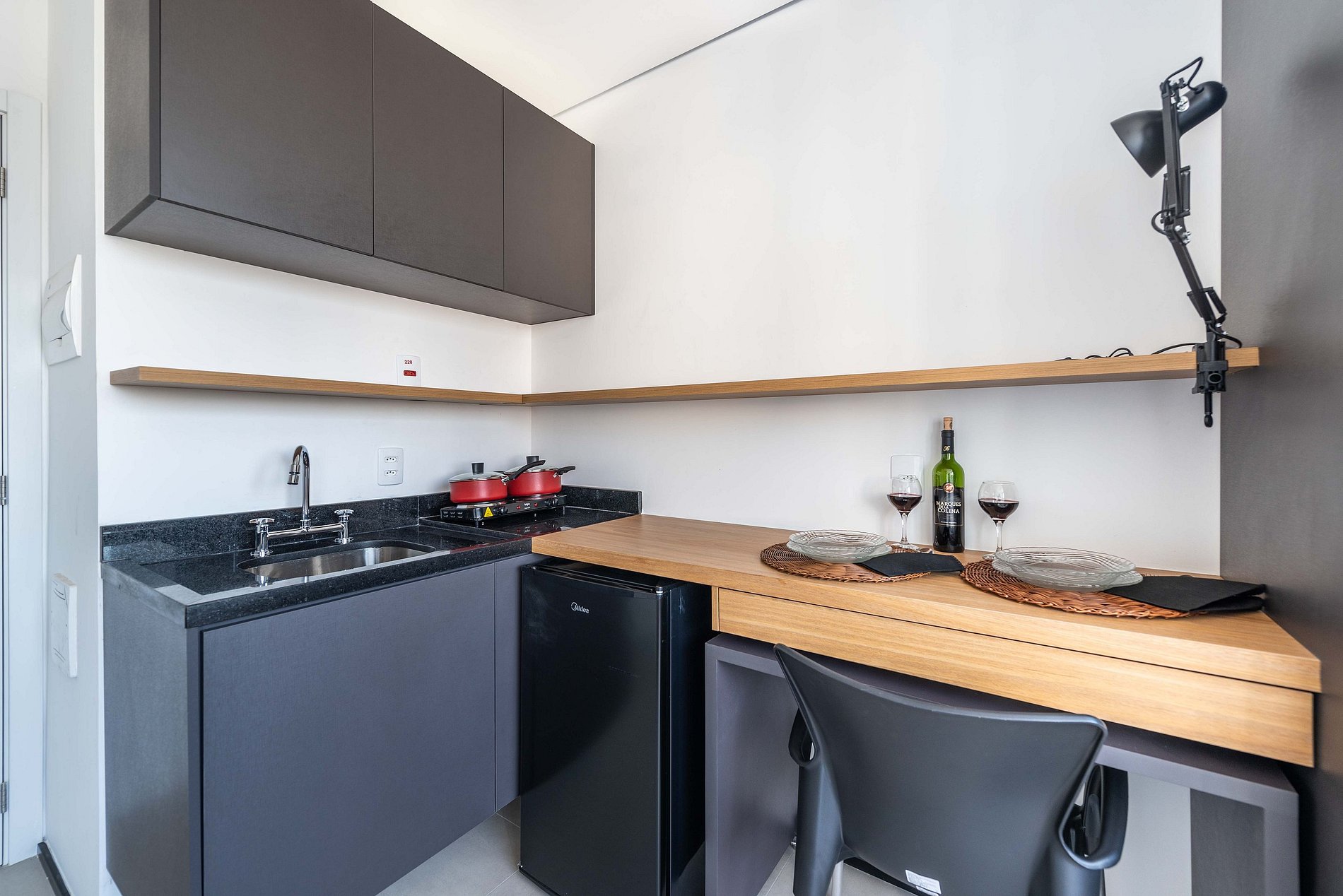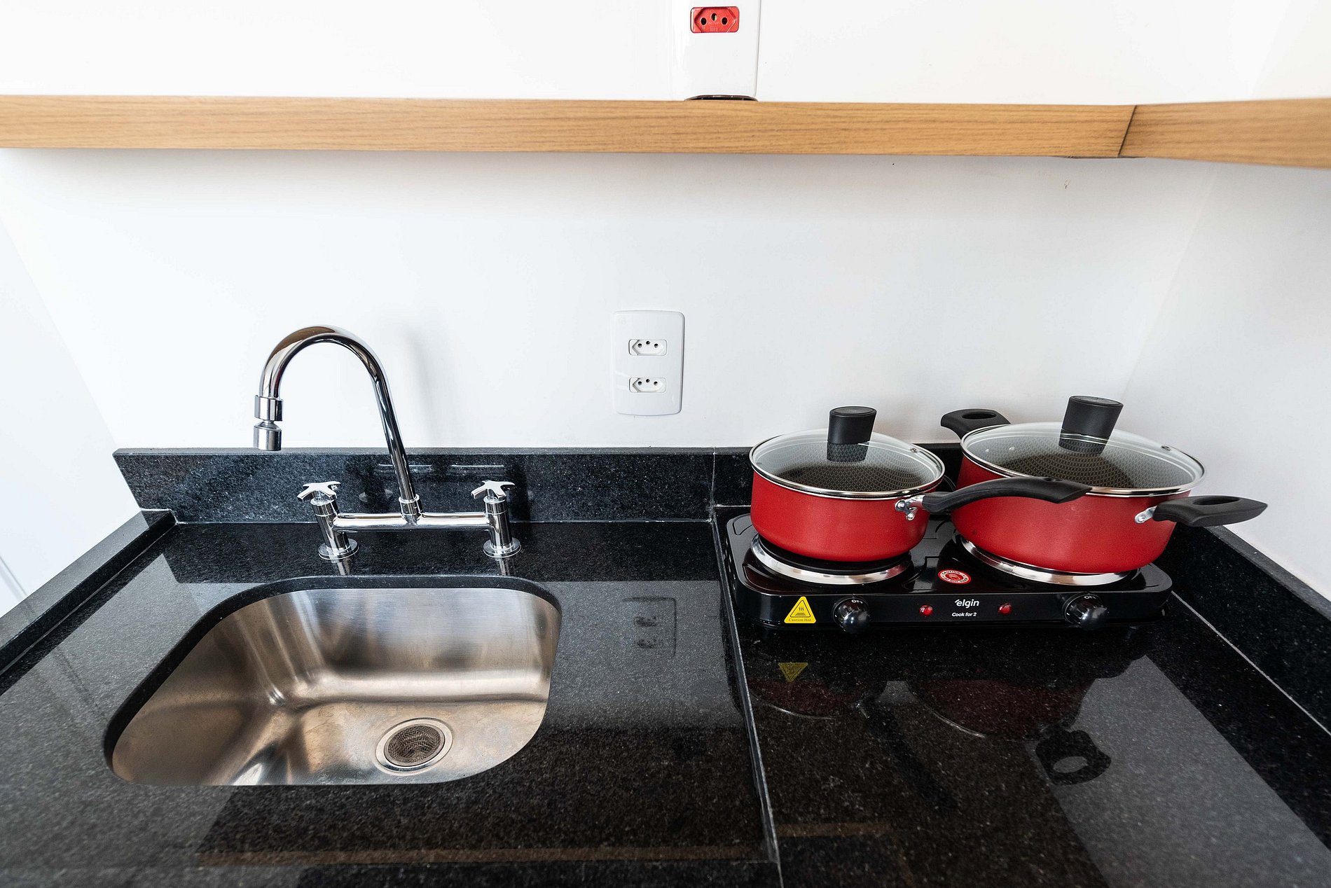 ・Cozinha completa: equipada com frigobar, fogão de indução etc.