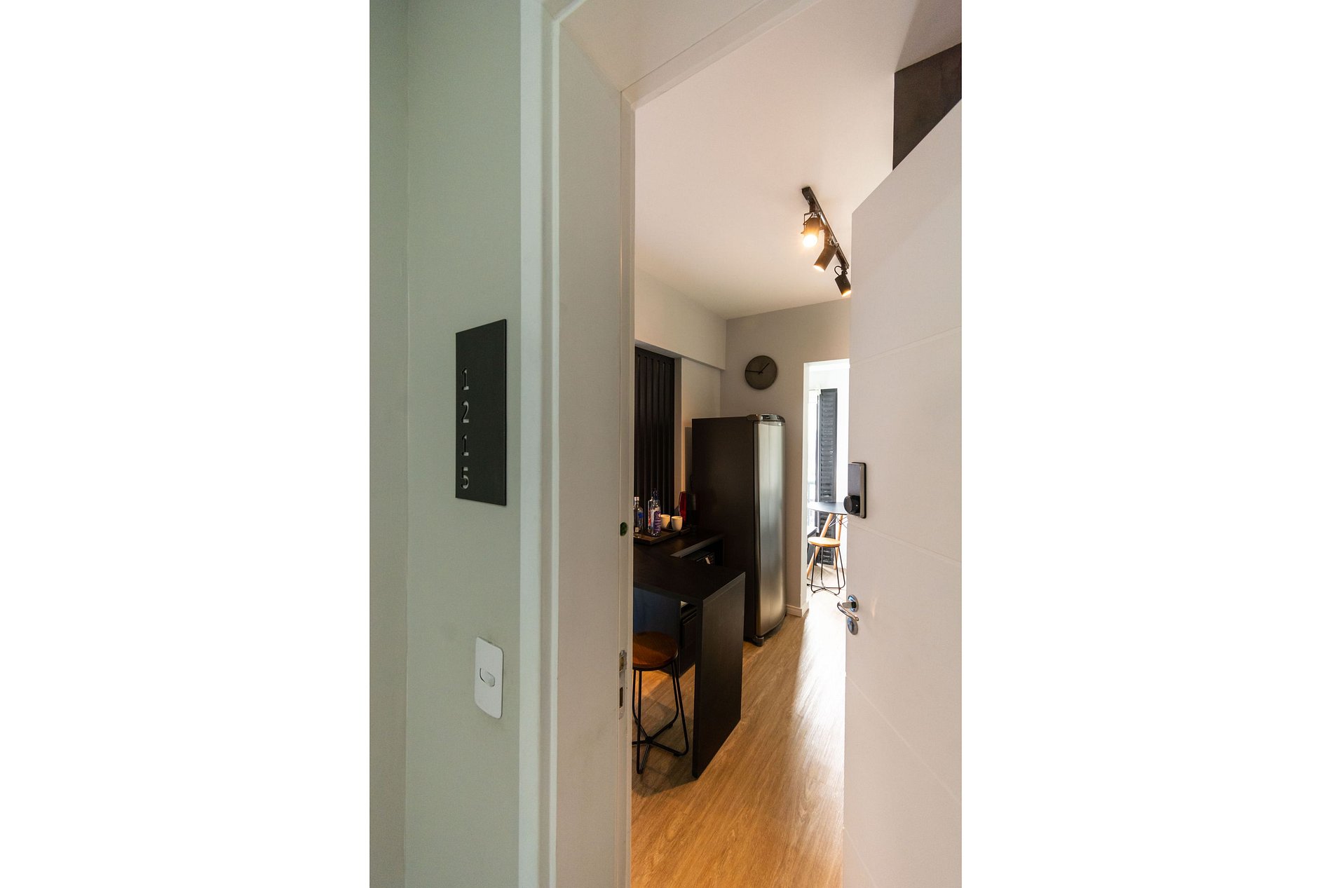 A entrada é realizada através de uma fechadura eletrônica, garantindo acesso total tanto ao apartamento quanto às comodidades do prédio.