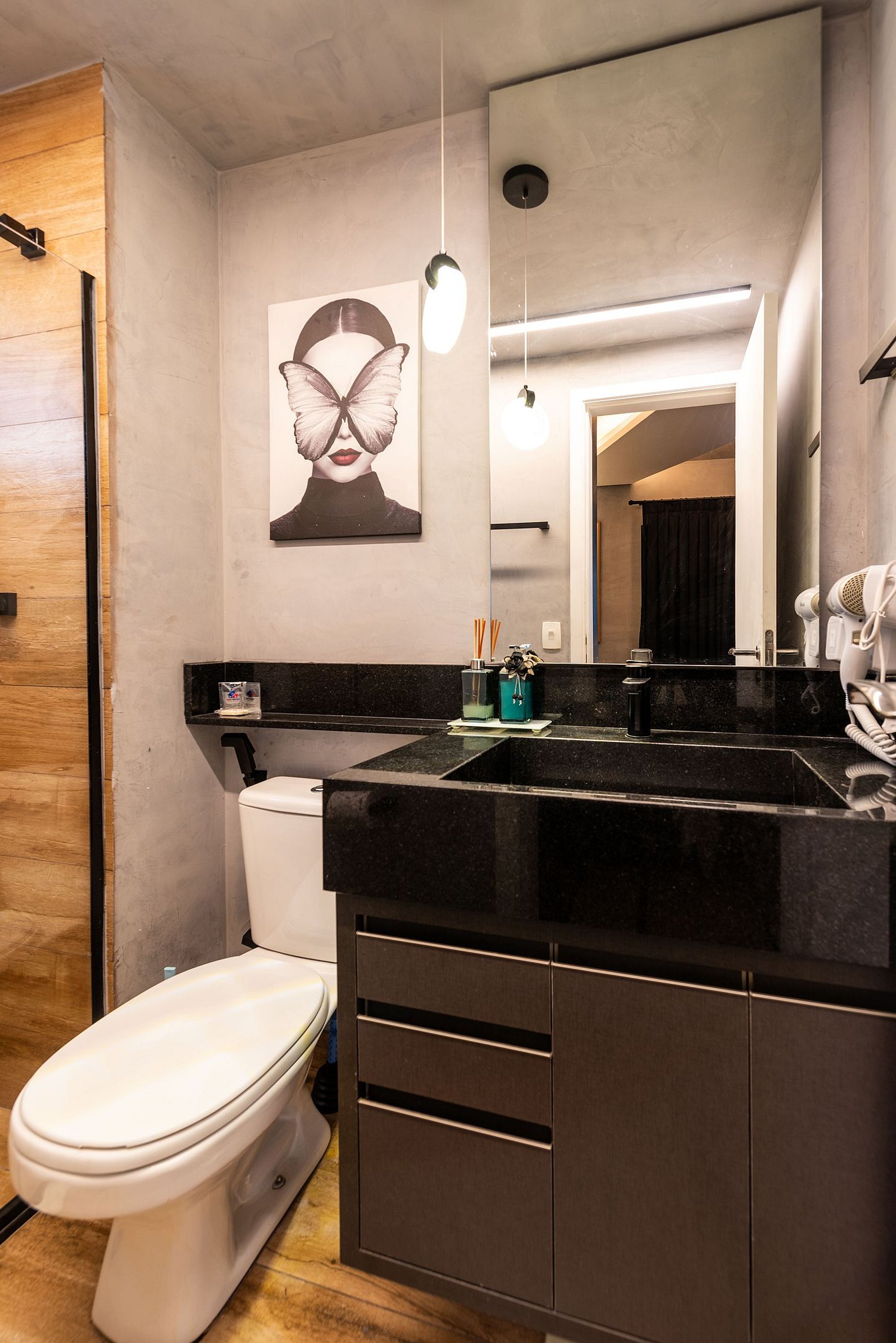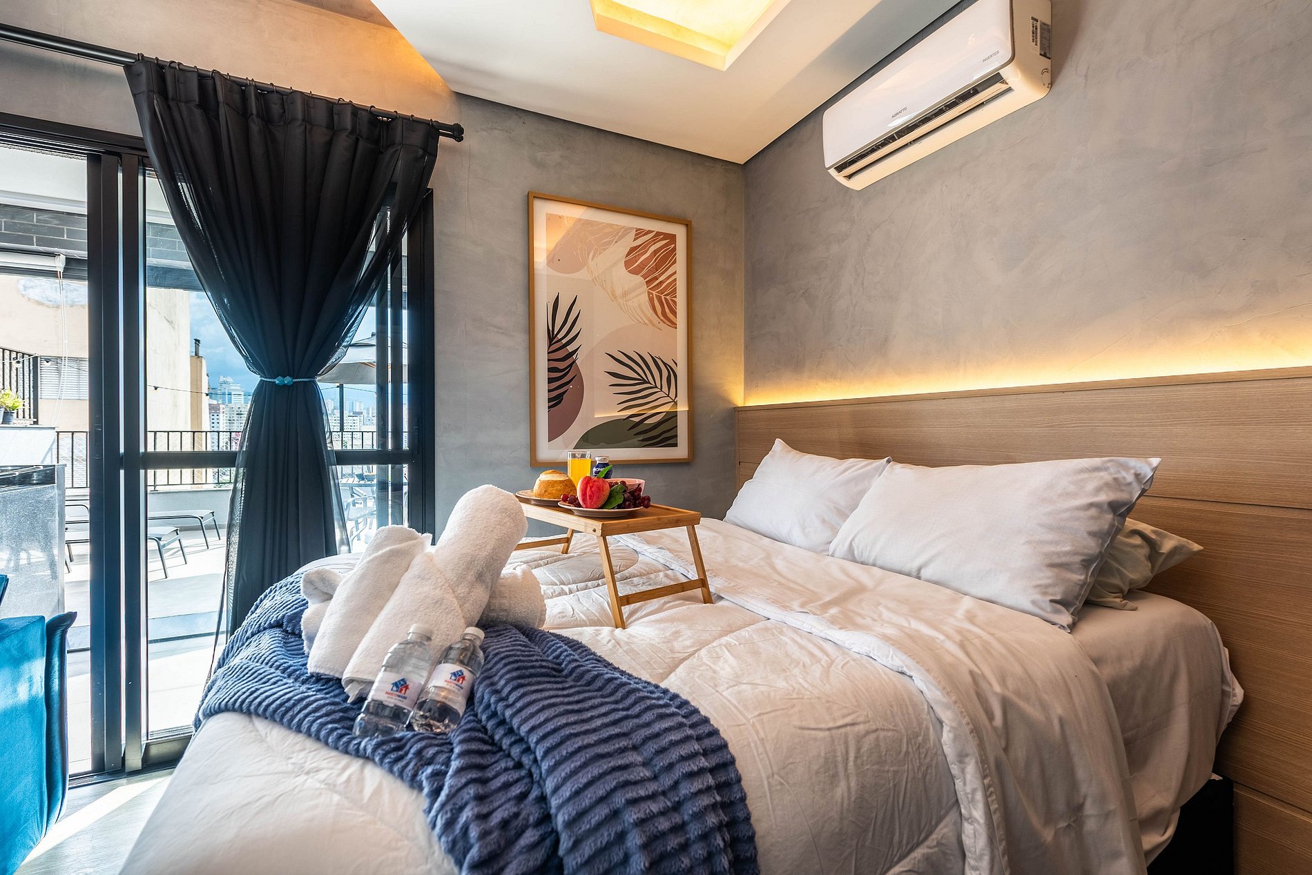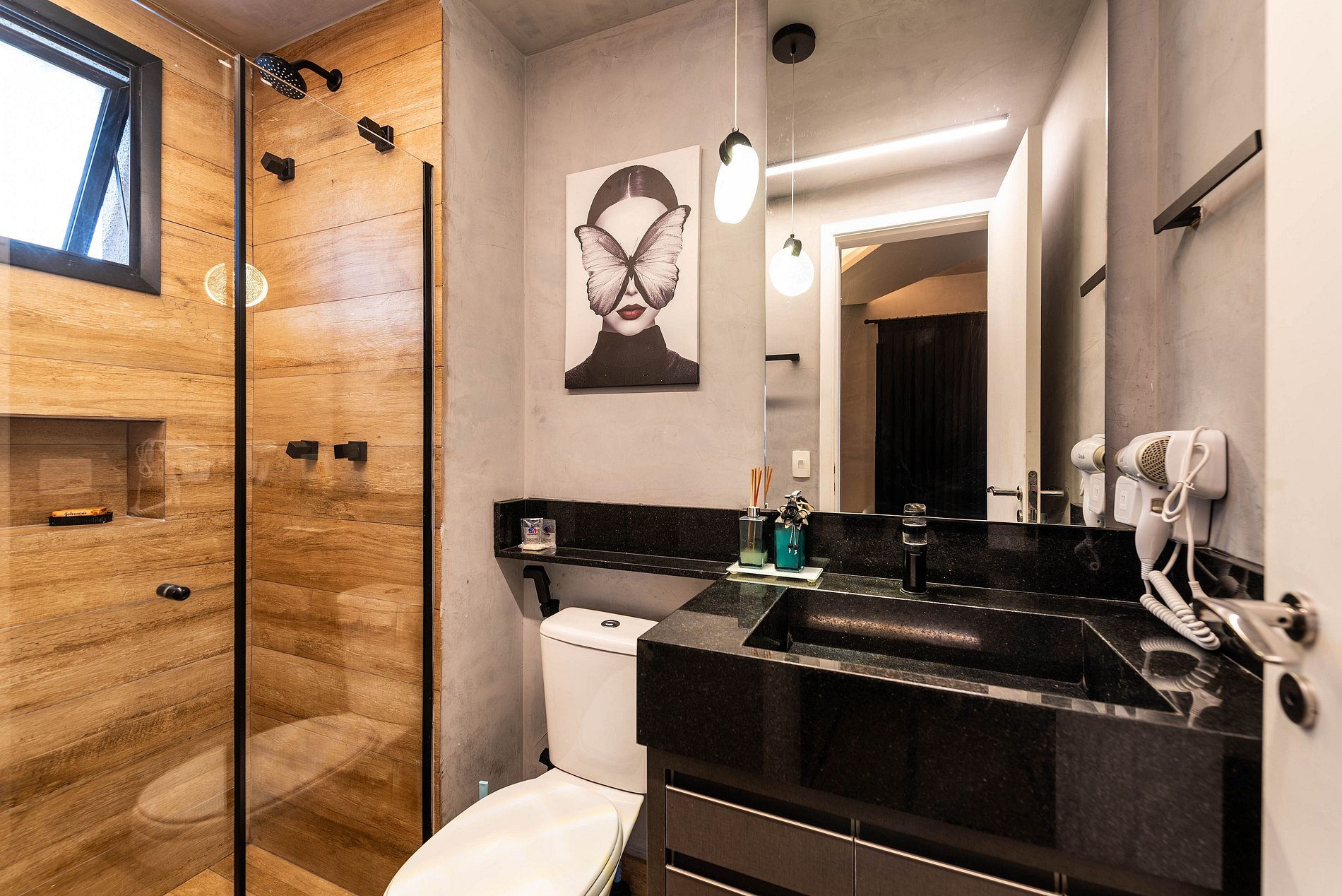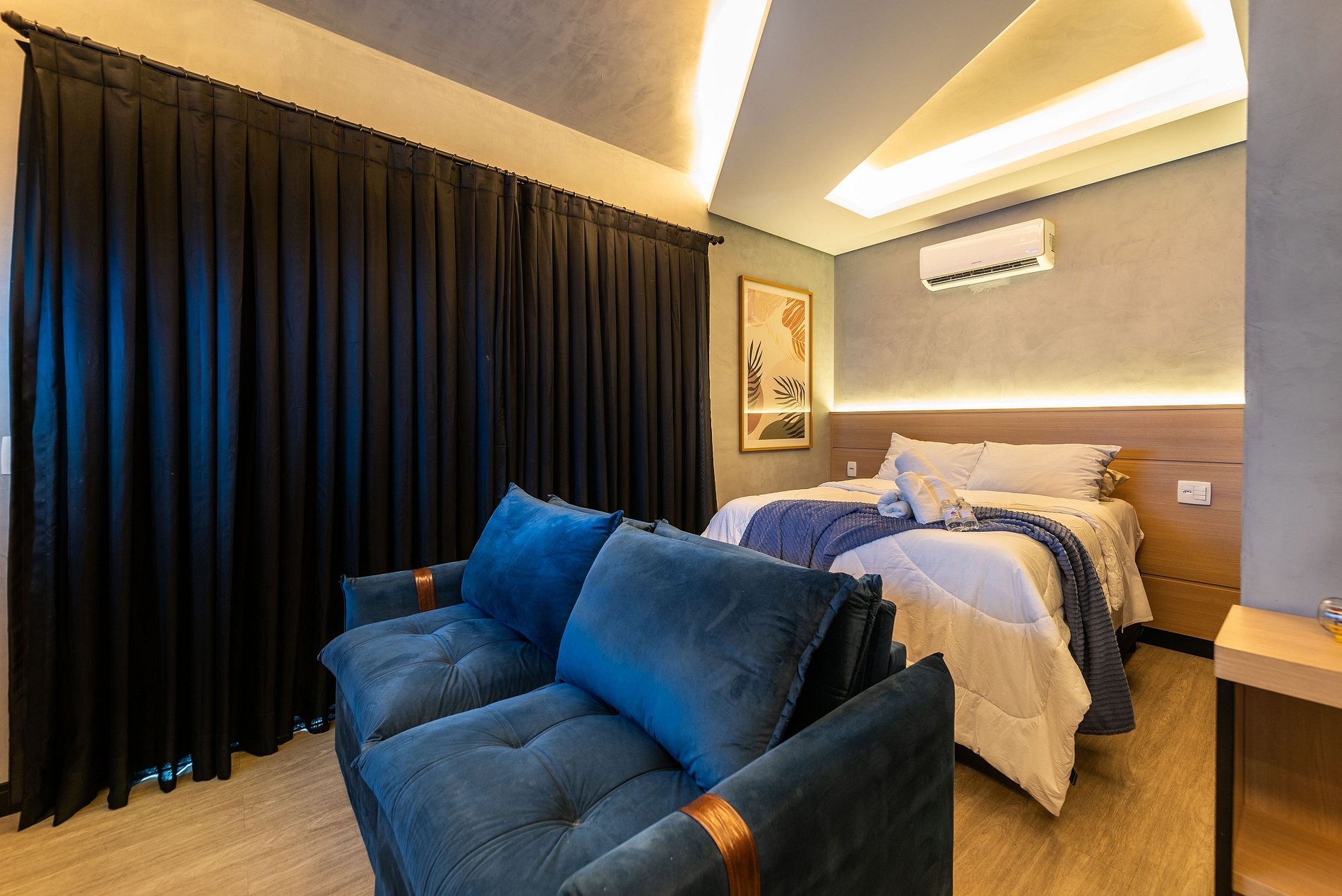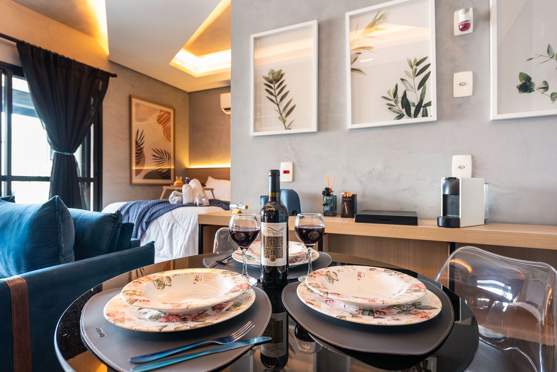 ・Cozinha completa: equipada com frigobar, fogão de indução, micro-ondas etc.