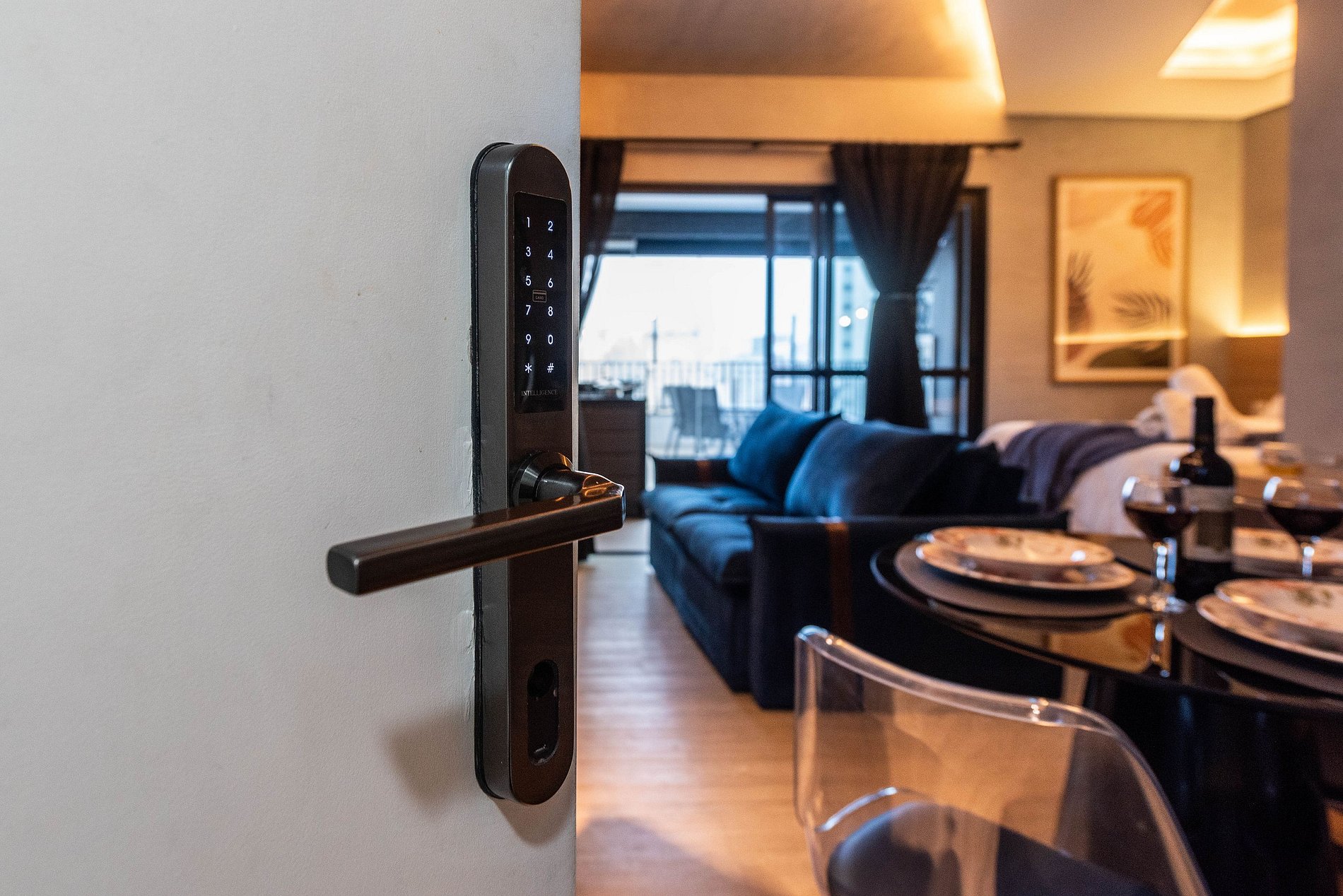 A entrada é realizada através de uma fechadura eletrônica, garantindo acesso total tanto ao apartamento quanto às comodidades do prédio.